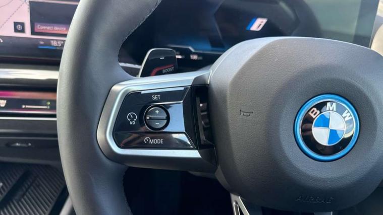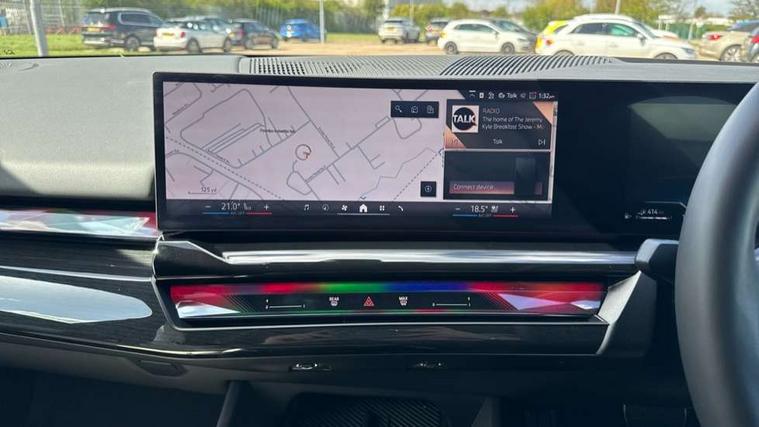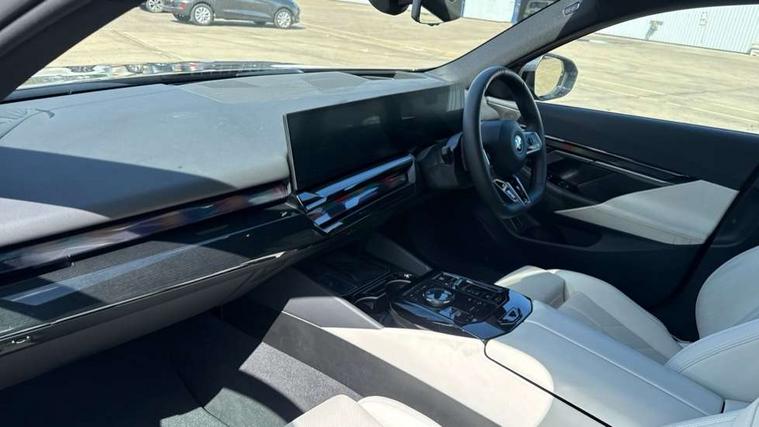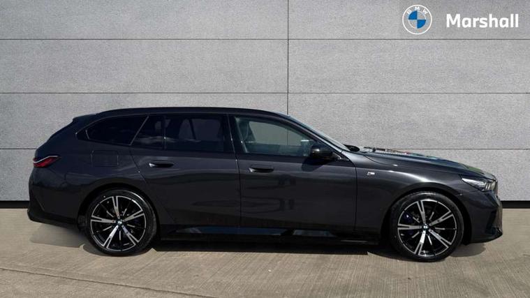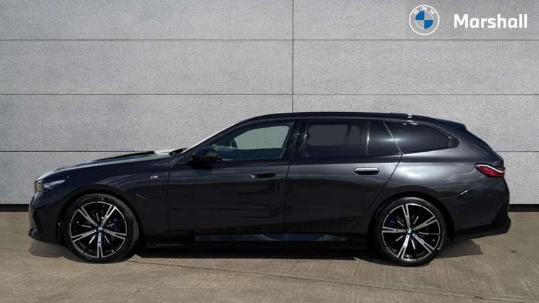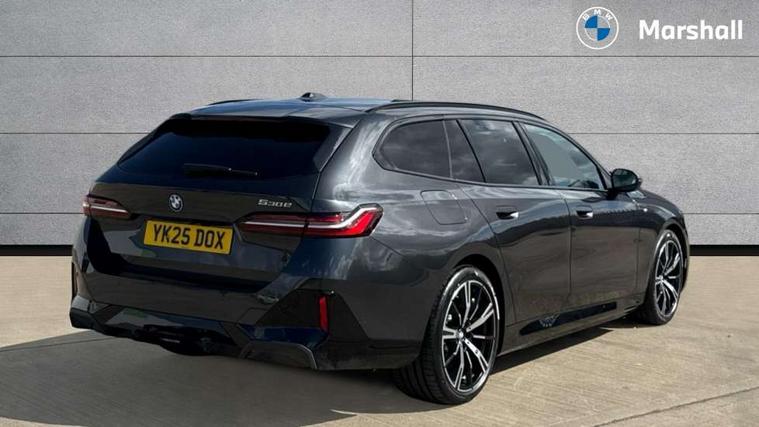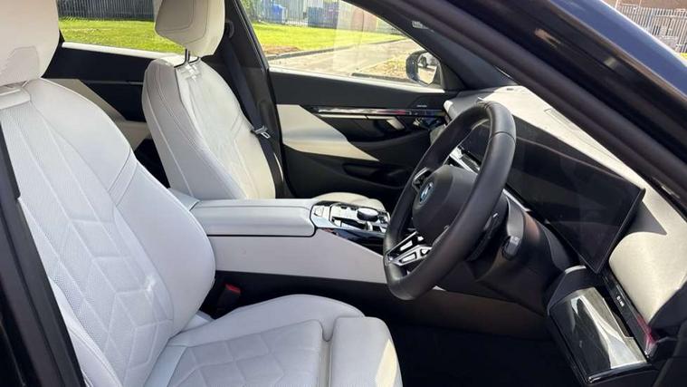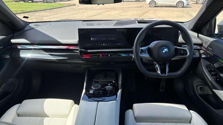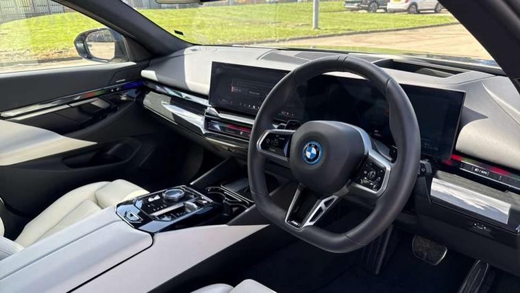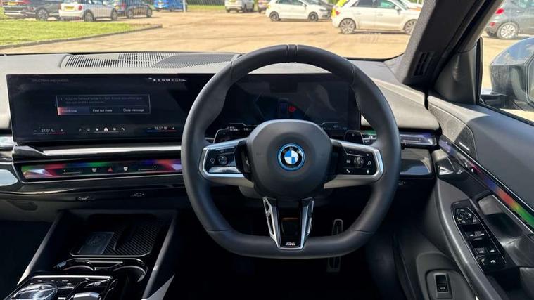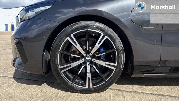 Automatic tailgate operation, BMW ConnectedDrive online services, BMW Iconic sounds electric, BMW legal emergency call, BMW Teleservices, Brake pad wear indicator, Cruise control with brake assist, Driving Assistant Plus Preparation, Front collision warning with brake intervention, Lane departure warning with active return, Left turn warning with brake function, Multifunctional instrument panel, Oil sensor for level and grade, On board computer inc. average speed, fuel consumption, liquid crystal Info display, journey computer, outside temperature display, personal profile, On-board diagnosis - OBD, PAS, Personal e-SIM, Powered by Operating System 7.0, Run flat indicator, Service interval indicator, Speed limit Info with manual speed limit assist, Stop/start button, 8 speed automatic steptronic transmission with gearshift paddles, AC charging cable professional (mode 3) for public charging, DAB tuner, Acoustic glazing, Adaptive LED Headlights, Automatic cornering lights, Automatic windscreen wipers and automatic headlight, BMW selective beam, Body colour door handles, Body coloured bumpers, Dynamic brake lights with LED technology, Electric adjustable door mirrors, Electric front and rear windows with fingertip open/close + anti-trap facility and comfort closing function, Follow me home headlight function, Headlight elements in blue, Heated windscreen washer jets, LED daytime running lights, LED third brake light, Light colour close to that of ordinary daylight, Optimum, homogeneous illumination of the road, Rear side wing doors, Rear wiper, 2 zone automatic air conditioning, 3 seat bench in 2nd row, 3 spoke leather M steering wheel in BMW M specific design with M badge, Armrest - front and rear integrated door trim, centre console includes storage compartment, rear centre includes 2 cupholders, Child seat ISOFIX attachment with rear outer seats includes top tether, Electric adjustable front sports seats, Electric adjustable steering column, Electrically adjustable lumbar support for driver and front passenger, Heated driver and front passenger seats, High-gloss black door switch cluster, power window switch and tailgate button on first and second row seat, M Anthracite headlining, M Sport pedal covers in stainless steel, Rear headrests, Single front passenger seat, Through loading system with 40/20/40 rear seat backrest split, Velour floormats, Wireless charging tray, Ambient lighting pack - 5 Series/I5, Connected package professional - 5 Series/I5, Driving assistance pack - 5 Series/I5, Expanded exterior mirror package - 5 series/I5, M high gloss shadow line pack - 5 Series/ I5, M Sport exterior styling pack - 5 Series/I5, 3 rear three point seatbelts, Active protection, Airbag deployment is controlled with respect to the intensity and scope, Anti-lock braking system (ABS), Brake assist, Brake energy regeneration, Cornering brake control (CBC), Crash sensor activating central locking release, hazard warning lights, fuel cut off and interior lighting, Driver and front passenger airbags, Driver central airbag, Driver/front passenger side airbags, DSC - Dynamic Stability Control, Dynamic brake control, Dynamic Traction Control - DTC, Electromechanical parking brake with automatic drive away release and auto hold function, Electronic brake force distribution, Engine drag torque control, Front and rear brake discs with interior ventilation, Front and rear curtain airbags, Front head restraints with anti-whiplash, Head airbags for first and second row seats, Hill start assist, Locking of doors after driving off, M Sport brake in blue high gloss painted brake callipers with monochrome logo on front calliper, Mechanical child proof lock on rear doors, PC iBrake PostCrash approach control warning with light braking function, Side impact protection, Trailer stability control, Two tone horn, Tyre pressure monitoring system, Warning triangle and first aid kit, Alarm system, Locking wheel bolts including wheel bolt adapter, Tyre repair kit,