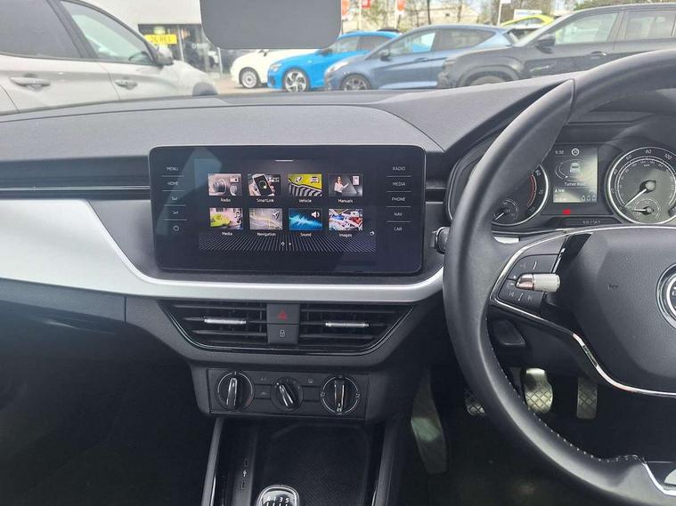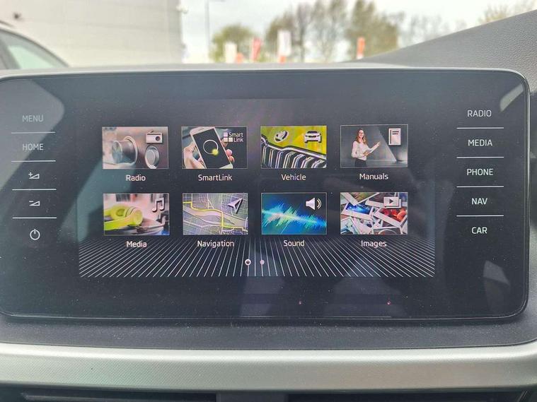 Amundsen satellite navigation with 9.2" glass colour touchscreen display, web radio, voice control and traffic sign recognition, Bluetooth system, E-call, Front assist system, Gesture control, PAS, Service indicator, Speed limiter, Wireless SmartLink for apple car play, android auto and mirrorlink, 8 Speakers, Auxiliary input socket, DAB Digital radio, Body colour bumpers, Body colour door mirrors and handles, Chrome grille surround, Dimming rear view mirror with black surround, Electrically adjustable and heated door mirrors, Front and rear electric windows, Headlight range control, Heated rear window, LED rear lights - low functionality, LED third brake light, Light sensors, Privacy glass, Rain sensor, Rear fog lights, Rear side wing doors, Rear wiper, 12V Accessory socket in centre console, 3 seat bench in 2nd row, Chrome inner door handles, Cloth upholstery, Front head restraints, Glove compartment with illumination, Height adjustable driver and front passenger seats - manual, Ice scraper, Isofix child seat fittings on outer rear seats, ISOFIX on front passenger seat, Manual lumbar support for front seats, Rake/reach adjustable steering wheel, Reading lights, Single front passenger seat, Sun visors with illumination on front passenger, Textile floor mats, Third rear headrest, Top tether for front passenger seat, Umbrella in driver's door, 3x3 point rear seatbelts, Airbags - driver and front passenger, ESP, Front passenger airbag deactivation switch, Front side airbags with curtain airbags, Hill hold control, Manual parking brake, Manual rear child locks, One tone horn, Rear disc brakes, Seatbelt reminder for driver an co-driver, Traction control, Tyre pressure monitor, Anti-theft alarm system with interior monitoring, backup horn, towing protection and remote central locking with SAFE system, Anti-theft wheel bolts, Electronic engine immobilizer, Silver haptic decorative insert on the dashboard with hot stamping in glossy black,