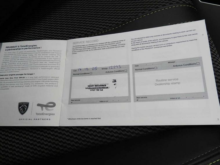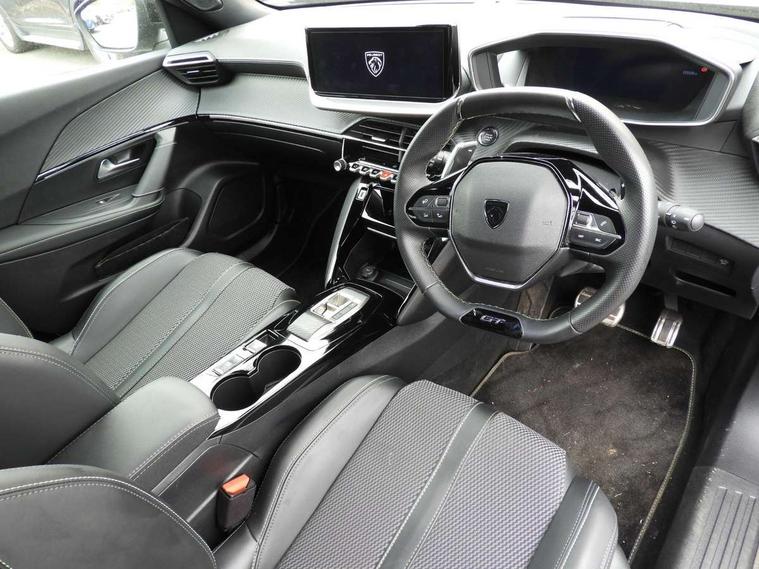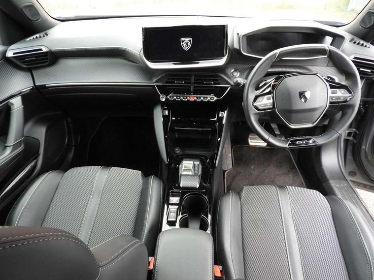 Bluetooth telephone facility, Driver attention warning, E-call, Exterior temperature indicator with ice warning, Front and rear parking sensors, Multi function trip computer, PEUGEOT i-Cockpit with 10" high definition capacitive touchscreen, PEUGEOT i-Cockpit with compact steering wheel, PEUGEOT i-Cockpit with configurable 3D headup instrument panel, PEUGEOT SOS and assistance, Speed limit recognition and recommendation, Wireless mirror screen with mirror link, apple carplay and android auto, Petrol Particulate Filter, 1x USB-C socket in rear and 1x USB-A socket in rear, 2 USB-C ports in the front, 6 speakers radio with mp3 compatible, DAB Radio (Digital Audio Broadcasting), Voice recognition for radio, navigation and telephony features, 2 X Rear number plate lights, Aluminium door sill scuff plates with peugeot lettering, Automatic hazard light activation upon heavy brake application, Black diamond roof, Black front wing trim with gloss black detail and GT badging, Body coloured exterior door handles, Dark tinted rear side and tailgate windows, Diamond black mirror shells, Diamond black rear roof spoiler, Electric, heated, and power folding door mirrors, Frameless electrochrome interior rear view mirror, Front bumper - Meteor grey lower trim, Full LED headlights with smartbeam assist with auto height adjustment, Gloss black finish on B pillar, Gloss black rear cluster connecting strip, Gloss black roof bars, Gloss black window surround, GT model designation badging on tailgate, Headlights left on audible warning, LED daytime running lights with distinctive 3 claw signature, LED side indicator lights integrated into door mirrors, LED third brake light, Model designation badges front and rear, One touch electric front/rear windows with pinch protection, Radiator grille - body coloured vertical chequered grille, Radiator grille - gloss black top edge trim, Rear full LED 3D peugeot signature claw effect lights with daylight function, Rear reversing lights, Rear side wing doors, Rear windscreen wiper triggered automatically in reverse gear, Reinforcement of the front bumper, Tailgate with heated rear windscreen and wiper blade, Twin chromed exhaust pipes, Wheel arch extensions, 1/3 to 2/3 split folding rear seats, 12V socket, 3 seat bench in 2nd row, 8 Colour personalisable ambient lighting, Automatic air conditioning with pollen and active carbon filter, Central front armrest with storage compartment, Driver and front passenger sport seats, Electric power steering with reach and rake adjustable steering column, Front and rear carpet mats in black, Front LED interior light with 2 reading spotlights and rear interior light with timer, Front passenger seat manual adjustment - height, longitudinal and back rest angle, High centre console, ISOFIX child seat mounting points on passenger seat, Mistral full-grain perforated leather steering wheel with Lime Green stitch detail and satin chrome 'GT' emblem, Multifunction steering wheel, Piano keys: Gloss black and chrome toggle switches to access main functions of the vehicle and touchscreen functions, Roof lining - Mistral black, Seatbelt unfastened on the move audible and visual alert for front and rear seats, Single front passenger seat, Two position modular boot floor, Visibility pack - 2008, 2x 2nd row ISOFIX child seat mountings, ABS (Anti-lock Braking System) with EBD (Electronic Brakeforce Distribution) and EBA (Emergency Braking Assistance), Active safety brake with night function/cyclists/pedestrians, Adaptive driver and front passenger airbags with passenger airbag deactivation function, Advanced emergency braking system (AEB) with enhanced camera with the high beam and radar, Child locking functionality on rear doors, Driver/front passenger side airbags, Electric parking brake, ESP (Electronic Stability Program) + Hill Start Assist, Front and rear curtain airbags, Front and rear disc brakes, Front and rear three-point retractable seatbelts, with force limiters, Front optimised safety headrests and rear retractable headrests (x3), height adjustable, Tyre pressure sensor, Automatic door locking when moving off, Deadlocks, Electronic code immobiliser, Thatcham category 1 alarm, Carbon effect Dashboard, front and rear door panel finish,