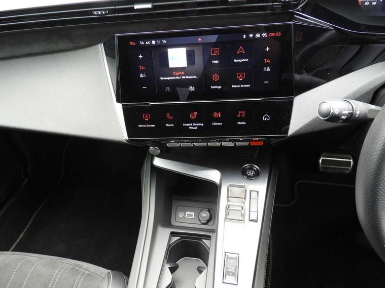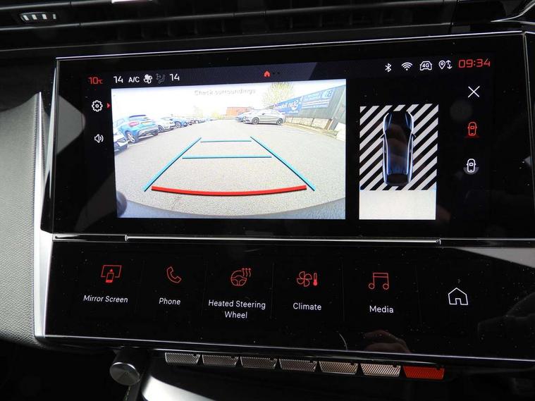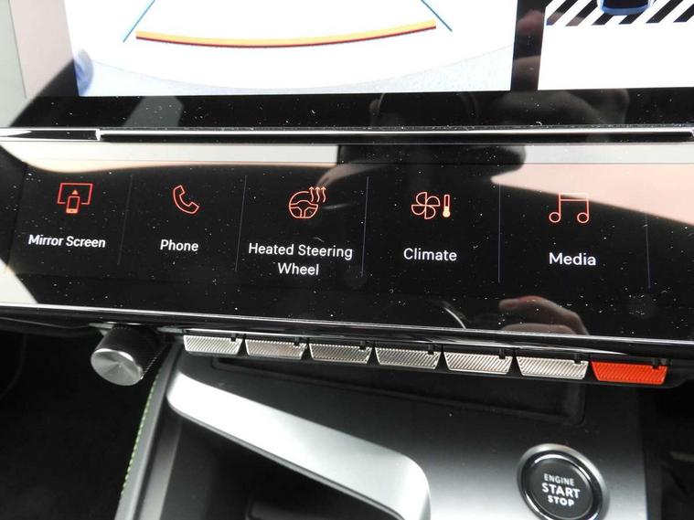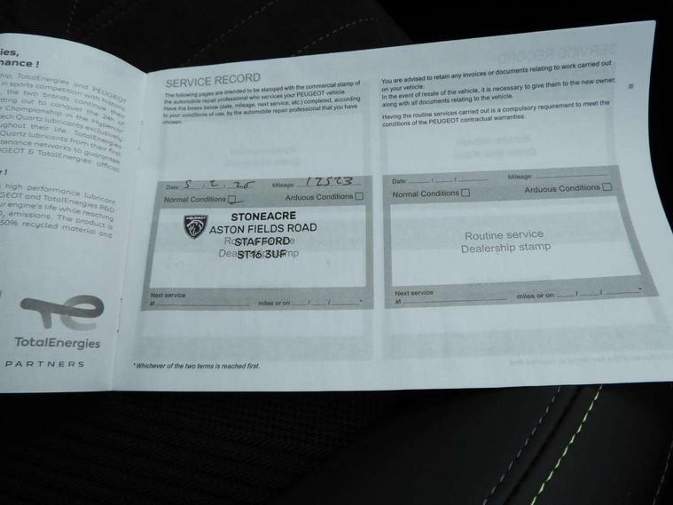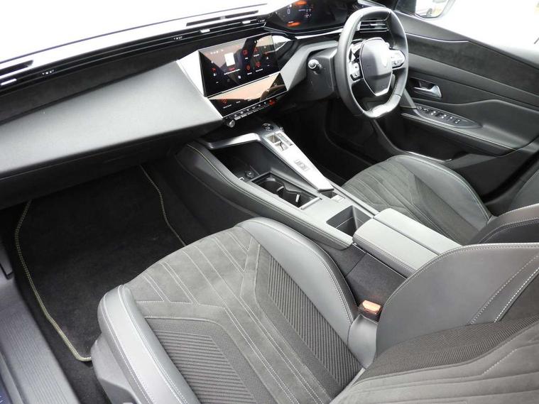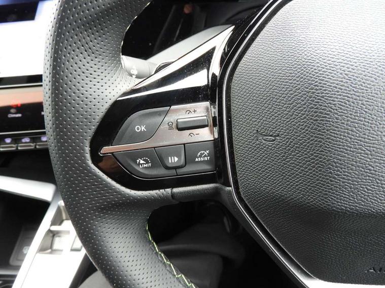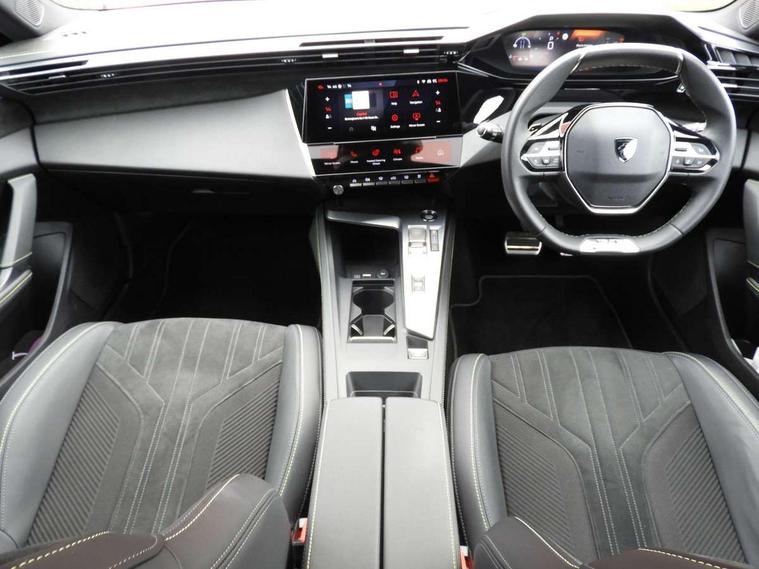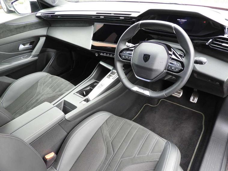 Bluetooth telephone facility, Compact automatic gearbox impulse selector, Driver attention warning, Driver's profile setting, Emergency call service, Extended traffic sign recognition, Exterior temperature indicator with ice warning, Front and rear parking sensors, Intelligent speed adaptation, Lane keep assist, Multi driving mode selector - Eco / Normal / Sport mode selector, Multi function trip computer, PEUGEOT i-Cockpit with 10.0" high definition (HD) capacitive touchscreen, PEUGEOT i-Cockpit with compact steering wheel, PEUGEOT i-Connect Advanced - Over the air updates, PEUGEOT SOS and assistance, Push button start, Speed limit recognition and recommendation, Wifi and voice recognition, Wireless apple car play/android Auto, 2x USB sockets in front, 2x USB sockets in rear, DAB Digital radio, PEUGEOT i-Cockpit with PEUGEOT configurable i-Toggles, 3rd brake light, 408 Model designation badges on front and rear, Acoustic laminated front windows, Acoustic tinted windscreen, Automatic hazard light activation upon heavy brake application, Body colour door handles, Body colour rear spoiler, Dark tinted rear side and tailgate windows, Electric, heated, and power folding door mirrors, Electrochrome rear view mirror, Front and rear electric windows with one touch/anti pinch, Front grille with vertical body colour stamping, Full LED matrix headlights with automatic adjustment, Gloss black finish B pillar, Gloss black rear cluster connecting strip, High beam assist, LED rear number plate lights, LED side indicator lights integrated into door mirrors, Lower body and wheel arch "SUV style" protection, Nera black door mirrors, PEUGEOT shield on front doors, PEUGEOT signature LED front daytime running lights incorporating indicators, Rear bumper grained black, Rear full LED 3D Peugeot new claw effect lights with sequential welcome sequence upon unlocking the vehicle, Rear Hybrid badging, Rear reversing lights, Rear side wing doors, Roof mounted 'fin' style antenna, Smart electric tailgate, Tailgate with heated rear windscreen and wiper blade, 1/3 2/3 'Magic Flat' folding rear seats with controls located in the boot, 2x 12V sockets, 3 seat bench in 2nd row, 4 Grab handles retractable and damped, 8 Colour personalisable ambient lighting, Aluminium door sills and boot sill, Aluminium pedals and footrest, Arch design central console with storage, Central front armrest with storage compartment, Dual Zone automatic air conditioning with AQS 3, Dynamic front seats, Electric power steering with reach and rake adjustable steering column, Front central console with two cup holders, Gloss black waistbelt (window weather strips), Glovebox with LED lighting, Heated steering wheel, High air vent system, Luggage cover, Luxury carpet mats with adamite green stitching, Multifunction full grain leather steering wheel with admite green stitching & GT badging, Piano keys toggle switches to access main functions, Roof lining - Mistral black, Seatbelt unfastened on the move audible and visual alert for front and rear seats, Single front passenger seat, Ski hatch with central rear armrest with cup holder, Steering wheel mounted gearshift paddles, Sunvisor with concealable vanity mirrors with LED lighting, Driver Sport Pack - 408, Visibility pack - 408, 2x Isofix child seat fitting on outer rear seats, 3x3 point rear seat belts, ABS + EBD + EBA, Active safety brake with night function/cyclists/pedestrians, Adaptive driver and front passenger airbags with passenger airbag deactivation function, Advanced emergency braking system (Video - AEB) includes Radar, Automatic post collision braking, Child locks on rear doors, Driver/front passenger side airbags, Electronic parking brake, ESP, Front and outer rear seatbelts with pyrotechnic pretensioners, Front and rear curtain airbags, Front and rear disc brakes, Front optimised safety headrests and rear retractable headrests (x3), height adjustable, Front three point retractable seatbelts with force limiters, Hill start assist, Tyre under inflation monitoring and indirect detection with visual indicator and warning sound, 2x keys, Acoustic vehicle alert system (AVAS), Anti-theft wheel bolts, Automatic door locking when moving off, Deadlocking system, Electronic code immobiliser, Locking wheel nuts, Peugeot open and go system includes keyless entry with proximity locking and unlocking, Thatcham cat. 1 alarm with anti lift sensor, 19" Graphite diamond cut alloy wheels in Onyx black gloss, Alloy wheel 'star' centre cap,