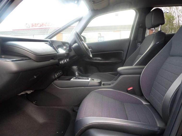 Adaptive cruise control, Adjustable speed limiter, Agile handling assist, Bluetooth hands free telephone connection, eCall emergency call system, Econ mode, Electric power steering wheel with variable gear ratio steering, Emergency stop signalling system, Forward collision warning, Front and rear parking sensors, Honda CONNECT with GARMIN Navigation + 9" touchscreen, AM/FM/DAB/Apple Carplay and android auto, Idle stop, Intelligent speed limiter, Lane departure warning system, Lane keep assist system, Low speed following, Multi-information display, Rear view camera, Road departure mitigation, Tailgate, Traffic jam assist, Traffic sign recognition, Wireless apple carplay, Vehicle stability assist, 'Shark fin' mobile antenna, 180w Power audio system with 4 speakers, 2 USB-C connectors rear, 2x USB Front socket (1 data & 1 charge), Remote audio controls on steering wheel, Aspheric door mirrors, Auto wipers, Automatic headlights with on/off timer, Coming/leaving home function, Black door mirrors, Black headlight extension, Body colour door handles, Body coloured front grille, eHEV emblem, Electric adjustable door mirrors, Electrically folding door mirrors, Exclusive styling includes front and rear bumper, front fog garnish, silver fender, side sill garnish, Front and rear electric windows, Heated door mirrors, High beam assist, LED 3rd brake light, LED daytime running lights, LED front fog lights, LED Headlights, LED rear lights, Manual headlight levelling, Privacy glass, Rear side wing doors, Rear wiper, Roof rails, Single exhaust tailpipe, 3 seat bench in 2nd row, 60/40 split rear bench seat, Cargo net hooks, Climate control air conditioning, Driver and front passenger seat armrests, Driver and passenger front seat pockets, Driver's seat height adjustment, Fabric/Water repellent upholstery, Front accessory power socket, Front head restraints, Front map lights, Front/rear courtesy lights, Heated front seats, Heated steering wheel, Isofix points, Leather gearshift knob, Leather steering wheel, Magic seat flexibility system, Plating interior door handles, Rear head restraints, Single front passenger seat, Sunvisors with vanity mirrors, Tilt/telescopic adjustable steering wheel, Tonneau cover, Trunk light, Vanity mirror illumination, 3x3 point rear seatbelts, Anti-lock braking system (ABS), Brake assist function, Brake hold function, Child locks on rear doors, Collision mitigation braking system, Deflation warning system, Driver knee airbag, Driver SRS airbag (single stage inflation), Driver/Front Passenger airbags, Electronic parking brake with auto hold, Front and rear seat belt with emergency locking retractor, Front and rear side curtain airbag, Front centre airbag, Front side airbags, Hill start assist, Passenger SRS airbag cut-off device, Rear side airbags, Whiplash lessening front headrests, Honda super locks, Immobiliser, Mirrors and windows key fob operation, Remote central locking with 2 remote folding keys, Security alarm, Smart entry + Smart start, Soft pad leather interior panels, 16" 3D chrome H centre cap alloy wheels, Tyre repair kit,