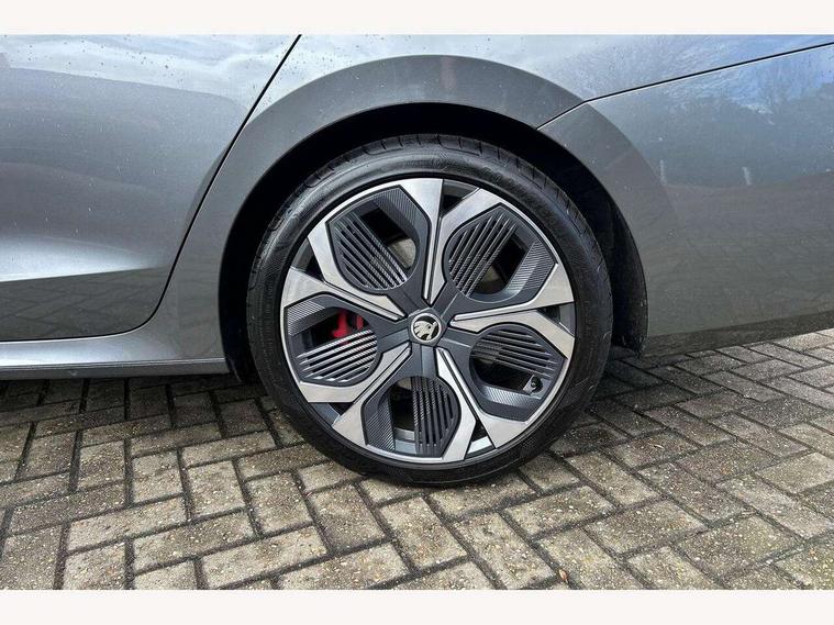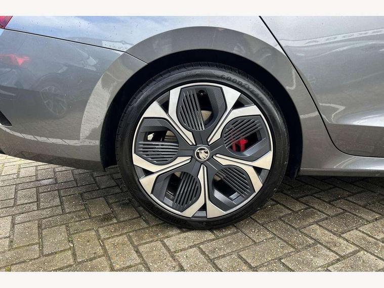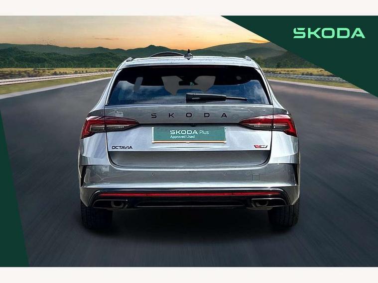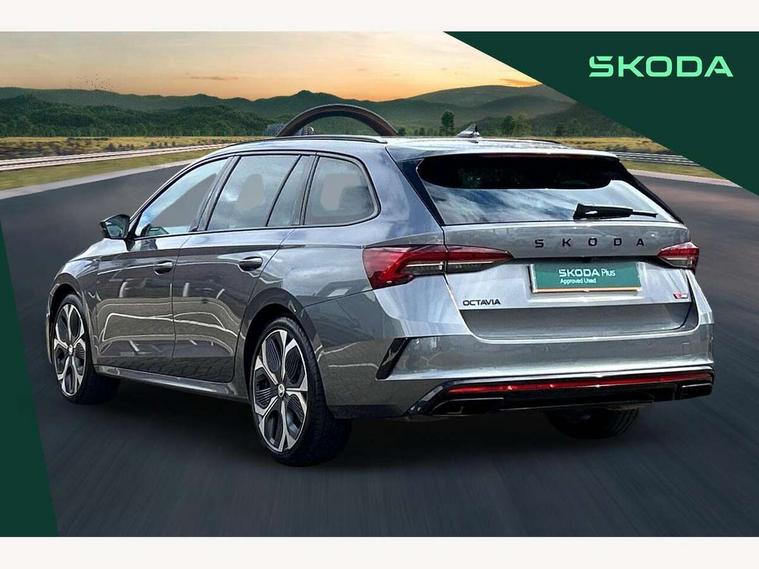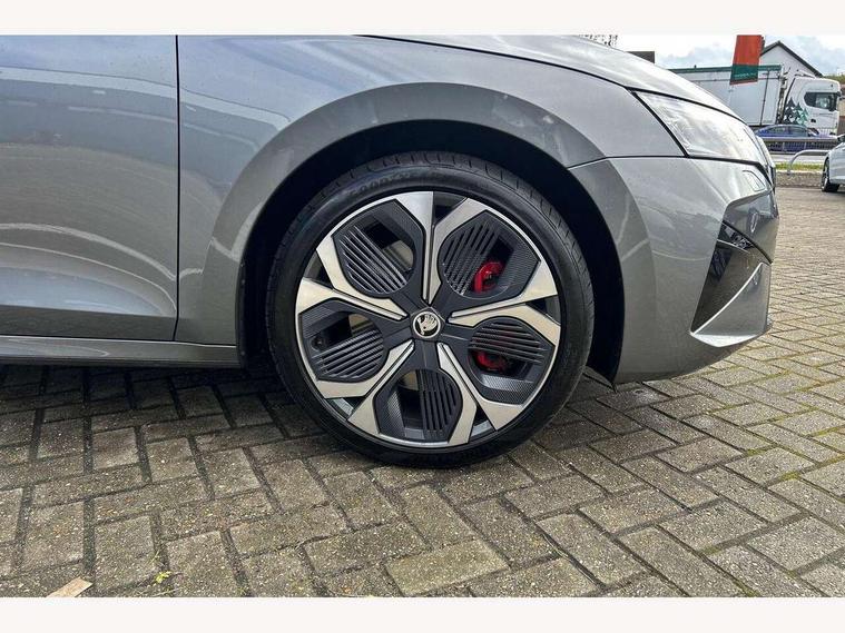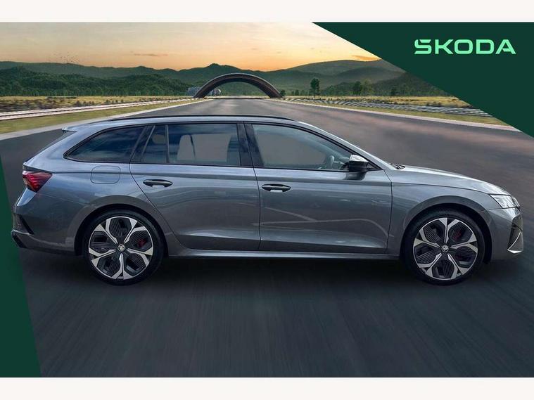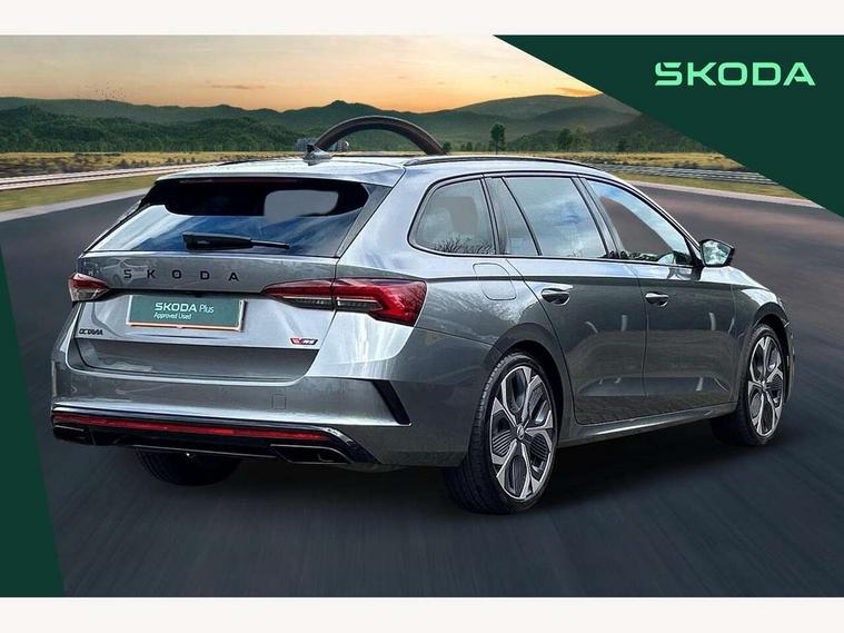 1x USB Typc C port in rear view mirror, 4x USB Type C ports - 2x in front centre console and 2x in rear (45W), Blind spot detection, Drive mode selection, Driver fatigue sensor, eCall emergency system, Electrically operated boot with virtual pedal, Front and rear parking sensors with manoeuvre assist, Front assist system, Predictive adaptive cruise control with traffic jam assist, Progressive dynamic steering, Traffic sign recognition, Turn Assist, Virtual Cockpit - 10.25" digital display, Voice control system, Wireless charging (15W) with cooling function, Wireless SmartLink for Apple CarPlay and Android Auto, Electronically controlled limited slip differential, vRS suspension, 13" touchscreen display with navigation, DAB Digital radio, Aero front windscreen wipers with intermittent function, Auto dimming rear view mirror, Black sport exhaust pipes, Body colour bumpers, Body colour door handles, Electric front and rear windows, Exterior gloss black sports styling including front grille, window surrounds, door mirrors and badging, Gloss black diffuser, Gloss black roof rails, Gloss black spoiler, Heated rear windscreen, High beam control, High level third brake light, Ice scraper in fuel cap, LED daytime running lights, Logo projection in front doors, Rain and light sensors, Rear fog light on one side, Rear privacy glass, Rear side wing doors, Rear window wiper, Unique vRS bumpers and exterior styling, 12 volt socket in boot, 3 rear headrests, 3 seat bench in 2nd row, 4 foldable roof handles, Aluminium pedals, Front head restraints, Front sport seats, Heated front seats, Illuminated glovebox, Interior door handles in dark chrome, Jumbo Box storage, Luggage compartment lighting x2 lights, Mechanical rear seat release from boot, Single front passenger seat, Steering wheel in black leather with black stitching, Storage compartments in left and right of boot, Sun visors with mirrors, Sunglasses storage, Ticket holder, Umbrella in door panel, Unsplit rear bench seat, split folding backrest with centre armrest with cupholder, Waste bin in door panel, Comfort package - Octavia Estate, Family package - Octavia, Light and view package plus - Octavia, vRS Design Selection pack - Octavia, 3x3 point rear seat belts, Alarm with interior monitoring, tilt sensor and back up horn, Curtain airbags and front side airbags, Driver and front passenger airbags, Drivers knee airbag, Electronic parking brake, ESC including ABS, EBV, MSR, ASR, EDS, HBA, DSR, Front central airbag, Hill hold assist, ISOFIX on front passenger seat and outer rear seats, Passenger airbag deactivate switch, Red brake calipers, Three point seat belts in front and rear, Two tone horn, Tyre pressure monitor, Visual and acoustic seat belt reminder, Warning reflectors in front door, Anti-theft wheel bolts, Keyless start/stop, Remote central locking, Gloss black air vent surrounds, 19" Elias anthracite alloy wheels,