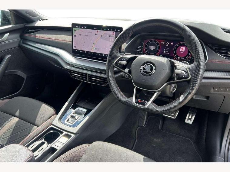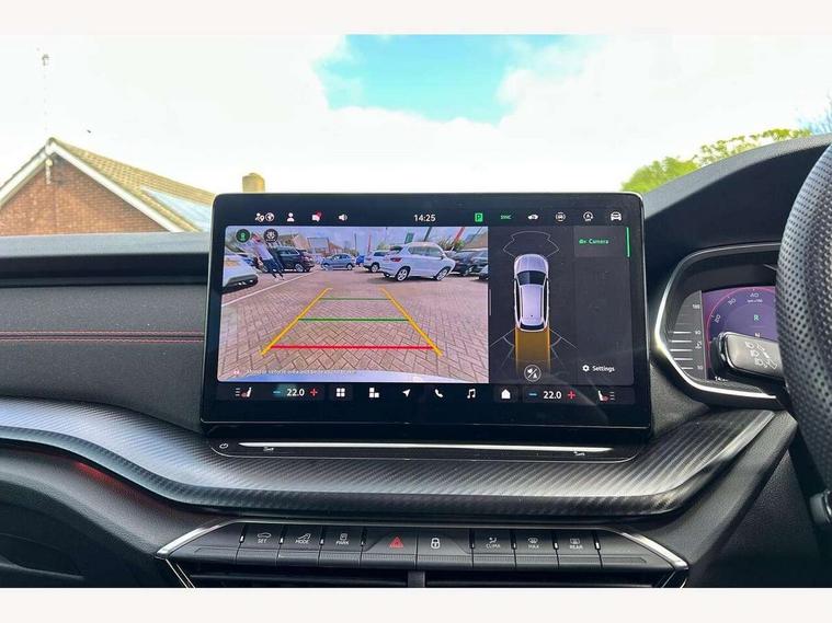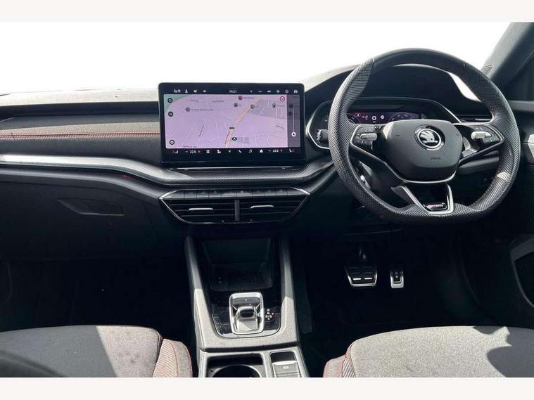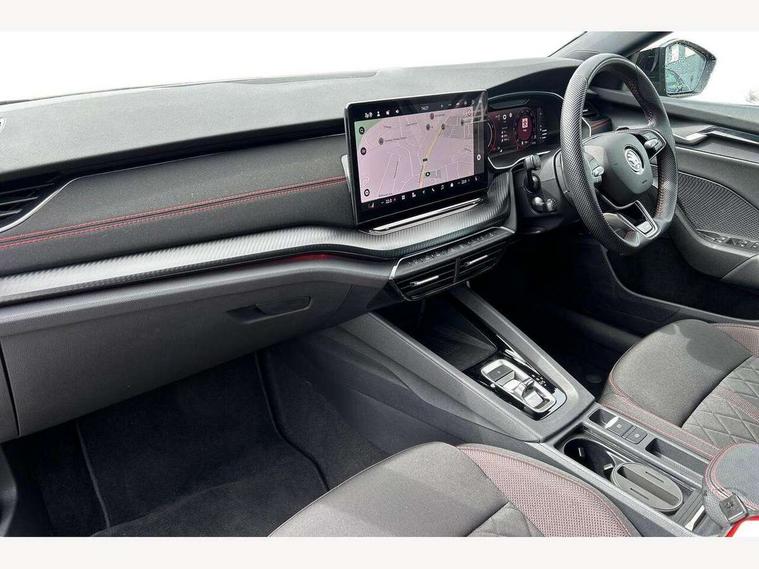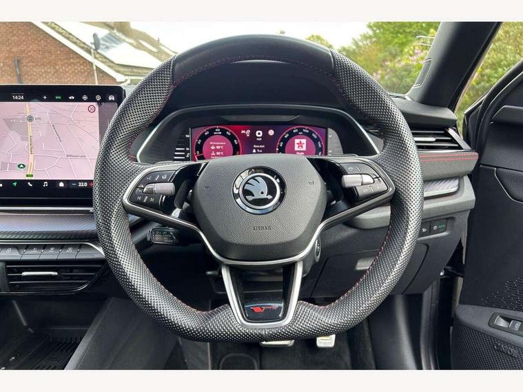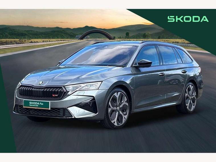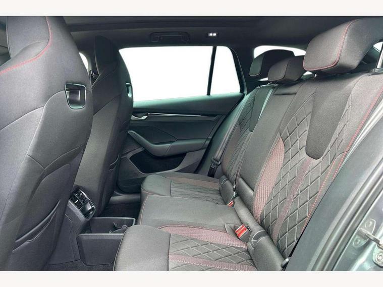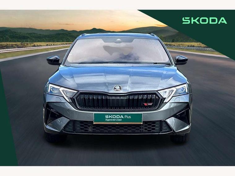 1x USB Typc C port in rear view mirror, 4x USB Type C ports - 2x in front centre console and 2x in rear (45W), Blind spot detection, Drive mode selection, Driver fatigue sensor, eCall emergency system, Electrically operated boot with virtual pedal, Front and rear parking sensors with manoeuvre assist, Front assist system, Predictive adaptive cruise control with traffic jam assist, Progressive dynamic steering, Traffic sign recognition, Turn Assist, Virtual Cockpit - 10.25" digital display, Voice control system, Wireless charging (15W) with cooling function, Wireless SmartLink for Apple CarPlay and Android Auto, Electronically controlled limited slip differential, vRS suspension, 13" touchscreen display with navigation, DAB Digital radio, Aero front windscreen wipers with intermittent function, Auto dimming rear view mirror, Black sport exhaust pipes, Body colour bumpers, Body colour door handles, Electric front and rear windows, Exterior gloss black sports styling including front grille, window surrounds, door mirrors and badging, Gloss black diffuser, Gloss black roof rails, Gloss black spoiler, Heated rear windscreen, High beam control, High level third brake light, Ice scraper in fuel cap, LED daytime running lights, Logo projection in front doors, Rain and light sensors, Rear fog light on one side, Rear privacy glass, Rear side wing doors, Rear window wiper, Unique vRS bumpers and exterior styling, 12 volt socket in boot, 3 rear headrests, 3 seat bench in 2nd row, 4 foldable roof handles, Aluminium pedals, Front head restraints, Front sport seats, Heated front seats, Illuminated glovebox, Interior door handles in dark chrome, Jumbo Box storage, Luggage compartment lighting x2 lights, Mechanical rear seat release from boot, Single front passenger seat, Steering wheel in black leather with black stitching, Storage compartments in left and right of boot, Sun visors with mirrors, Sunglasses storage, Ticket holder, Umbrella in door panel, Unsplit rear bench seat, split folding backrest with centre armrest with cupholder, Waste bin in door panel, Comfort package - Octavia Estate, Family package - Octavia, Light and view package plus - Octavia, vRS Design Selection pack - Octavia, 3x3 point rear seat belts, Alarm with interior monitoring, tilt sensor and back up horn, Curtain airbags and front side airbags, Driver and front passenger airbags, Drivers knee airbag, Electronic parking brake, ESC including ABS, EBV, MSR, ASR, EDS, HBA, DSR, Front central airbag, Hill hold assist, ISOFIX on front passenger seat and outer rear seats, Passenger airbag deactivate switch, Red brake calipers, Three point seat belts in front and rear, Two tone horn, Tyre pressure monitor, Visual and acoustic seat belt reminder, Warning reflectors in front door, Anti-theft wheel bolts, Keyless start/stop, Remote central locking, Gloss black air vent surrounds, 19" Elias anthracite alloy wheels,