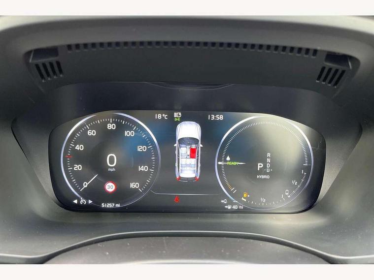 12.3" Active TFT crystal driver's instrument display, 9" Touch screen, Adjustable steering wheel force, Bluetooth hands free telephone kit, Drive mode selector, Driver alert control with lane keeping aid, Front collision warning with full auto brake, Intelligent driver information system (IDIS), Oncoming Lane Mitigation, Power tailgate, Remote fuel flap release, Sensus navigation with European mapping and traffic information, Service interval indicator, Speed limiter, Speed sensitive steering, Trip computer, Voice control system, Volvo on call, 8 speed automatic transmission with start/stop + manual change functions, Active four-C chassis + four corner adaptive damper with electronic rear air suspension, All wheel drive system, Electric rear axle drive, Recharging port located in nearside front wing, DAB Digital radio, Active bending headlights with adaptive shadow technology, Adaptive brake lights with high level LED brake lights, Aluminium tread plates, Auto dimming interior + exterior mirrors, Automatic headlight levelling system, Chrome front lower bumper, Chrome lower side moulding trim with Inscription logo, Chrome side window trim, Colour coordinated auto folding and heated power door mirrors, Dual integrated exhaust pipes, Electric front+rear windows, High gloss black grille with chrome inserts, Home safe and approach lighting, Illuminated side steps, LED Headlights + Active high beam incorporating daytime running lights, Power glass tilt and slide panoramic sunroof with sun curtain, Rain sensor with automatic windscreen wiper activation, Rear wiper, Roof antenna, Roof spoiler, Silver roof rails, Tinted windscreen, Visible VIN plate, 12V power point in luggage area, 12V socket in front + rear tunnel console, 2 zone electronic climate control with air quality system, 3 spoke leather steering wheel with chrome trim, 60/40 split folding rear seat, A-pillar parking ticket holder, Auxiliary Fuel Burning Heater, B Pillar ventilation, Bright metal luggage threshold, Centre armrest storage illumination, Centre console cupholders and storage, Charge cable bag, Door ambient lighting, Electric drivers seat with memory, height adjust and multi directional lumbar support + mirrors memory, Electric front cushion extensions and side support, Electrically adjustable passenger with height adjust and multi directional lumbar support, Floor mats, Front and rear door pocket and front cupholder illumination, Front footwell illumination, Front reading lights, Head restraints for all seats, Heated front seats, Height/reach adjustable steering column, High gloss black steering wheel remote infotainment controls, Illuminated luggage compartment, Illuminated vanity mirrors + ticket holder, Illumination lockable glovebox compartment, Load cover, Load protection net, Massage function for front seats, Multicolour theatre lights, Nappa Leather Key Integrated Remote, Orrefors Crystal Gear Lever Knob, Perforated and ventilated nappa leather upholstery, Pollen filter, Rear armrest / integral cup holders / storage tray, Rear footwell illumination, Rear seat concealed storage, Tailgate illumination and ambient door lighting, Underfloor stowage compartment, WHIPS - Whiplash Protection System, 5 three point seatbelts, City safety with steering support with Pedestrian + cyclist + large animal detection + front collision warning with full auto brake, Curtain airbags, Drivers knee airbag, Dual stage driver/passenger airbags, Electronic parking brake with auto hold, Fasten seatbelt reminder, First aid kit, Hill descent control, Hill start assist, IC (Inflatable Curtains) - Full Length, Passenger airbag deactivate switch, Road sign information display, Run off Road Mitigation, Run off Road Protection, Seatbelt pre-tensioners, SIPS (Side Impact Protection System), SIPS airbags, Slippery road and hazard light alert, Stability and Traction Control with Spin control, Engine Drag Control and Corner Traction Control, Tyre pressure monitor, Vehicle deceleration control with Anti-lock Brake System, Electronic Brake Distribution and Emergency Brake Assist, Warning triangle, Anti-theft alarm including immobiliser/volume sensor + level sensor, Key integrated remote control central locking + fuel flap with deadlocking system and auto open/close power windows, Locking wheel nuts, Private locking for tailgate, Tailored instrument panel with contrast stitching, Tyre sealant kit + 12v compressor,
