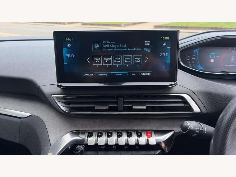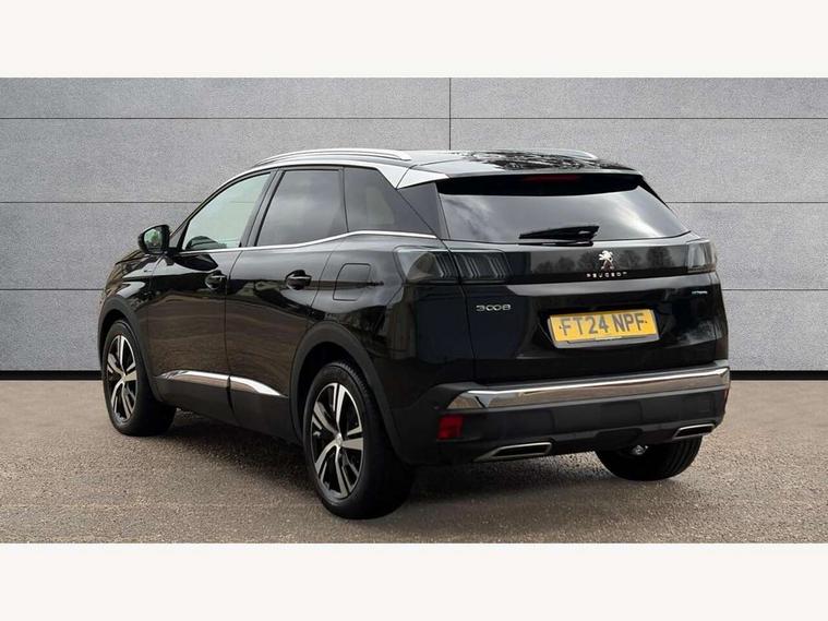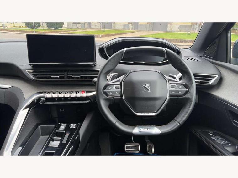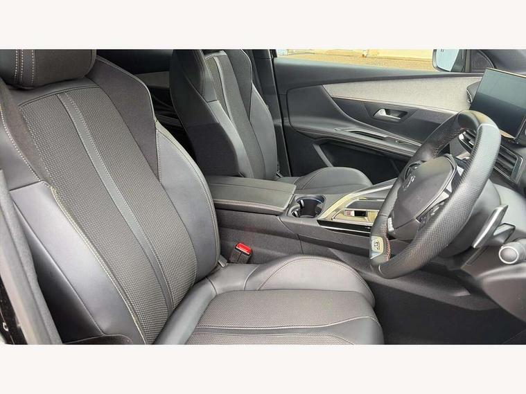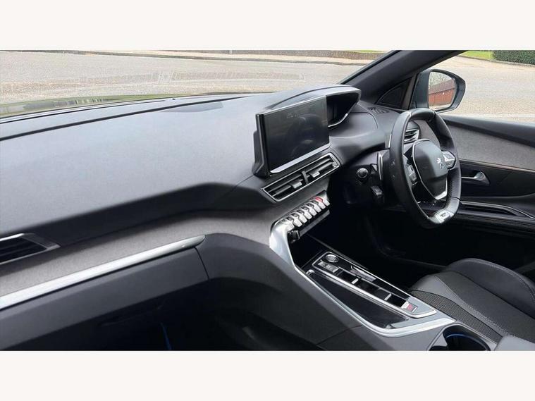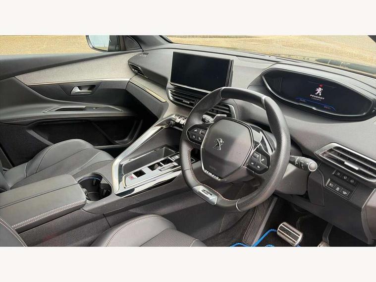 3D connected navigation with 10" HD touchscreen + voice recognition system, Blind spot detection system, Bluetooth telephone facility, Drive mode selector (Electric, Hybrid, Sport), Driver Attention Alert level 3, Driving Time Warning (DAA1), Emergency services call system, Extended traffic sign recognition, Exterior temperature indicator with ice warning, Lane departure warning system, Lane Keeping Assistance (LKA) with road edge detection, Mirror screen with Apple CarPlay and Android auto, Multi function trip computer, PEUGEOT i-Cockpit with compact sports steering wheel, PEUGEOT i-Cockpit with configurable 12.3" Head-up digital instrument panel, PEUGEOT SOS and assistance, Rear parking sensor, Rear passenger USB charging sockets (x2) (type A), Speed limit recognition and recommendation, Deferred charging option, configurable in car or via My PEUGEOT App, Dynamic stability control and electronic anti-skid system, Mode 3 type 2 cable for wallbox charging, DAB Digital radio, USB socket in front centre console, 2 X Rear number plate lights, Auto self levelling headlights, Automatic hazard light activation upon heavy brake application, Automatic triggered rear windscreen wiper in reverse gear, Black with chrome detailed front wing trim, Body colour door handles, Body colour rear roof spoiler with stainless steel edging trim, Body protectors (wheel arches + protection at bottom of doors) in black, Dark tinted rear side windows + tailgate window, Diamond Black door mirror shells, Electric heated folding door mirrors, Front windscreen wiper with magic wash cleaning system, Full LED headlights with fog mode, Gloss black B and C pillar and aerodynamic deflector trim, Gloss black front bumper air scoops, Gloss black rear cluster connecting strip, Gloss black windscreen trim, Headlights left on audible warning, Heated rear windscreen with integrated antenna, High beam assist, HYBRID emblem on front wings and tailgate, LED daytime running lights in fang style, LED front indicator, LED side indicator lights integrated into door mirrors, LED third brake light, One touch electric front/rear windows with pinch protection, Rear LED Peugeot signature 'Claw Effect' lights with clear lens and scrolling LED direction indicators, Rear side wing doors, Twin exhaust effect trim, 12V Sockets in dashboard, rear cabin and load area, 2 cupholders in front centre console, 2 x Rear reading spotlights, 2x Rear coat hooks, 3x Isofix child seat fittings in the front passenger and outer rear seats, 4 Grab handles retractable and damped, Aikinite stitching in armrest, gear lever and dashboard facia, Aluminium pedals, Blue ambient lighting for connecting zone, Blue ambient lighting to front door panels, central cup holders, Blue ambient lighting to headup instrument panel, Cabin pre-conditioning, Centre front armrest with butterfly wing opening and illuminated storage compartment, Driver seat manual adjustment (longitudinal and back rest angle), Dual zone automatic climate control, e-Toggle compact gear selector, Electric power steering with reach and rake adjustable steering column, Fixed boot floor with access to the charging cable storage box, Flocked front door pocket interior with blue ambient lighting, Flocked glovebox interior, Foldable front passenger seat with picnic table, Footwell illumination, Front interior light with 2 reading spotlights and rear interior light with timer, Front seat back map pockets, Gear shift indicator, Illuminated glove box, central storage area and load area, Illuminated vanity mirrors, Individual left and right controls in boot for seat folding, LED interior lighting in storage spaces and load area, LED roof interior lighting, Mistral floor mats with Aikinite contrast stitching, Mistral full grain perforated leather steering wheel with aikinite stitch detail and satin chrome 'GT' emblem, Rear armrest with ski flap and two cup holders, Rear bench seat with central armrest and ski hatch, Rear centre console ventilation system, Roof lining - Mistral black, Satin chrome dashboard trim, Satin chrome digital instrument panel, Satin chrome front door panel recess trim, Satin chrome interior door handles, Satin chrome scorpion's tail and toggle switch trim, Seatbelt not fastened audible and visual alert for front seats, Seatbelt unfastened on the move audible and visual alert for front and rear seats, Drive assist plus pack with front parking sensors - 3008 Plug in hybrid, Visibility pack - 3008 GT, 3x Rear three-point retractable seatbelts with force limiters in the outer rear seats, ABS (Anti-lock Braking System) with EBD (Electronic Brakeforce Distribution) and EBA (Emergency Braking Assistance), Acoustic vehicle alerting system, Adaptive driver and front passenger airbags with passenger airbag deactivation function, Driver and front passenger side airbags, Electric child locking functionality on rear windows and doors, Electric parking brake, Front and rear curtain airbags, Front optimised safety headrests and 3 x rear retractable headrests with height adjustable, Front three point retractable seatbelts height adjustable with pre tensioners and force limiters, Front ventilated disc brakes and rear disc brakes, Hill start assist, Two tone horn, Automatic door locking when moving off, Electronic immobiliser, key operated exterior door lock from the left hand door, Perimetric and volumetric alarm with lift and tilt sensor, Peugeot Open and Go System, Remote control central locking with two plip keys, Michelin e-primacy 225/55 R18 102V class A+ tyres, Tyre repair and inflation kit,
