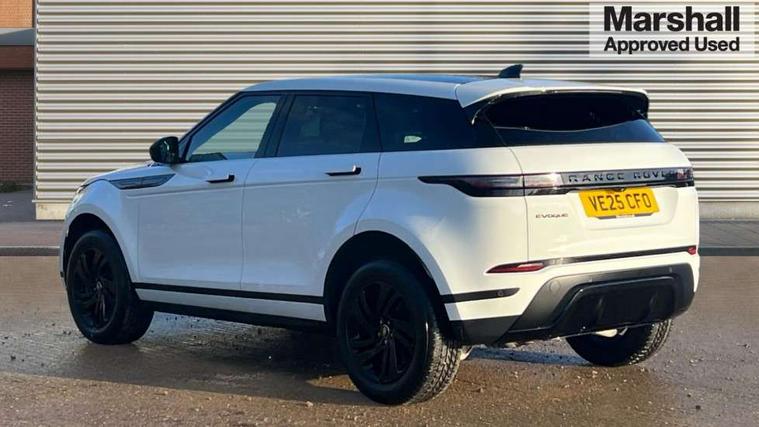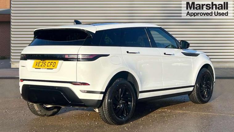 11.4" touch screen, Adaptive cruise control, Android Auto, Apple car play, Bluetooth connectivity, Brake pad wear indicator warning light, Digital driver display, Driver condition monitor, eCall emergency system, Eco mode, Electronic power assisted steering (EPAS), Front and rear parking sensors with auto brake, InControl remote, Land Rover InControl apps, Lane keep assist, Pivi pro connected includes diamond pivi variant, smart settings, connected navigation pro, nuance speech licence, Push button starter, Tailgate, Traffic sign recognition with adaptive speed limiter, Voice control system, Wireless device charging, All terrain progress control, Efficient Driveline, Passive suspension, Terrain Response 2, Digital Audio Broadcast radio-DAB, Steering wheel mounted controls, Acoustic laminated windscreen, Auto headlights, Electric windows with one touch open/close and anti trap, Flush deployable exterior door handles, Front and rear recovery eyes, Heated rear window with timer, Heated washer jets, Heated windscreen, LED headlights with Daytime running light and LED tail lights, Manual headlight levelling, Power fold, auto-dimming, heated door mirrors with approach lights and auto dimming driver side, Rain sensing windscreen wipers, Rear animated directional indicators, Rear fog lights, Rear side wing doors, Rear wiper, Side repeater indicators in mirror, Tailgate spoiler, Third brake light, Winter wiper park position, 40:20:40 split folding rear seats with centre headrest and armrest, Ambient interior lighting, Carpet mats, Customer configurable single point entry, Front and rear cupholders, Heated front seats, Heated steering wheel, Isofix system on outer rear seats, Manually adjustable steering column, Overhead lighting console, Overhead stowage for sunglasses, Passive front head restraints, Rear air vents, Rear head restraints, Satin chrome gearshift paddles, Single passenger seat, Standard steering wheel with Moonlight Bezel, Standard tread plates with range rover branding, Sunvisors with illuminated vanity mirrors, Twin sliding front centre armrest, Power socket pack 2 - Evoque, 3 rear 3 point seatbelts, Anti-lock braking system (ABS), Brake hold function, Customer configurable autolock, DSC - Dynamic Stability Control, Electronic brake force distribution, Electronic parking brake, Electronic traction control, Emergency braking, Front and rear seatbelt reminder, Hill descent control, Hill launch assist, Low traction launch, Occupant protection assist, Passenger seat occupant detector, Power operated child locks, Roll stability control, Six airbags - Driver and passenger airbags/driver knee airbag/front side airbag and curtain airbags, Torque vectoring brake, Tyre pressure monitoring system, Alarm, Immobiliser, Intrusion sensor, Keyless entry, Locking wheel nuts, All season tyres,