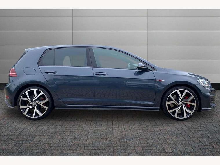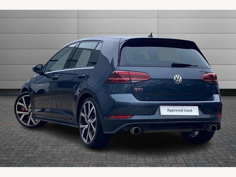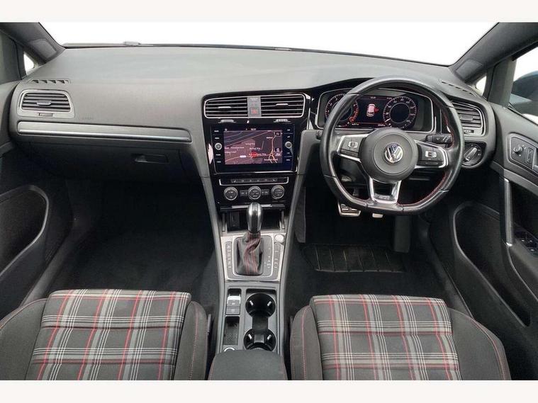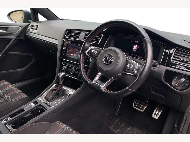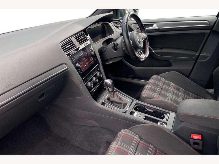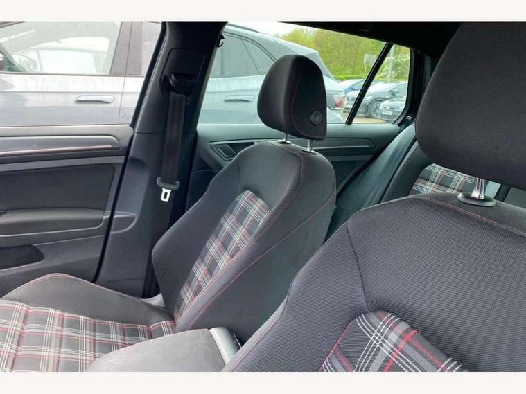 'Lights On' Reminder warning buzzer, ACC - Adaptive cruise control with front assist, forward collision warning, distance monitoring, city emergency brake and speed limiter, Active information display - 12.3" high resolution TFT display, Bluetooth telephone and audio connection for compatible devices, Brake pad wear indicator warning light, Driver alert system, Driving Mode Selection with four preset modes - Eco, normal, sport or individual modes, Multifunction computer with visual gear change recommendation for fuel consumption, Progressive steering, Push tank flap, Rear view camera, Speed limit display, Speedo, rev counter, electronic odometer, trip, service interval display, exterior temperature and fuel gauge, Stop/start system, Think blue trainer driver tips and journey analysis, Unique GTI instrument cluster, Warning buzzer and light for front seatbelts unfastened, Anti-tramp function, Battery regeneration during braking, Mechanical limited slip differential, Composition media system, DAB Digital radio receiver, Driver Personalisation profile selection, MP3/WMA compatability, Multi device interface (MDI) via USB connection, Premium USB cable in choice of either Apple or Android smartphone compatibility, SMS Functionality, Title and cover art display, USB and SD card connectivity, Volkswagen media control, 3D-LED tinted rear light clusters with indicator sweep function, Black front air intake and radiator grille with chrome insert, Body colour door handles, Body colour door mirrors with integrated indicators, Body colour rear roof spoiler, Dusk sensor + automatic driving lights, Electric front windows, Electric rear windows, Electrically adjustable and heated door mirrors, Extended sill strips flared, Front and rear unique GTI badging in red, Fully galvanised body, GTI logo in red on front and back, GTI logo lettering on front wings on right and left, Heated rear windscreen, High level 3rd brake light incorporating LED Technology, Honeycomb front air intake - Black, Honeycomb radiator grille with red stripe, LED daytime running lights incorporating red stripe, LED front fog lights, LED headlights with dynamic light assist, Rear fog lamp, Rear number plate lights incorporating LED technology, Rear window aerial, Rear window wash/wipe with intermittent wipe, Reflectors in all doors, Uniquely shaped front/rear bumpers, Windscreen wipers/ intermittent wipe + 4 position delay, 12V socket in luggage compartment, 3 rear headrests, 4 load lashing points in luggage compartment, 60/40 split folding rear seat backrest, Bag hook in luggage compartment x 2, Black rear diffuser with chrome exhaust tailpipes in left and right, Black roof lining, Climate control - 2 zone electronic air conditioning with automatic air recirculation and allergy filter, Cooled glovebox, Cover for storage compartment in centre, Dust/pollen filter, Front + rear carpet mats, Front centre armrest with storage compartment and two rear air vents, Front seat back storage pockets, Grab handles front x 2, rear x 2 with integrated coat hooks, Height and reach adjustable steering wheel, Illuminated vanity mirrors, Interior light delay, Isofix preparation for 2 rear child seats, Leather gear knob and handbrake grip, Load through provision with rear centre armrest and cupholders x2, Luggage compartment lighting, Overhead storage box, Stainless steel pedals, Storage box in luggage compartment, Storage compartment in roof console with cover, Storage compartments in centre console, Storage compartments in front doors, Storage compartments in rear doors, Stowable luggage compartment cover, Sun visors, Three spoke multifunction leather steering wheel with GTI logo and red stitching including gearknob gaiter, Variable boot floor, height adjustable and removable, Ambient lighting pack - Golf, Convenience Pack - Golf, Mirror pack - Golf, Winter pack - Golf, 3 rear three point seatbelts, Airbags - Driver's and front passenger's, curtain airbag, Driver's knee, front side impact and passenger's airbag deactivation switch, Anti-lock Braking System (ABS) with Hydraulic Brake Assist (HBA), Automatic post collision braking system, Child locks on rear doors, Driver/Passenger optimised head restraints, Electronic parking brake with auto hold, Electronic stability control (ESC) including Electronic differential lock (EDL) and ASR (Traction control) with deactivation via infotainment system, Front ventilated disc brakes and rear disc brakes, Larger diameter brake discs and GTI logo on red brake calipers, Pre crash preventive occupant protection, Three point height adjustable front seatbelts with tensioners, Tyre pressure loss indicator, Alarm with interior protection and deactivation via infotainment system, Electronic engine immobiliser, Keyless entry with start/stop button on centre console, Chrome plated air vent surround, Chrome plated electric mirror adjustment switch surround, Chrome-plated light switch surround, Honeycomb black decorative inserts, Piano black decorative inserts in centre console, Steel space saver spare wheel,
