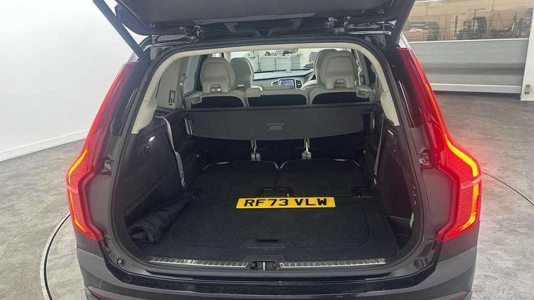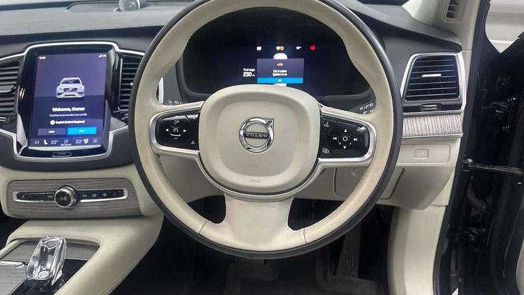 12.3" Progressive Driver Display, 360 degree surround view parking camera with side proximity sensors, 9" centre console portrait touch screen, Adjustable steering wheel force, Bluetooth hands free telephone connection, Driver alert control with lane keeping aid, Driver assistance (pilot assist and adaptive cruise control), Driver awareness - Blind spot information system with steer assist, cross traffic alert with autobrake and rear collision warning and mitigation, Emergency call service, Front and rear park assist, Google Automotive Services - Navigation with Voice recoginition and google assistant, Handsfree power tailgate opening and closing, Oncoming Lane Mitigation, Power operated tailgate, Service interval indicator, Speed limiter, Speed sensitive steering, Trip computer, Volvo on call, Wireless Mobile Phone Charger, 8 speed automatic transmission with start/stop + manual change functions, Active four C chassis - four corner adaptive dampers with electronic air suspension, DAB Radio (Digital Audio Broadcasting), Premium Sound by Bowers and Wilkins, dirac live, dolby pro logic II surround sound, 18 speakers/1400W output and fresh air subwoofer, Steering wheel remote infotainment controls, Active bending headlights with adaptive shadow technology, Adaptive brake lights with high level LED brake lights, Auto dimming interior + exterior mirrors, Auto folding and heated power door mirrors, Automatic headlight levelling system, Automatic LED Headlights + Active high beam incorporating daytime running lights, Body colour bumpers, Dark tinted windows - rear side windows and rear screen, Front and rear power windows, Headlight cleaning system, High gloss black door mirrors and window surround, High gloss black front and rear bumper deco, High gloss black mesh front grille with surround, Home safe and approach lighting, Integrated roof rails in high gloss black, LED front fog lights with cornering light function, Power glass tilt and slide panoramic sunroof with sun curtain, Puddle lights, Rain sensor with automatic windscreen wiper activation, Rear side wing doors, Rear wash/wipe with intermittent wipe setting, Roof antenna, Roof spoiler, Visible VIN plate, 12V socket front tunnel console, rear passenger compartment and cargo area, 2 seat bench in 3rd row, 2nd Row centre armrest with and cupholders, 3 seat bench in 2nd row, 4 zone electronic climate control with Clean zone air quality system + pollen filter, A-pillar parking ticket holder, Advanced interior air cleaner PM2.5, Air conditioning for 3rd row of seats, Ambient door and instrument panel lighting, B Pillar ventilation, Bright metal luggage threshold, Centre console cupholders and storage, Floor mats, Front and rear door pocket and front cupholder illumination, Front and rear reading lights, Theatre lighting and centre armrest storage illumination, Front footwell and side step illumination, Front headrests, Front seat cushion extensions, Heated front seats, Heated rear seats, Heated steering wheel, Height/reach adjustable steering column, Illuminated front and rear tread plates, Illuminated luggage compartment, Illuminated tailgate, Illuminated vanity mirrors + ticket holder, Illumination lockable glovebox compartment, Integrated sun curtains in rear doors, Isofix outer rear child seat preparation in 2nd row, Load protection net, Luggage compartment divider with grocery bag holder, Outboard armrest with cupholder and storage for third row passengers, Power driver seat with multi directional lumbar support and memory for seat and exterior mirrors, Power folding 2nd row headrests, Power passenger seat with multi directional lumbar support and memory, Rear footwell and side step illumination, Rear headrests, Semi automatic load cover, Single front passenger seat, Underfloor luggage compartment storage, 7 three point seatbelts, City safety with steering support includes pedestrian, cyclist and large animal detection and front collision warning with full auto brake, Drivers knee airbag, Dual stage driver/passenger airbags, First aid kit, Front seats SIPS airbags, Hill descent control - off drive mode, Hill start assist, IC (Inflatable Curtains) - Full Length, Passenger airbag cut-off switch, Power child locks on rear doors, Power parking brake with auto hold function, Road sign information display, Run off Road Mitigation, Run off Road Protection, Seatbelt reminder and pretensioners for all seats, SIPS (Side Impact Protection System), Slippery road and hazard light alert, Stability and Traction Control with Spin control, Engine Drag Control and Corner Traction Control, Tyre pressure monitoring system, Vehicle deceleration control with Anti-lock Brake System, Electronic Brake Distribution and Emergency Brake Assist, Warning triangle, WHIPS whiplash protection system - front, Anti-theft alarm including immobiliser/volume sensor + level sensor, Care key with user defined top speed, Key integrated remote control central locking + fuel flap with deadlocking system and auto open/close power windows, Keyless drive includes keyless entry and keyless start, Locking wheel nuts, Private locking for glovebox and tailgate, Tailored Instrument Panel and Door Tops with Contrast Stitching, Tempa spare wheel and jack,