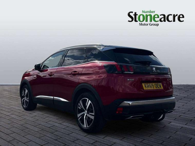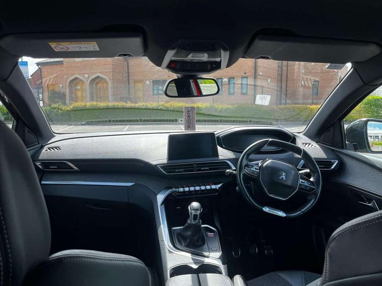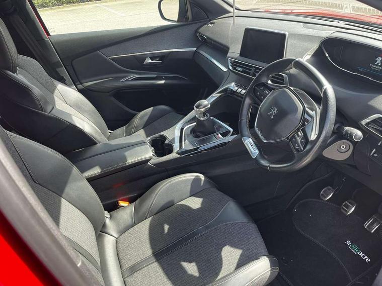 'Lights On' Reminder warning buzzer, 3D connected navigation + voice control + Peugeot connect SOS and assistance, Bluetooth telephone facility, Digital clock, Exterior temperature indicator with ice warning, Front and rear parking sensors, Lane departure warning system, Mirror screen with mirror link, apple carplay and android auto, Multi function trip computer, PEUGEOT i-Cockpit with 8.0" capacitive touchscreen in centre console, PEUGEOT i-Cockpit with compact sports steering wheel, Smartphone charging plate, Speed limit recognition and recommendation, Sports button, Diesel particulate filter, Dynamic stability control and electronic anti-skid system, DAB Digital radio, Steering wheel mounted controls, USB socket, 2 X Rear number plate lights, Aluminium longitudinal roof bars, Auto self levelling headlights, Automatic hazard light activation upon heavy brake application, Automatic triggered rear windscreen wiper in reverse gear, Black and chrome front wing trim, Body colour door handles, Body colour rear spoiler with stainless steel edging trim, Body coloured bumpers, Body protectors (bottom of front and rear bumpers + wheel arches + protection at bottom of doors) in black, Chrome front fog light trim, Chrome rear bumper facia, Chrome side window trim, Dark tinted rear side windows + tailgate window, Door mirror mounted LED courtesy approach lights, Electric operated/heated door mirrors, Front windscreen wiper with magic wash cleaning system, Full LED headlights with LED fog lights with static cornering function, sports front bumper and grille, Gloss black finish B and C pillar, Gloss black rear cluster connecting strip, Gloss black windscreen surround, GT Line emblem in satin copper, Headlights left on audible warning, Heated rear windscreen with integrated antenna, LED daytime running lights, LED sequential scrolling front indicators, LED side indicator lights integrated into door mirrors, Lion grey front bumper scuff plate, Nera black door mirrors, One touch electric front/rear windows with pinch protection, Power folding door mirrors with blind spot detection indicator and auto dipping function in reverse gear, Radiator grille in chrome edge trim with chequered design and black 'PEUGEOT' lettering, Rear LED Peugeot signature 'Claw Effect' lights, Stainless steel roof arches, Twin exhaust tailpipe, 1/3 to 2/3 split folding rear seats, 12V Sockets in dashboard, rear cabin and load area, 2 cupholders in front centre console, 2 rear reading spotlights, 2x Rear coat hooks, 3x Isofix child seat fittings in the front passenger and outer rear seats, 4 Grab handles retractable and damped, Aikinite stitching in armrest, gear lever and dashboard facia, Blue ambient lighting for connecting zone, Blue ambient lighting to front door panels, central storage and cupholders, Blue ambient lighting to head up instrument panel, Centre front armrest with butterfly wing opening and illuminated storage compartment, Driver and front passenger seat height adjustment, Driver seat manual adjustment, Dual zone automatic climate control, Electric power steering with reach and rake adjustable steering column, Fixing rings 4 in load compartment, Flocked front door pocket interior with blue ambient lighting, Flocked glovebox interior, Fold flat front passenger seat with picnic table, Footwell illumination, Front interior light with 2 reading spotlights and rear interior light with timer, Front seat back map pockets, Gear shift indicator, Illuminated glovebox, Illuminated vanity mirrors, LED interior lighting in storage spaces and load area, Mistral floor mats with Aikinite contrast stitching, Mistral full grain perforated leather steering wheel with aikinite stitch detail and satin chrome 'GT Line' emblem, Rear armrest with ski flap and two cup holders, Rear centre console ventilation system, Reclining front seats, Roof LED interior lighting, Roof lining - Mistral black, Satin chrome dashboard trim, Satin chrome digital instrument panel and touchscreen trim, Satin chrome front door panel recess trim, Satin chrome gear lever, Satin chrome interior door handles, Satin chrome scorpion's tail and toggle switch trim, Seatbelt not fastened audible and visual alert for front seats, Seatbelt unfastened on the move audible and visual alert for front and rear seats, Stainless Steel Scuff Plates, Two position boot floor, Driver sport pack - 3008, Safety pack - 3008, Safety Plus Pack - 3008, Visibility pack - 3008, 3x Rear three-point retractable seatbelts with force limiters in the outer rear seats, Adaptive driver and front passenger airbags with passenger airbag deactivation function, Anti-lock braking system with electronic braking distribution and emergency braking assistance, Driver and front passenger side airbags, Driver SMART airbag, Electric child locking functionality on rear windows and doors, Electric parking brake, Front and rear curtain airbags, Front optimised safety headrests and 3 x rear retractable headrests with height adjustable, Front passenger SMART airbag with deactivate switch, Front three point retractable seatbelts with pre tensioners and force limiters, Front ventilated disc brakes and rear disc brakes, Height adjustable front seatbelts, Hill start assist, Tyre pressure sensor, Anti theft alarm, Automatic door locking when moving off, Central locking button on dash, Deadlocks, Electronic immobiliser, Locking wheel bolts, Remote control central locking with two plip keys, Brumeo fabric Dashboard, front and rear door panel finish,