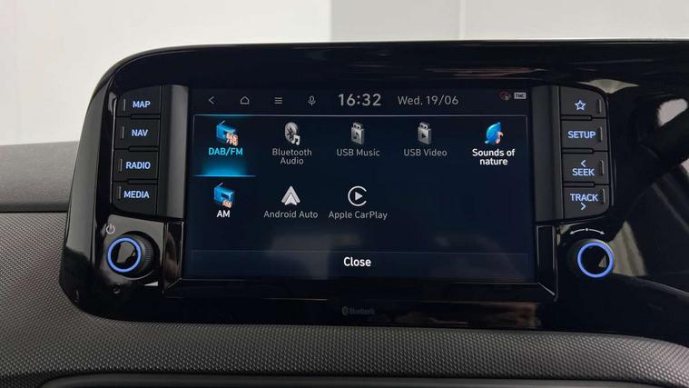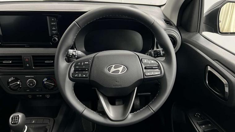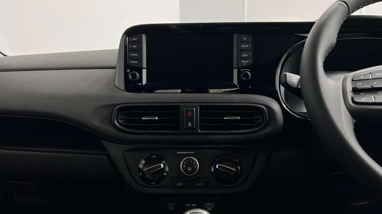 Apple car play/Android Auto, Bluelink mobile remote connectivity, Bluetooth connectivity with voice recognition, Cruise control, Driver attention alert system, eCall emergency call system, Forward Collision-Avoidance Assist (FCA) - Pedestrian/Cyclist, Front USB-C charging and USB-A data, Full-width 4.2" LCD instrument cluster, Intelligent speed limit assist, Lane departure warning system with lane keep assist - LKAS, Lane follow assist, PAS, Rear parking sensors, Rear view camera with guidelines, Roadside assistance, Start/Stop function, Tailgate, Trip computer, 2 front/2 rear speakers, Rear USB-C device charger, Steering wheel audio, phone and cruise controls, 1 speed non intermittent rear windscreen wiper, Black finish on B pillars, Body colour door handles, Body coloured bumpers, Body coloured door mirrors, Electric front windows, Electric rear windows, Electrically adjustable and heated door mirrors, Flat metal emblem, Front grille in matte black, Front intermittent wipers, Halogen daytime running lights, Halogen headlights, Headlights inner with Black Blade design, Heated rear window, High beam assist, Indicator light on door mirrors, Rear roof spoiler with integrated LED brake light, Rear side wing doors, 12v power outlet - front, 3 seat bench in 2nd row, 60/40 split folding flat to floor rear seats, Air conditioning, Auto light control, Bottle holders in front/rear doors + front centre console, Cabin and luggage compartment interior lighting, Cloth upholstery, Driver + passenger vanity mirrors, Driver's seat height adjustment, Driver/passenger sunvisors with ticket holders, Floor mats, Front door pockets, Front Head Restraints - Vertical and Horizontal Adjustment, Glove compartment, Height adjustable steering column, Isofix child seat preparation, Leather multifunction steering wheel, Rear door pockets, Single front passenger seat, Vertical adjustment rear head restraints, 3x3 point rear seatbelts, Airbags - front, front side and curtain airbags, Anti-lock brake system (ABS), Autonomous emergency braking (AEB) with forward collision warning system, Brake assist function, Childproof rear door locks, Electronic stability control, Front and rear seatbelt reminder, Front seatbelt pretensioners, Hill start assist control (HAC), Passenger airbag deactivate switch, Traction control, Tyre pressure monitoring system, Immobiliser, Perimeter alarm, Rear occupant alert, Remote central locking, Second remote key, Speed sensitive auto door locking, 15" Alloy wheels, Tyre repair kit,