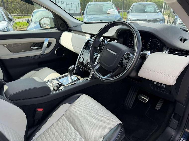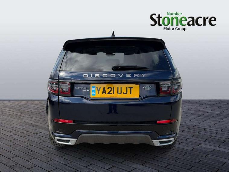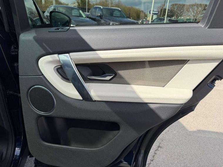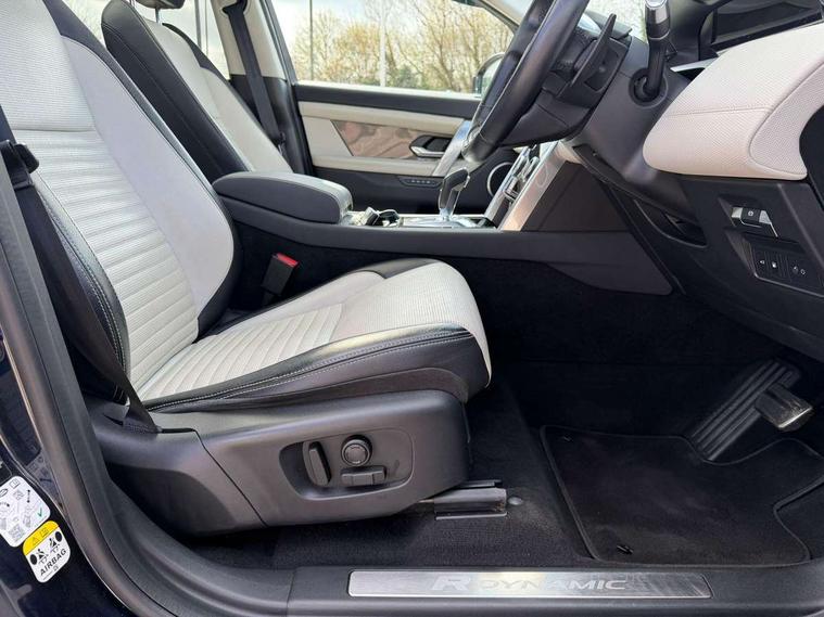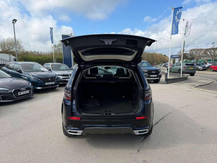 10" touch screen, Android Auto, Apple CarPlay, Blind spot assist, Clear exit monitor, Driver condition monitor, Front and rear parking aid, InControl remote premium, Interactive driver display, Lane keep assist, Locking fuel flap, PAS, Pivi Pro connected navigation system with upgraded Infotainment, Powered tailgate/boot lid, Push button start, Rear traffic monitor, Service interval indicator, Traffic sign recognition with adaptive speed limiter, Trip computer, Wade Sensing, 7 kW onboard charger, All terrain progress control, Coil suspension system, Dynamic stability control, Public charging cable, Terrain Response 2, Bluetooth connectivity including audio streaming, Digital Audio Broadcast radio-DAB, Steering wheel mounted audio controls, Automatic headlight levelling, Automatic headlights, Electric front/rear windows, Electric heated/power fold memory door mirrors with approach lights and auto dimming driver side, Fixed panoramic sunroof with powered sunblind, Front and rear recovery eyes, Heated rear window, Heated windscreen including heated washer jets, Privacy glass, R Dynamic badge, Rain sensing windscreen wipers, Rear fog lights, Rear side wing doors, Rear wiper, 5 seats, Bright metal pedals, Centre console with armrest, Footwell lights, Front and rear grab handles, Front passenger isofix child seat attachment, Loadspace cover, Loadspace light, Overhead lighting console, Overhead stowage for sunglasses, Rear headrests, Satin chrome gearshift paddles, Sunvisors with illuminated vanity mirrors, Tilt/reach adjustable steering wheel, Black exterior pack - Discovery sport, Online pack - Discovery sport, 3 point seatbelts on all seats, ABS, Brake hold function, Collision mitigation braking system, Cornering brake control (CBC), Driver/Front Passenger airbags, Drivers knee airbag, Electronic brake force distribution, Electronic parking brake, Emergency brake assist, ESP + traction control, Hill descent control, Hill launch assist, Pedestrian airbag system, Rear seat ISOFIX, Roll stability control, Side and curtain airbags for front and 2nd row seats, Trailer stability control, Tyre pressure monitoring system, Battery Back Up System (BBUS) with tilt sensor, Global lock and unlock switch on driver door, Intrusion sensor, Locking wheel nuts, Centre stack rails in noble chrome,