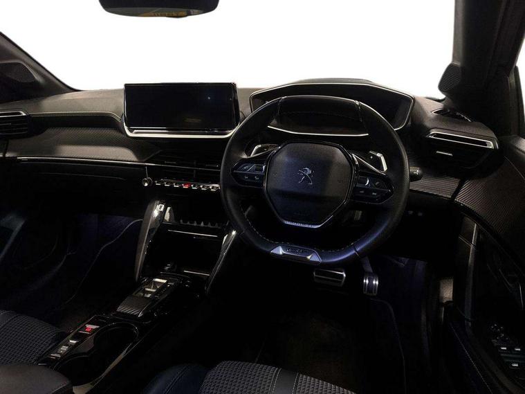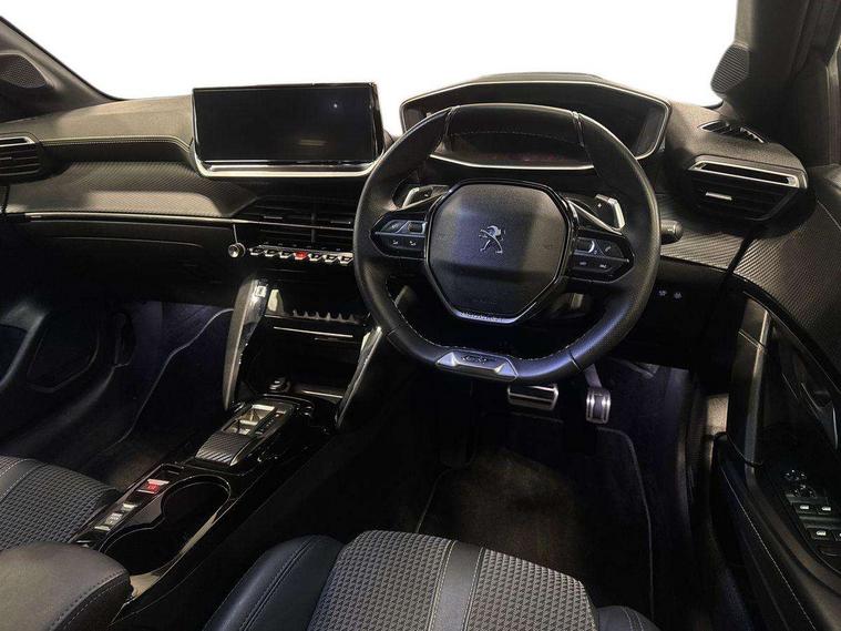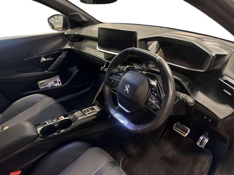 10" Capacitive colour touchscreen with connected 3D navigation, Bluetooth telephone facility, Driver attention warning, e-Toggle driving selector, Exterior temperature indicator with ice warning, Mirror screen with mirror link, apple carplay and android auto, Multi function trip computer, PEUGEOT i-Cockpit with compact steering wheel, PEUGEOT i-Cockpit with configurable 3D headup instrument panel, PEUGEOT SOS and assistance, Push button start, Smart phone docking station, Speed limit recognition and recommendation, Start/stop system, Visio park assist 180 with colour reversing camera + front and rear parking sensor, 2 front USB socket with USB-C, 2x USB sockets in rear, 6 speakers radio with mp3 compatible, DAB Digital radio, Voice recognition for radio, navigation and telephony features, 2 X Rear number plate lights, Automatic hazard light activation upon heavy brake application, Automatic lights, Automatic windscreen wipers, Body coloured exterior door handles, Dark tinted rear side and tailgate windows, Diamond Black roof, Electric front windows + one touch + anti-pinch, Electric rear windows with one touch/anti-pinch, Electrically adjustable, heated and power folding door mirrors, Extended diamond black rear spoiler, Follow me home headlights, Frameless electrochrome interior rear view mirror, Full LED headlights with smartbeam assist, Gloss black finish on B pillar, Gloss black rear cluster connecting strip, Gloss black wheel arch extensions, Gloss black window surround, GT model designation badging on C pillar, GT model designation badging on tailgate, Headlights left on audible warning, LED daytime running lights with 3 claw headlight with distinctive tooth design, LED side indicator lights integrated into door mirrors, LED third brake light, Model designation badges front and rear, Nera black door mirror shells, Peugeot scuff plates, Radiator grille - Dark chrome chequered and gloss black edge trim, Rear bumper with gloss black finish, Rear full LED 3D peugeot signature claw effect lights with daylight function, Rear lower bumper diffuser effect trim in gloss black, Rear reversing lights, Rear side wing doors, Rear windscreen wiper triggered automatically in reverse gear, Roof mounted aerial with fin design, Roof spoiler, Tailgate with heated rear windscreen and wiper blade, Twin chrome exhaust tailpipes, Variable front intermittent wipers, 1/3 to 2/3 split folding rear seats, 12V socket, 3 seat bench in 2nd row, 8 Colour personalisable ambient lighting, Aluminium pedals and foot rest, Automatic air conditioning, Automatic gear lever in full grain leather and satin chrome, Driver and front passenger seat manual adjustment in longitudinal and back rest angle, Driver and front passenger seat mechanical height adjustment, Driver and front passenger sport seats, Electric power steering with reach and rake adjustable steering column, Front and rear carpet mats in black with lime green stitch detail, Front centre armrest with storage compartment, Front LED interior light with 2 reading spotlights and rear interior light with timer, High centre console with 2 cup holders, ISOFIX child seat mounting points on passenger seat, Lime green contrast stitching to armrest, front centre console, door panels and dashboard facia, Map pockets on the backs of the front seats, Mistral full grain perforated leather steering wheel with aikinite stitch detail and satin chrome 'GT' emblem, Paddle shifts, Piano keys gloss black plated toggle switches to access main functions of the vehicle, Piano keys gloss black plated toggle switches to access touchscreen functions, Push button finished in black with chrome circle, Rear centre headrest, Roof lining - Mistral black, Seatbelt unfastened on the move audible and visual alert for front and rear seats, Single front passenger seat, 3 rear 3 point seatbelts, ABS (Anti-lock Braking System) with EBD (Electronic Brakeforce Distribution) and EBA (Emergency Braking Assistance), Active safety brake with night function/cyclists/pedestrians, Adaptive driver and front passenger airbags with passenger airbag deactivation function, Child locking functionality on rear doors, Driver/front passenger side airbags, Electric parking brake, ESP with Hill Assist, Front and rear curtain airbags, Front and rear disc brakes, Front optimised safety headrests and 3 x rear retractable headrests with height adjustable, Front three point retractable seatbelts with force limiters, Tyre pressure sensor, Acoustic vehicle alert system (AVAS), Automatic door locking when moving off, Deadlock, Electronic code immobiliser, Remote central locking, Thatcham cat. 1 alarm with anti lift sensor, Carbon effect Dashboard, front and rear door panel finish, 17" Bronx two-tone alloy wheels, Space saver spare wheel,