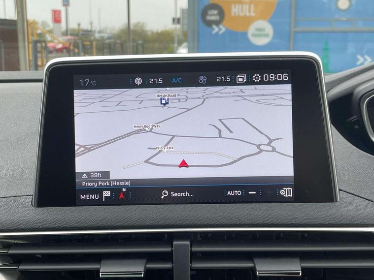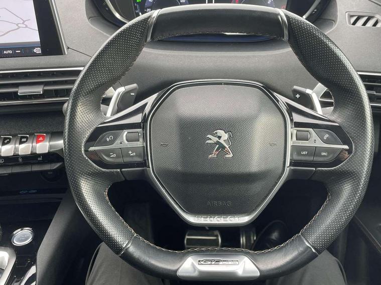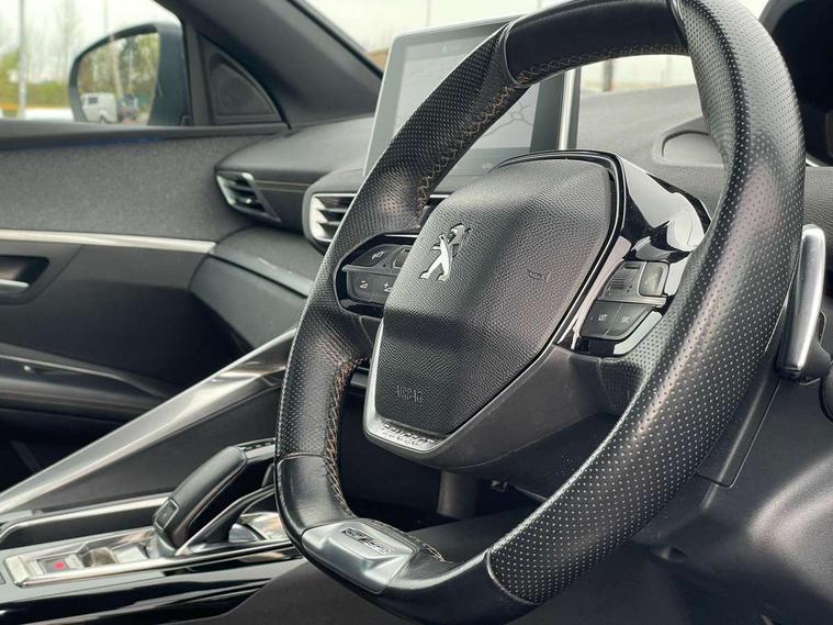 'Lights On' Reminder warning buzzer, 3D connected navigation + voice control + Peugeot connect SOS and assistance, Blind spot monitoring, Digital clock, Exterior temperature gauge, Lane departure warning system, Lane keep assist, Mirror screen with mirror link and car play, Multi function trip computer, Peugeot i-cockpit with amplify configurable interior ambiences, headup display with distance alert, touch screen, Rear parking aid, Smartphone cradle, Speed sensitive power steering, DAB Digital radio, Peugeot connect with USB and bluetooth, Radio/MP3 player, Steering column mounted multifunction controls, Automatic activation of hazard warning lights, Automatic headlamp levelling, Black door mirrors, Body colour door handles, Body colour rear spoiler, Body coloured bumpers, Chrome bumper inserts, Chrome front fog light surround, Chrome radiator grille and surround, Chrome side window trim, Dark tinted rear windows, Electric folding door mirrors with courtesy approach lighting, Electric operated/heated door mirrors, Heated rear windscreen, LED daytime running lights, LED headlights with LED front fog light and static cornering light, LED rear lights, One touch electric front/rear windows, Panoramic glass roof with electric interior blind + aluminium roof rails, Peugeot smart beam assist, Rear wiper, Sports front bumper, Twin exhaust tailpipe, 1/3 to 2/3 split folding rear seats, 230V socket on rear centre console, 3 x 12V power sockets, 4 Lashing eyes in boot, Blue ambient lighting, Centre console cupholder, Centre front armrest with illuminated cool compartment, Cupholders - 2 in rear centre armrest, Dual zone automatic climate control, Fold flat front passenger seat with picnic table, Front headrests, Front reading lights, Front seat back map pockets, Gear shift indicator, Grab handles, Height adjustable headrests, Height adjustable passenger seat, Height/reach adjust steering wheel, Illuminated glovebox, Illuminated vanity mirrors, Instrument panel light dimmer, ISOFIX on front passenger and rear outer seats, LED interior illumination, Mistral floor mats, Mistral full grain perforated leather steering wheel with aikinite stitch, Rear centre armrest/ski flap, Rear coat hook, Rear headrests, Rear reading lights, Reclining front seats, Roof lining - Mistral black, Satin chrome gear lever, Satin chrome interior door handles, Variable boot floor, Visibility pack - 3008, 3 point front seat belts, 3 point seatbelts on all rear seats, ABS + EBD + EBA, Auto city emergency braking, Driver SMART airbag, Electronic parking brake, ESP with ASR, Front and rear curtain airbags, Front and rear pre-tensioning and force limiting seatbelts, Front passenger SMART airbag with deactivate switch, Height adjustable front seatbelts, Hill start assist, Seatbelt warning lamp and buzzer, Side airbags x 2, Tyre pressure sensor, Automatic door lock/re-lock after 30 seconds, Central locking button on dash, Child lock control of rear doors and windows, Deadlocks, Electric tailgate with Peugeot open & go system, Locking wheel bolts, Perimetric and volumetric anti theft alarm, Remote control central locking with two plip keys, Rolling code transponder immobiliser, Brumeo fabric interior trim, 19" Washington diamond cut alloy wheels, Space saver spare wheel,