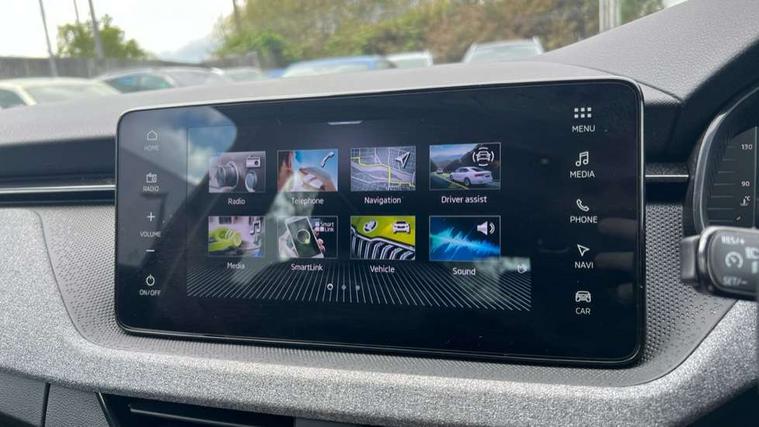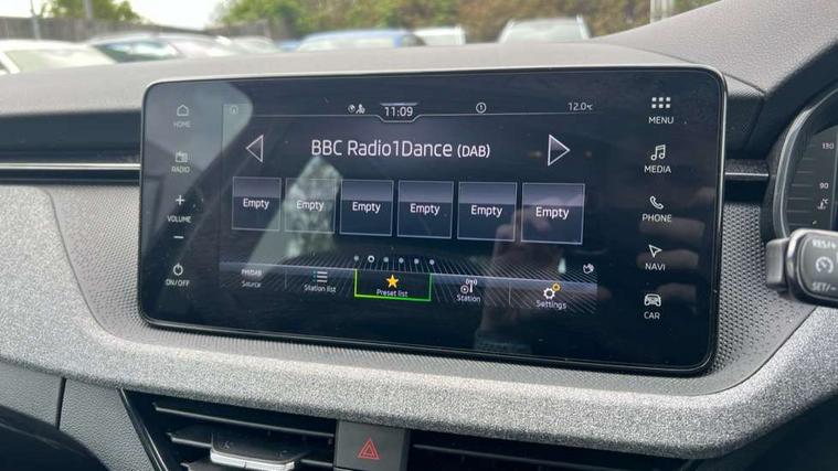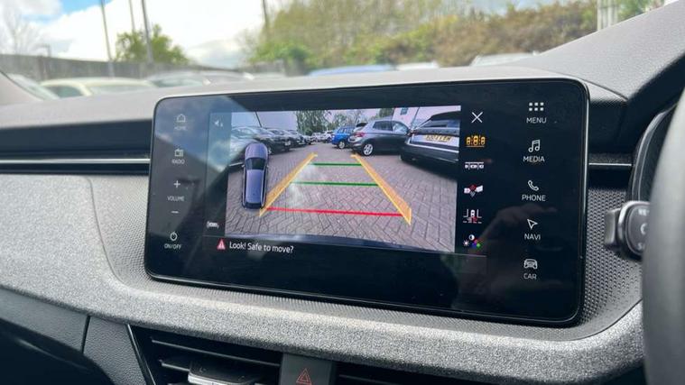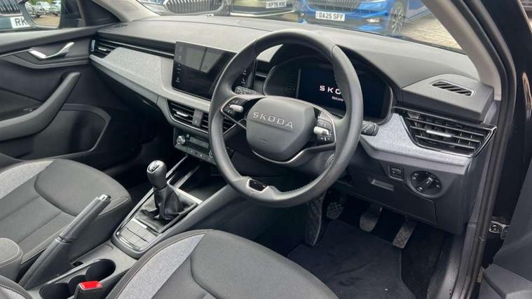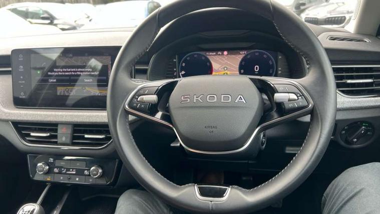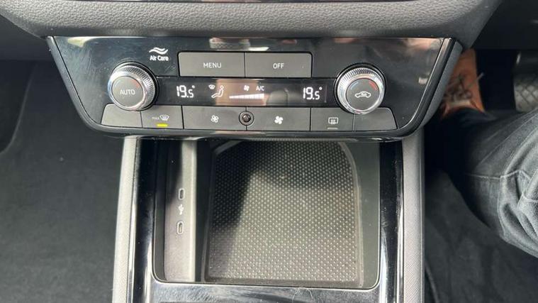 Advanced driver attention and drowsiness monitor, Bluetooth, e-Call (emergency call), Front assist system, PAS, Rear parking sensors, Rear view camera, Speed limiter, Tailgate, Traffic sign recognition, Virtual Cockpit - 10.25" digital display, Voice control system, Wireless smartlink, 4 USB C ports, 8 Speakers, 9.2" Skoda navigation display, DAB radio, Auto dimming rear view mirror, Automatic headlamp activation with Coming home and Leaving home feature, Automatic high/low beam, Body colour bumpers, Body colour door mirrors and handles, Chrome moulding around grille, Front and rear electric windows, Full LED headlights, Heated rear window, LED 3rd brake light, LED brake lights, LED daytime running lights, LED front turning lights, LED high beam, LED low beam, LED taillights, Rear LED fog light, Rear side wing doors, Rear wiper, Tinted windows, Unique dark chrome design logo on alloy wheels, 12V socket in luggage compartment, 3 seat bench in 2nd row, Black / Grey armrest stitching, Black hotstamping, Cargo elements, Chrome inner door handles, Door inserts in satin black, Driver and passenger sun visors with vanity mirror, Dual zone climate control, Front and rear roof lights, Front centre armrest, Front head restraints, Glasses storage in roof liner, Height adjustable driver seat, Height adjustable passenger seat, Ice scraper, Illuminated glove compartment, Inner circulation control with pollen filter, ISOFIX for front passenger seat, Isofix preparation for back seats, Leather gearknob and handbrake lever, Loft cloth upholstery, Luggage net under rear parcel shelf, Manual lumbar support for front seats, Net package and top tether hooks in boot space, Pearl grey ceiling, Pocket on the back of both front seats, incl. mobile phone pockets, Single front passenger seat, Skoda lettering on steering wheel, Textile floor mats, Third rear headrest, Ticket holder, Top tether for front passenger seat, Umbrella in driver's door, 3x3 point rear seatbelts, ABS, Child locks, Curtain airbags and front side airbags, Disc brakes, Driver and front passenger airbags, ESP, Hill hold control, Manual leather parking brake, One tone horn, Passenger airbag switch off function, Seatbelt reminder for driver and front passenger, Tyre pressure monitoring system, Anti theft alarm system with interior monitoring, backup horn and towing protection, Anti-theft wheel bolts, Remote central locking with 2 remote folding keys, SAFE function for remote central locking, Decord pad, door inserts Kota uni,