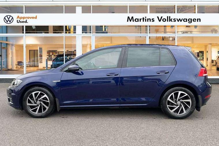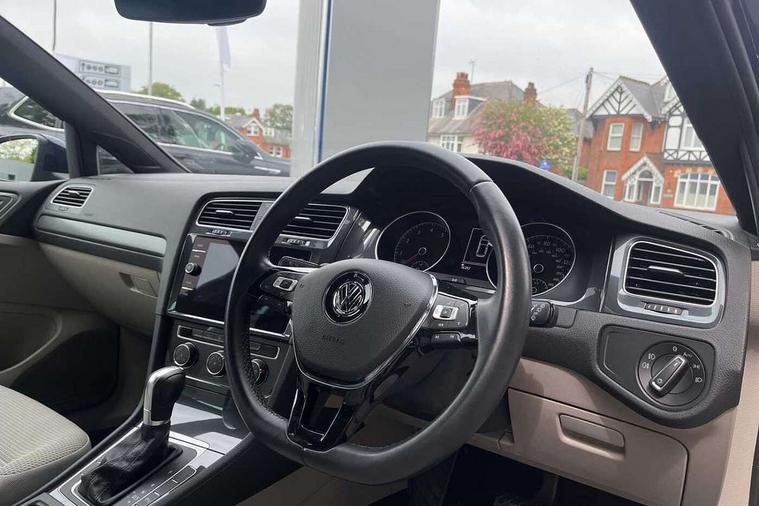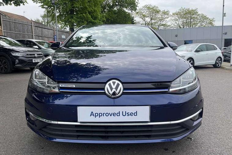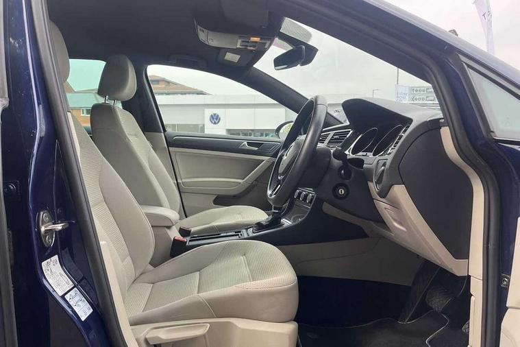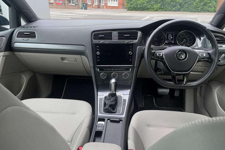 'Lights On' Reminder warning buzzer, ACC - Adaptive cruise control with front assist, forward collision warning, distance monitoring, city emergency brake and speed limiter, Bluetooth telephone and audio connection for compatible devices, Brake pad wear indicator warning light, Driver alert system, Driver profile selection, Driving Mode Selection with four preset modes - Eco, normal, sport or individual modes, Instrument cluster in white, Multifunction computer with visual gear change recommendation for fuel consumption, Power assisted speed sensitive electro-mechanical steering, Push tank flap, Speed limit display, Speedo, rev counter, electronic odometer, trip, service interval display, exterior temperature and fuel gauge, Stop/start system, Warning buzzer and light for front seatbelts unfastened, Battery regeneration during braking, XDS electronic differential lock, Composition media system, DAB Digital radio receiver, Driver Personalisation profile selection, MP3/WMA compatability, Multi device interface (MDI) with USB connection, Personalisation 1.1 profile for media, Premium USB cable in choice of either Apple or Android smartphone compatibility, SD card slot, SMS Functionality, USB and SD card connectivity, Black front air intake and radiator grille with chrome insert, Black rear diffuser, Body colour bumpers, Body colour door handles, Body colour door mirrors with integrated indicators, Dusk sensor + automatic driving lights, Electric front windows, Electric rear windows, Electrically adjustable and heated door mirrors, Fully galvanised body, Heated rear windscreen, Hidden exhaust pipe, High level 3rd brake light incorporating LED Technology, LED daytime running lights, LED front fog lights with static cornering light function, Rear fog lamp, Rear tinted glass 65% light absorbing from B pillar backwards, Rear window aerial, Rear window wash/wipe with intermittent wipe, Reflectors in all doors, Tailgate with integrated rear roof spoiler, Windscreen wipers/ intermittent wipe + 4 position delay, 12V socket in luggage compartment, 3 rear headrests, 4 load lashing points in luggage compartment, 60/40 split folding rear seat backrest, Auto fold down lever in rear seat backrest, Bag hook in luggage compartment x 2, Cooled glovebox, Cupholder cover, Dust/pollen filter, Front and rear reading lights incorporating LED technology, Front centre armrest with storage compartment and two rear air vents, Front seat back storage pockets, Grab handles front x 2, rear x 2 with integrated coat hooks, Height and reach adjustable steering wheel, Illuminated vanity mirrors, Instrument lighting white adjustable panel illumination, Interior light delay, Isofix preparation for 2 rear child seats, Load through provision with rear centre armrest and cupholders x2, Luggage compartment lighting, Overhead storage box, Passenger underseat drawer, Pearl grey headlining, Storage box in luggage compartment, Storage compartment in roof console with cover, Storage compartments in centre console, Storage compartments in front doors, Storage compartments in rear doors, Stowable luggage compartment cover, Sun visors, Variable boot floor, height adjustable and removable, Convenience Pack - Golf, Light and Sight pack - Golf, Mirror pack - Golf, 3 rear three point seatbelts, Airbags - Driver's and front passenger's, curtain airbag, Driver's knee, front side impact and passenger's airbag deactivation switch, Anti-lock Braking System (ABS) with Hydraulic Brake Assist (HBA), Automatic post collision braking system, Child locks on rear doors, Driver/Passenger optimised head restraints, Electronic parking brake with auto hold, Electronic stability control (ESC) including Electronic differential lock (EDL) and ASR (Traction control) with deactivation via infotainment system, Front ventilated disc brakes and rear disc brakes, Pre crash preventive occupant protection, Three point height adjustable front seatbelts with tensioners, Tyre pressure loss indicator, Alarm with interior protection and deactivation via infotainment system, Electronic engine immobiliser, Remote central locking with 2 remote folding keys, Brushed dark silver decorative inserts in dash and door panels, Chrome plated air vent surround, Chrome plated electric mirror adjustment light switch surround, Polar night black centre console, Steel space saver spare wheel,