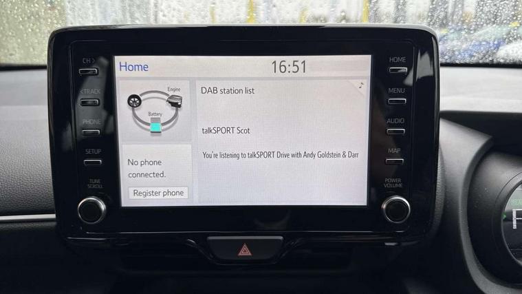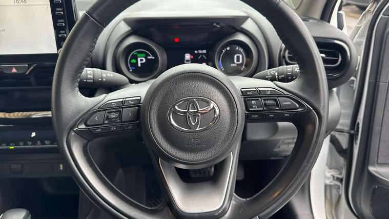 4.2" multi information display, 8" Toyota touch 2 multimedia system with Smartphone integration with Apple CarPlay and Android auto, Adjustable speed limiter, Bluetooth connectivity, Digital speedometer, Driver attention alert system, eCall emergency system, Electric power steering, Full range intelligent adaptive cruise control, Hybrid system indicator, Key reminder warning, Lane trace assist, Multimedia, audio, telephone and voice recognition switches on steering wheel, My T Connected services, Pre-collision system enhanced with emergency steering assist, Reversing camera, Road sign assist - RSA, Steering assisted vehicle stability control, 6 speakers, DAB Digital radio, USB connection, 3rd brake light, Acoustic windscreen glass, Anti-jam protection on power windows, Auto high beam [AHB] with on/off switch, Automatic headlights, Black lower front grille, Black Shark-fin antenna, Black upper front grille, Black wheel arch mouldings, Body colour door handles, Body colour front bumper, Body colour rear bumper, Electric adjustable heated door mirrors, Follow me home headlights, Front and rear electric windows with auto up/down function, Front intermittent wipers, Halogen projector headlights, Headlight cut off reminder, Indicators integrated on door mirrors, Intermittent rear wiper, LED daytime running lights, LED Indicators, Manual headlight levelling, Manually retractable door mirrors, Noise reduction layer on windscreen, Rain sensor, Rear side wing doors, Rear spoiler, Rear window defogger, 12v power outlet - front, 2x Rear coat hooks, 3 seat bench in 2nd row, 3 spoke leather steering wheel, 60/40 split folding rear seat, Adjustable speed limiter switch on steering wheel, Auto air conditioning, Boot light, Central armrest, Driver and front passenger personal lights, Fabric door trim, Fabric upholstery, Front console box, Front cup holders, Front head restraints, Glovebox, Grey roof lining, Height adjustable driver's seat, Height adjustable front passenger seat, ISOFIX child restraint system, Lane departure alert switch on steering control, Leather gearshift, Manual telescopic and tilting steering wheel, Mirror on driver and passenger sun visor, Pollen air filter, Rear head restraints, Single front passenger seat, Soft tonneau cover, 3x3 point rear seat belts, ABS+EBD+Brake assist, Driver and passenger central airbags, Driver and passenger front airbags, Driver and passenger side airbags, Electronic parking brake, Emergency brake light system (EBS), Front seat belt reminder, Hill start assist control (HAC), Passenger airbag on/off switch, Pre-collision system with pedestrian and cyclist detection, Rear door child safety locks, Rear passenger side airbags, Rear seat belt reminder, Traction control, Tyre pressure warning system, Immobiliser, Intrusion alarm, Keyless smart entry with push button start, Power door locks, Power passenger window lock, Remote door lock, 16" 10 spoke alloy wheels, Tyre repair kit,