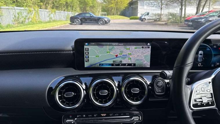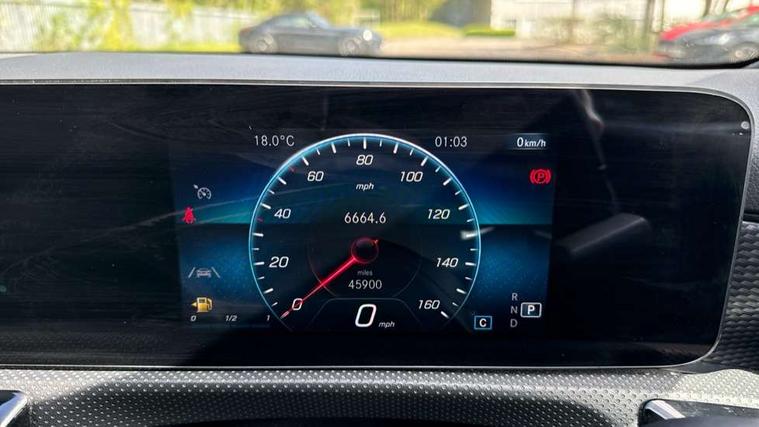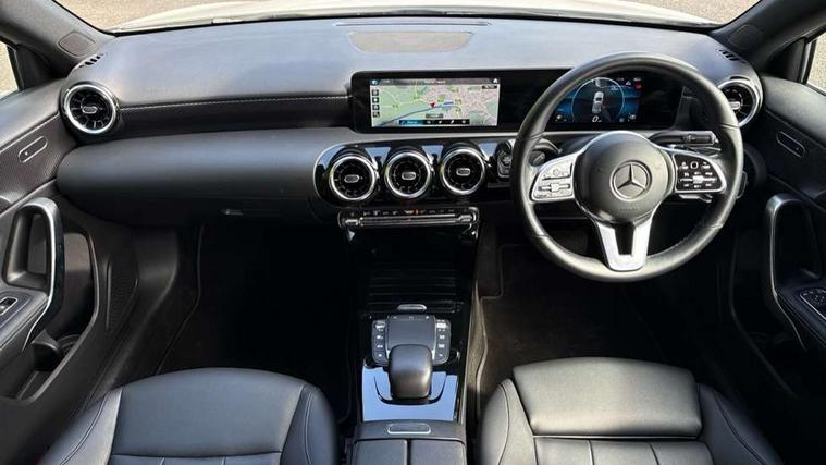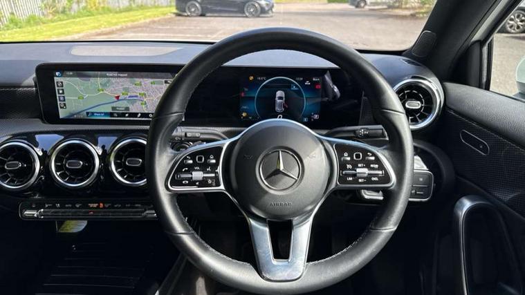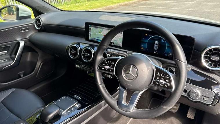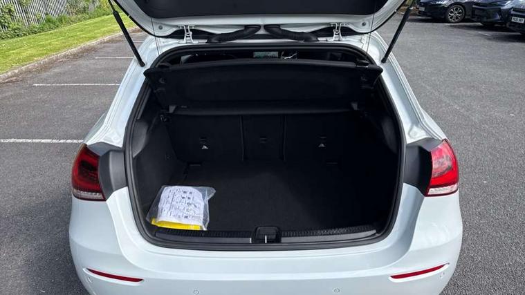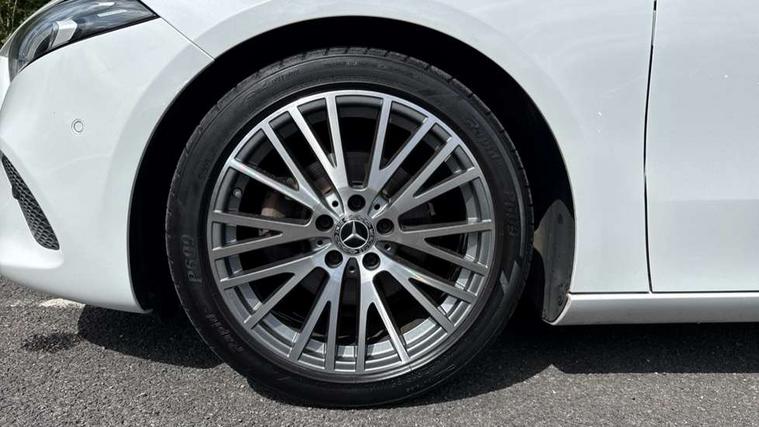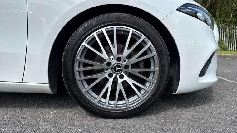 10.25" media display, 180 degree rear view camera with parking guidelines, 7" colour screen in instrument panel, Active parking assist with visual and audible warning of detected obstacles, Attention assist, Brake pad wear indicator warning light, Car wash mode, Cruise control + speed limiter, Direct steering, Dual bluetooth interfaces, DYNAMIC SELECT with a choice of driving modes (ECO, Comfort, Sport and Individual), ECO start/stop function, Fluid level warning indicator for fuel, oil, coolant and washer fluid, Hard-disk navigation, Hey Mercedes Voice activation, Lamp failure indicator, Lane keeping system, Mercedes me connect including emergency call system, accident recovery, breakdown and maintenance management, Mercedes me remote services, Outside temperature gauge, Owners manual in English, Pre-installation for private car sharing, Preinstallation for Mercedes Benz link, Service indicator (ASSYST), Smartphone integration with Apple CarPlay and Android auto, Speed limit assist, Speed sensitive power steering, Trip computer, Ultrasonic sensors positioned in the front and rear bumpers, Lowered comfort suspension, Rear axle torsion beam, 2 USB ports (type C) in rear stowage compartment and one in front of center console, 6 speakers, DAB Digital radio, MBUX multimedia system with DAB digital radio and touchpad including satellite navigation, Mercedes-Benz sound system - 100W, 4 Electric Front and Rear windows, Adaptive brake lights, Automatic headlights, Black weather strip, Body colour bumpers, Body colour door handles with chrome inserts, Body colour side skirt, Body coloured door mirrors, Chrome beltline trim, Diamond radiator grille with black pins with one louvre in silver + chrome insert, Electric adjustable and heated door mirrors with integrated LED side indicators, Exhaust system - Twin visible tailpipes in polished stainless steel, Headlamp assist automatic headlamp activation, Heated glass rear windscreen + timer control, LED High level third brake light, LED high performance headlamps with integrated LED daytime running lights, LED tail lamp, Privacy glass, Radio aerial, Rain sensing windscreen wipers with two sensitivity settings, Rear fog lights, Rear side wing doors, Rear wiper, Window line trim strip in chrome, 3 seat bench in 2nd row, 3 Spoke leather multi function steering wheel, 40:20:40 split folding rear seats, Artico man-made leather upholstery, Auto Mercedes-Benz child seat recognition sensor, Black air vents with surround in silver chrome, Black roof lining, Controller on centre console with chrome surround, Front centre armrest with storage compartment, Front comfort seats with adjustable head restraints, Front door sills with Mercedes Benz lettering, Front seat backs luggage nets, Gearshift paddles on steering wheel, Heated front seats, Height/reach adjustable steering column, Interior mirror with reading lamps in black and frameless, Manual height adjustable front seats, Rear head restraints, Seat occupancy sensor for front passenger seat, Single front passenger seat, Stowage compartment in centre console with retractable cover, Sunvisors with illuminated vanity mirrors, Touchpad on center console, Twin front cupholders, Two zone thermotronic luxury automatic climate control, Velour floor mats, Light and sight pack - A Class, Mirror package - A Class, Seat comfort pack - A Class, 3 rear 3 point seatbelts, ABS with Brake Assist, Active bonnet, Active brake assist includes forward collision warning system with autonomous braking, Adaptive brake assist with hold function and hill start assist, Childproof locks manually operated for rear doors and electrically operated for rear power windows, Crash responsive emergency lighting, Driver and passenger head and side airbags, Drivers knee airbag, Dual stage driver/passenger airbags, Electronic parking brake, ESP curve dynamic assist, ESP with ASR, Front and rear seatbelt reminder, ISOFIX and top tether child seat fixing points in two outer rear seats, Tyre pressure monitoring system, Warning triangle and first aid kit, Window airbags, Alarm system/interior protection/immobiliser, Keyless Go, Remote central locking and crash sensor with emergency opening function, Urban guard vehicle protection system with immobiliser and interior protection, Black seatbelts, Dark carbon fibre interior trim, 18" Multi spoke light alloy wheels painted in himalayas grey with high sheen finish, Summer tyres, Tirefit sealant kit,