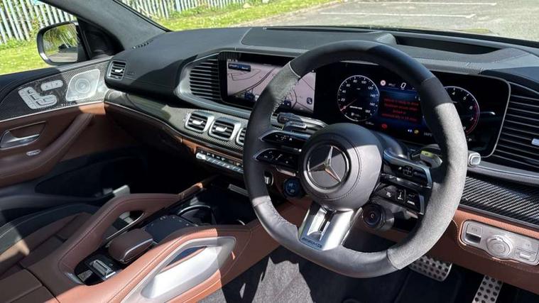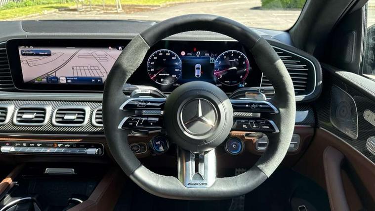 12.3 High resolution wide screen cockpit display with choice of three display styles Classic, Progressive or Sport and unique ambient lighting setting, 360 degree view camera, Active parking assist with PARKTRONIC, Attention assist, Brake wear warning display, Direct steer speed sensitive steering, DYNAMIC SELECT with a choice of driving modes (ECO, Comfort, Sport and Individual), Easy-pack tailgate - Powered opening/closing automatically, ECO start/stop function, Hard-disk navigation, Head up Display, MBUX augmented reality for navigation, MBUX voice control activated by keywords "Hey Mercedes", Mercedes Benz emergency call system, Mercedes me connect - vehicle set up and monitoring, Outside temperature display, Pre-installation for digital key transfer, Service indicator (ASSYST), Status display for rear seat belts in instrument cluster, Traffic sign assist, Trip computer in multifunction display showing current fuel consumption, Wireless charging, Wireless smartphone integration including Apple CarPlay and Android auto, 48V Technology, 4MATIC+ all wheel drive system for performance and handling, 85 litre fuel tank, AMG ride control + with adaptive dampers, AMG Speedshift TCT 9 speed transmission, Mild Hybrid starter alternator, Petrol Particulate Filter (PPF), Additional USB connection, Bluetooth interface for hands free and audio streaming, Burmester surround sound system, DAB digital radio tuner, Front and rear USB ports, Sound personalisation, Adaptive brake lights, Aluminium look, illuminated running boards with rubber studs, AMG bodystyling front and rear aprons and side skirts in polished aluminium, AMG fuel cap, AMG radiator grille with integrated star and vetical struts, AMG selectable performance exhaust system, Auto headlights, Automatically dimming rear view mirror and driver's exterior mirror, Body coloured bumpers, Electric windows with one touch opening/closing and obstruction sensors, Electrically adjustable, heated, folding exterior mirrors, Exterior styling - front bumper, radiator grille and front air intakes, Heat insulating privacy glass, Heated windscreen washers, LED 3rd brake light, LED daytime running light signet, LED rear lights, Magic vision control, Multibeam LED headlights with adaptive highbeam assist plus, Panoramic sliding sunroof, Radio aerial integrated into rear window, Rain sensing windscreen wipers, Rear side wing doors, Transparent Bonnet, 3 seat bench in 2nd row, 3 spoke AMG Performance multifunction steering wheel in nappa leather/MICROCUT, 4 way adjustable front head restraints and 2 way rear head restraints, 40:20:40 split folding rear seats, AMG floor mats, AMG steering wheel buttons, Climatised front seats - Heated and cooled, Dividing net for luggage compartment partitioning and occupant protection, Double sunvisor, Electric height/reach adjustable steering column, Electrically adjustable front seats with memory function, Front centre armrest with stowage compartment and illuminated grab handles, Gearshift paddles on steering wheel, Glove compartment - lockable, air conditioned and illuminated, Heated steering wheel, Illuminated front door sill with AMG lettering, Illuminated vanity mirrors, Interior lighting - 64 colour Ambient lighting, Luggage compartment cover, Luxury head restraints in front, Multicontour front seats with massage, Roof lining in black microfibre, Seat occupancy sensor for front passenger seat, Single front passenger seat, Sports pedals in brushed stainless steel with rubber studs, Temperature controlled cupholder, Thermotronic automatic 4 zone climate control, Touchpad, Air balance package - GLE, AMG night package - GLE, Energizing package - GLE, Exclusive Trim package - GLE, Keyless go comfort package - GLE, Active bonnet, Anti-lock braking system (ABS), Black seat belts, Childproof locks manually operated for rear doors and electrically operated for rear power windows, Drivers knee airbag, Dual stage airbags - driver and front passenger, sidebag, and front and rear window airbags, Electronic parking brake, Electronic stability programme (ESP) with curve dynamic assist and cross wind assist, First aid kit, warning triangle and high visibility jacket, High performance perforated front brake discs and silver brake calipers with AMG lettering, ISOFIX child seat points with automatic child seat recognition, Pre-Safe anticipatory safety system, Three point rear seat belts, Tyre pressure monitoring system, Alarm system/interior protection/immobiliser, Central locking with interior switch, automatic locking and crash sensor with emergency opening function, Chrome surround in electric key, Dashcam, Guard 360 degree vehicle protection plus, Carbon fibre trim elements, Dashboard and door beltlines in ARTICO man made leather with contrast top stitching, 22" AMG cross spoke forged alloy wheels in matt black with high sheen finish, TIREFIT with tyre inflation compressor,