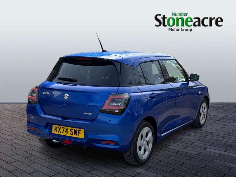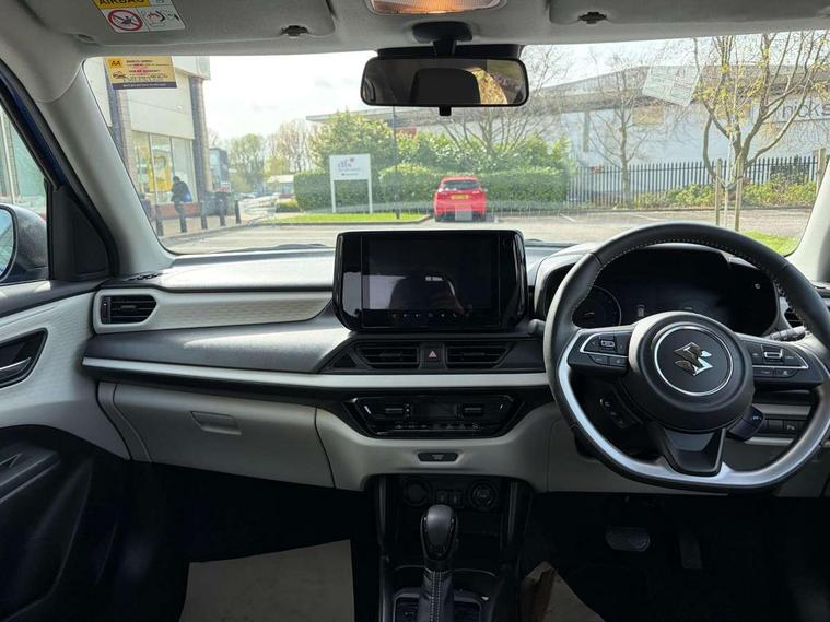 Adaptive cruise control with Stop and Go, Automatic start/stop system, Blind spot monitoring, Colour LCD information display, Digital clock, Driver monitoring system, eCall, Fuel consumption display (average/instantaneous) and range display, Intelligent speed control support, Lane departure prevention, Lane departure warning system, Lane keeping assist (LKA), Low fuel level warning light, Navigation system, Outside temperature display, PAS, Rear cross traffic alert, Rear parking camera, Rear parking sensors, Remote fuel cap release, Smartphone integration with Apple CarPlay and Android auto, Suzuki connect, Tailgate, Traffic sign recognition, Weaving alert, 4 speakers + 2 tweeters, 9-inch infotainment display, Auxiliary input socket, Bluetooth audio streaming, DAB Digital radio, Steering wheel audio controls, USB Type A and C, 'Guide me home' headlamps, 1 speed with intermittent rear wiper + washer, 2 speeds front wiper with intermittent + washer, Automatic headlights, Black coloured A & B pillars, Black Upper and lower front grille, Body colour door mirrors and handles, C pillar trim moulding, Electric door mirrors, Electric front windows, Electric rear windows, Green tinted glass, Heated door mirrors, High beam assist, LED daytime running lights, LED High mounted stop light, LED position lamps, LED projector headlamps, LED rear combination lamp, Manual headlamp level control, Rain sensor, Rear fog lights, Rear privacy glass, Rear side wing doors, Rear spoiler, Side spoiler, 1 cup holder in rear, 12V Accessory socket in front console, 2 cup holders in front, 2 Isofix seat anchors, 3 bench rear seats in 2nd row, 3 rear head restraints, 3 spoke leather covered steering wheel, 60/40 split rear seats, Accessory socket, Centre console storage, Centre lower box, Child seat tether anchorages x 2, Chrome handbrake release button, Chrome interior door handles, Cloth upholstery, Door pockets with bottle holder, Driver/passenger sunvisors with ticket holders + vanity mirrors, Front cabin lights, Front headrests, Front map light, Front passenger side assist grip, Glovebox, Heated front seats, Heater, Height adjustable driver's seat, Luggage area lamp, Manual air conditioning with digital control panel, Material door trim ornament, Parcel shelf, Passenger seat back pocket, Pollen filter, Single front passenger seat, Tilt adjustable steering wheel, Tilt/telescopic adjustable steering wheel, 3 point ELR seatbelts for centre seat, 3 point ELR seatbelts front and rear, ABS+EBD+Brake assist, Curtain airbags, Driver airbag, Dual sensor brake support, ESP + traction control, Front and rear seatbelt reminder, Front passenger airbag, Front passenger airbag deactivation, Front seatbelt pretensioners with force limiters, Hill hold control, Rear child proof door locks, Rear seatbelts with pre-tensioners and load limiters, Side airbags with incorporated into front seats, Tyre pressure indicator, Deadlocks, Freewheeling key cylinders, Immobiliser, Keyless entry and start, Light - on and Key in reminder, Locking wheel nuts, Remote central locking, Painted instrument panel ornament, 16" Painted alloy wheels,