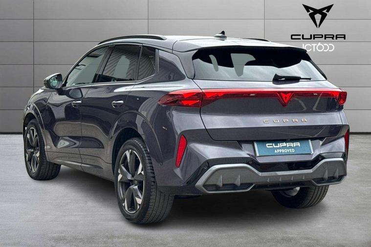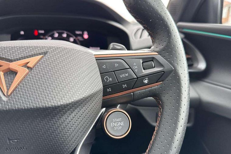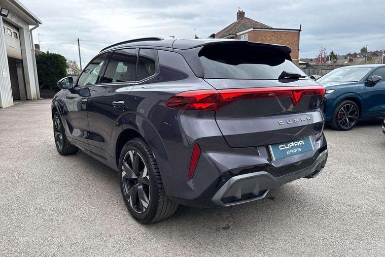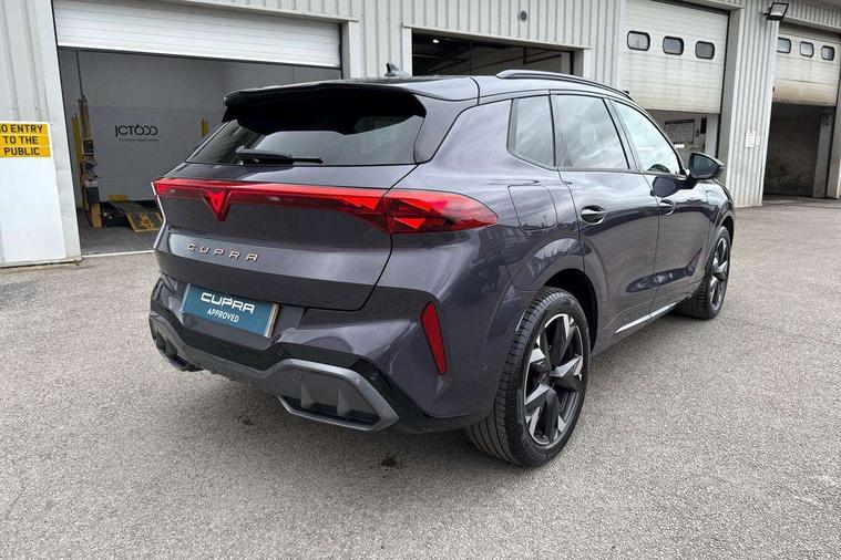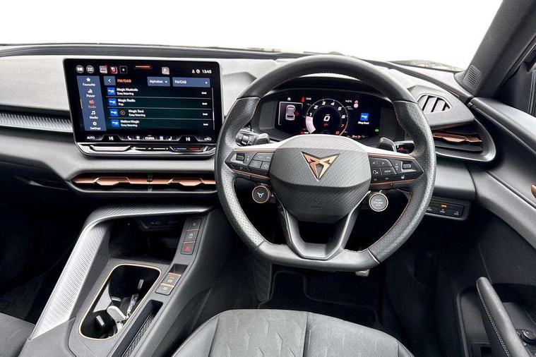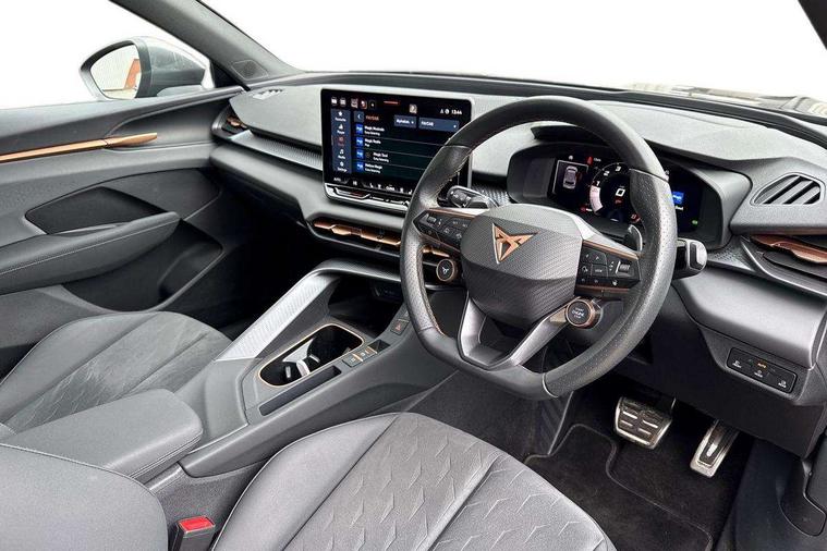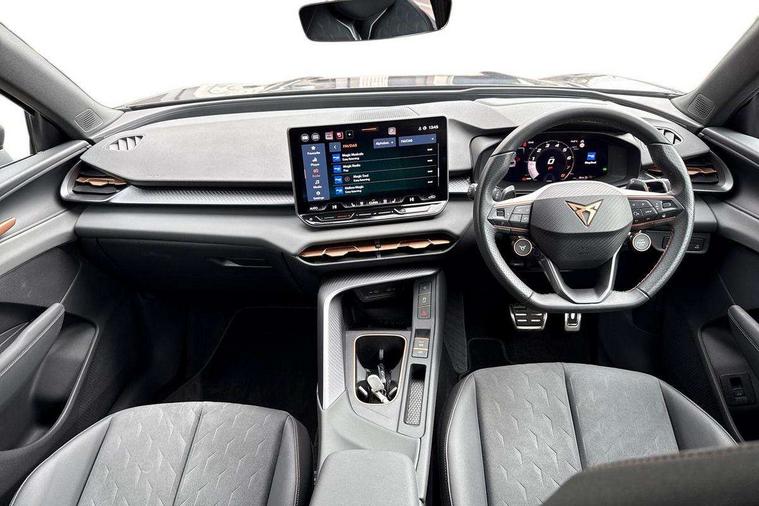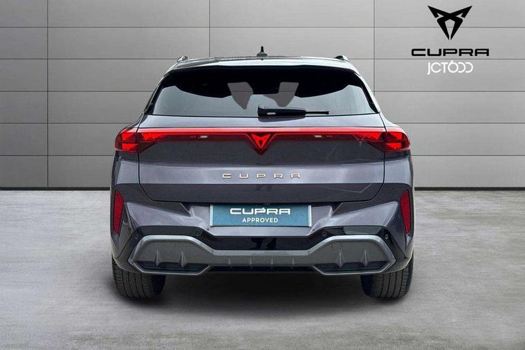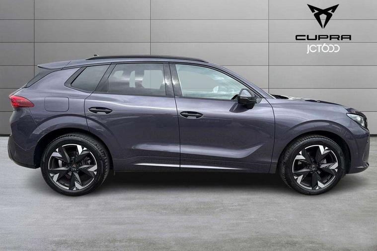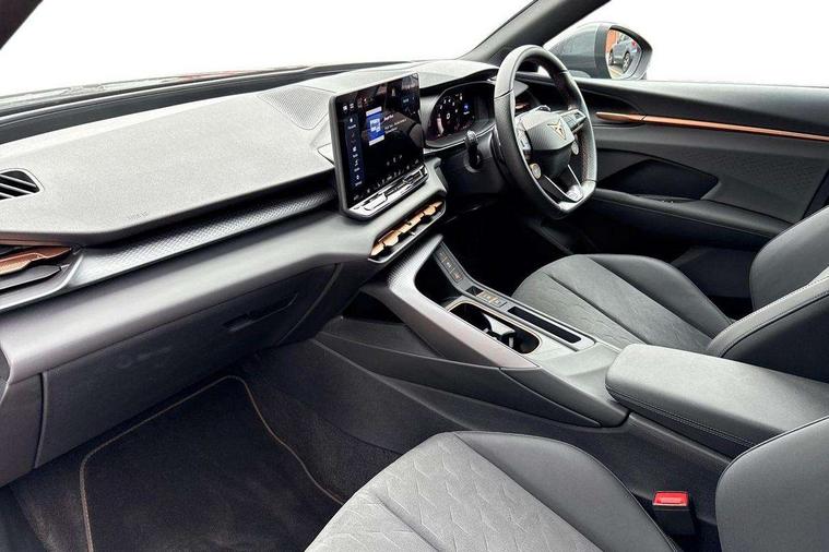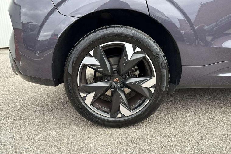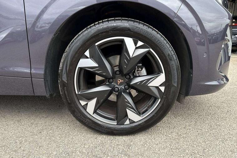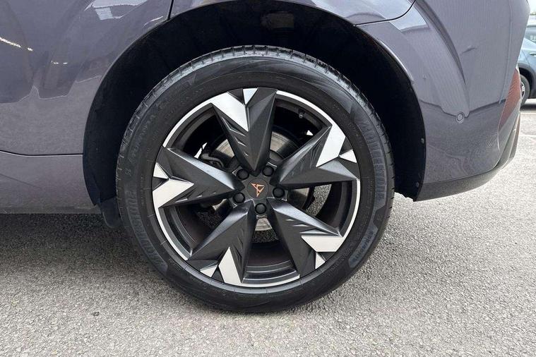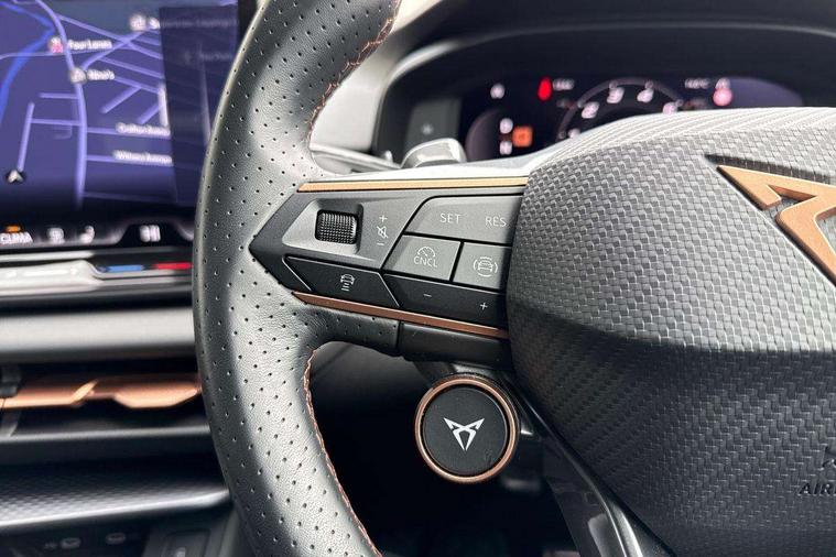 10.25" digital cockpit and configurable dashboard, Adaptive cruise control with follow-to-stop and speed limiter, Advanced driver alert system, Advanced lane assist with semi-automatic vehicle control in a medical emergency and traffic jam assist, Driving profile selection and conventional shock absorber, Dynamic road sign display, E-call, Electric tailgate with virtual pedal, Emergency steering support with turn assist, Front and rear parking sensors, Front assist (Forward collision warning with automatic braking) with multifunction camera and front cross traffic assist, Head up Display, Intelligent park assist, Media system with Nav - 12.9" touch display, voice control, full link phone (wired/wireless), DAB and Steering wheel mounted controls, Rear traffic assist, Side and exit assist, Speed sensitive power steering, Start/stop system with regenerative braking, Top view camera (front camera, rear camera, 2 side cameras), Wireless phone charger, Auto dimming rear view mirror, Black roof rails, CUPRA 3D rear lights with ceremony & swiping indicator and illuminated logo, Dark tinted rear windows, Daytime running lights with automatic headlight control and Coming and Leaving home function, Door mirrors with memory function and lowing function on passenger mirror, Dynamic headlight range control, Electric front/rear windows, Electrically adjustable, heated and folding door mirrors, Front fog lamps with cornering function, Heat reflecting windscreen, High beam assist, LED headlamps with signature "CUPRA LED", Rain sensing wipers, Rear fog light on one side, back up light on both sides, Rear side wing doors, Rear wash/wipe, Third brake light, Welcome lights (within exterior mirror housing), 3 seat bench in 2nd row, Black roof lining, Cupra sports pedals, Dinamica cloth upholstery, Driver seat memory function, Electrically adjustable front seats including lumbar support, Four x USB Type C ports (2 in front and 2 in rear), Front and rear head restraints, Front and rear reading lights X 4, Front centre armrest, Heated front seats, Heated leather wrapped multi function sports steering wheel with tiptronic, Illuminated interior front door sills, Isofix, Operating voltage 12V, Single front passenger seat, Smart wraparound interior lighting, Sunvisors with illuminated mirror, Three zone climate control with control panel in rear, Unsplit rear seat bench, split folding backrest, with centre armrest, Variable luggage/load compartment floor, 3 point seatbelts in front with pretensioner and electric height adjustment, 3 point seatbelts on all rear seats, Brake control system - ESC and brake booster, Child proof door locks, Driver and front passenger airbags, Electronic parking brake, Front and rear disc brakes, Front interaction airbag, Front passenger airbag deactivation switch, Front side airbags with curtain airbags, Pre-crash front and rear seat belt tensioner, window closure and hazard lights, Tyre pressure monitoring system, Visual and acoustic seat belt reminder, electric contact in front and rear, Anti theft alarm, Keyless locking and starting system with keyless access, Locking wheel bolts, Black decorative trims, Chrome interior detailing, 19" Spectrum exclusive machine alloy wheels, Tool kit,
