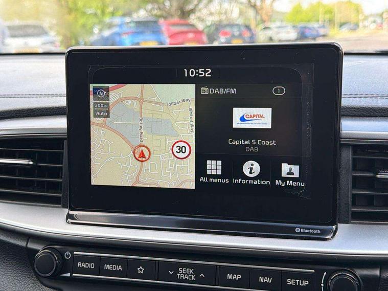 10.25" touchscreen satellite navigation including telematics, 3.5" supervision cluster display, Apple car play/Android Auto with voice control, Bluetooth with Voice Recognition & Music Streaming, Cruise control + speed limiter, Driver attention warning, Emergency stop signalling system, Kia connected services featuring TomTom live, Lane keep assist, Motor driven power steering, Outside temperature gauge, Reversing camera with dynamic guide lines, Service interval indicator, Trip computer, Intelligent Stop and Go, 6 speaker audio system, DAB Radio with MP3, Illuminated USB & aux ports, Steering wheel mounted controls, USB & AUX Ports for Connection of a Media Device, USB Fast Charger in Front Centre Console, All-round Electric Windows with Front Auto Up & Down Function, Automatic headlights, Body colour bumpers, Body colour door mirrors, Body colour exterior door handles, Chrome window surround, Electrically adjustable and heated door mirrors, Front fog lights, Front wiper de-icer, Halogen projection headlights, Heated rear window with timer, High beam assist, High gloss black radiator grille, LED daytime running lights, LED High-mounted Brake Light, LED rear lights, Rear spoiler, Rear wash/wipe, Tinted glass, Windscreen Washer Level Warning, 12V power socket in front console (x2), 3 x passenger assist grips, 60/40 split folding rear seat, Air conditioning, All-round height adjustable headrests, Centre console storage box/armrest, Cloth door trim, Cupholders in centre console, Cupholders in rear armrest, Dash illumination dimmer switch, Driver & Front Passenger Sunvisors with Vanity Mirror Illumination & Ticket Holder, Driver's seat height adjuster, Dual Height Luggage Area Floor, Front and rear door storage, Front map light with sunglasses case, Front seat and rear pockets, Gear shift indicator, Headlining in Light grey, Illuminated ignition key hole, Interior door lock/unlock function, ISOFIX Child seat top tethers and anchor fixings, Leather handbrake, Leather steering wheel and gearshift, Luggage area light, Luggage area parcel shelf, Luggage hooks, Premium cloth upholstery, Rear centre armrest, Rear coat hooks, Silver Finish Interior Door Handle, Tilt/telescopic adjustable steering wheel, ABS with Electronic Brakeforce Distribution (EBD) and Brake Assist System (BAS), All round 3-point seatbelts, Dual front side airbags, Electronic stability control (ESC) and vehicle stability management (VSM), Front passenger airbag deactivation, Height adjustable front seatbelts, Hill start assist control (HAC), Impact sensing auto door unlocking, Rear door child safety locks, Seatbelt reminder warning, Traction control, Twin curtain airbags, Twin front airbags, Tyre pressure monitoring system, Alarm system, Engine Immobiliser & Deadlocks, Locking wheel nuts, Remote central door locking with fold away key, Speed sensitive auto door locking, Silver fascia trim, 16" alloy wheels, Tyre mobility kit,