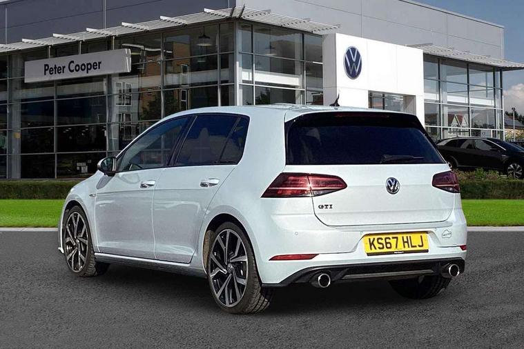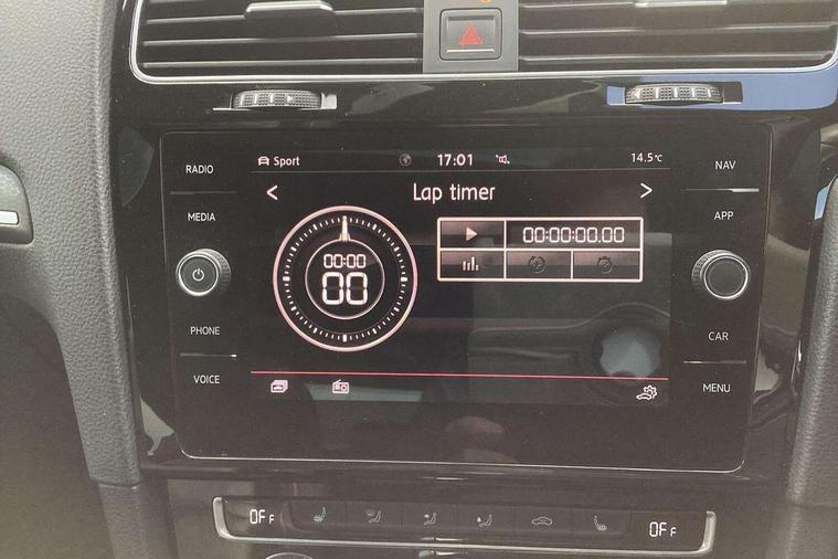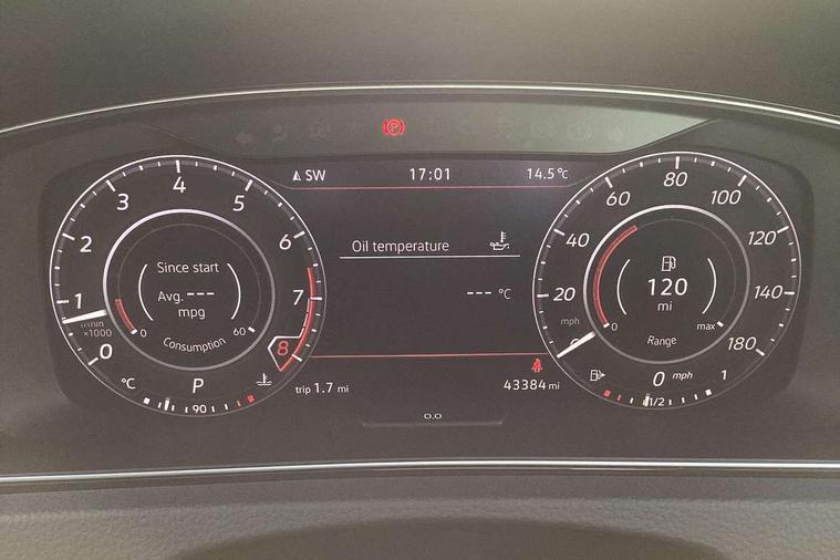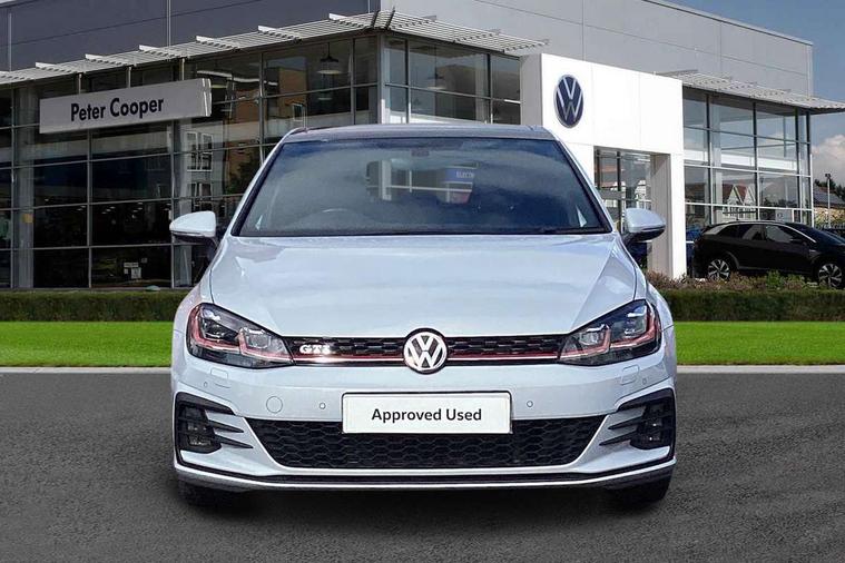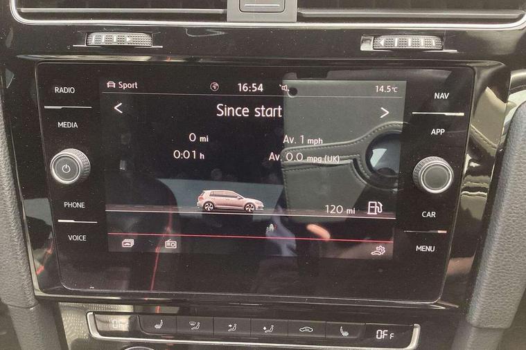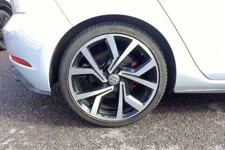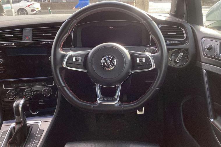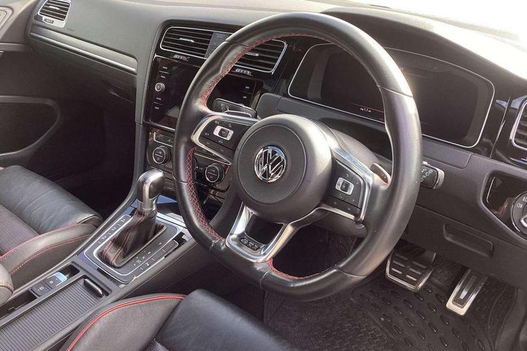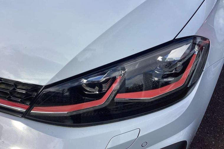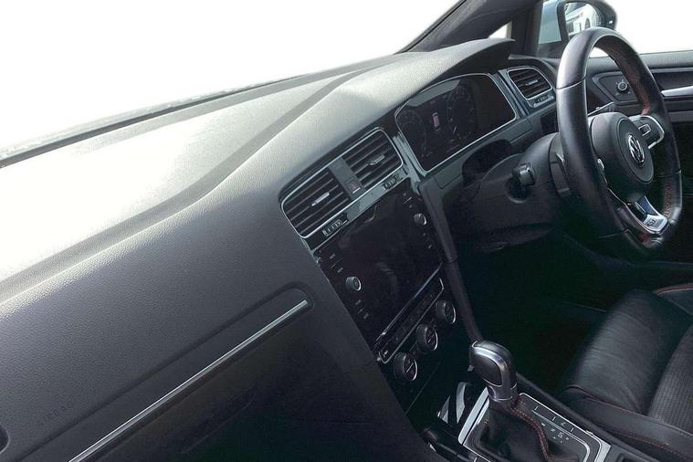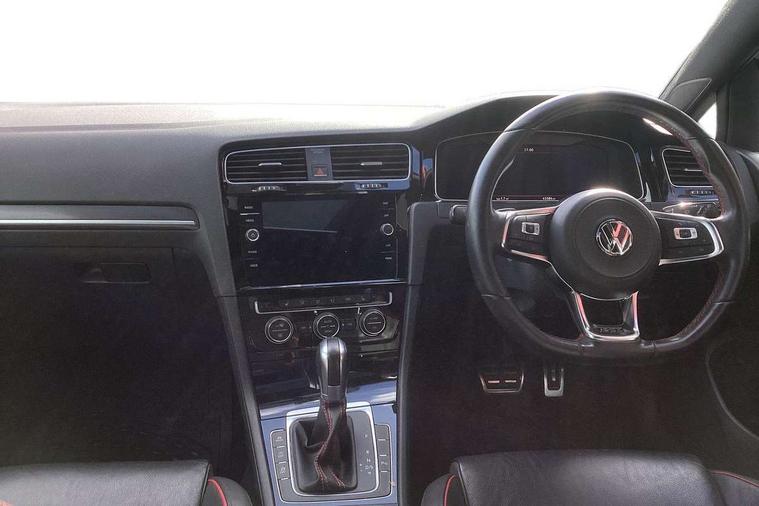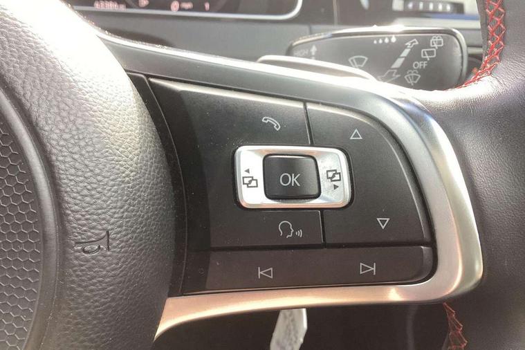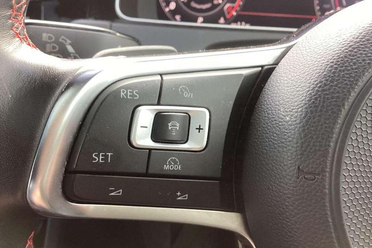 'Lights On' Reminder warning buzzer, 8" touch screen, Adaptive Cruise Control with pedestrian detection and speed limiter, App-Connect, Bluetooth hands free telephone connection, Brake pad wear indicator warning light, Driver alert system, Driver profile selection, Exterior temperature gauge, Front assistant collision mitigation, Instrument cluster in white, Multifunction computer, Progressive power assisted steering, Rev counter, Trip and service interval display, Ultrasonic front and rear optical and audible parking sensors, Warning buzzer and light for front seatbelts unfastened, Anti-tramp function, Lowered sports suspension, XDS plus electronic differential lock, CD/MP3/WMA, USB and SD card reader, aux-in, Composition media system, DAB Digital radio, 3D-LED-SBBR with sweeping indicator, Auto dimming rear view mirror, Automatic coming/leaving home lighting function, Automatic headlights, Black rear diffuser, Body colour door handles, Body colour door mirrors, Body colour rear roof spoiler, Body colour sports bumpers, Electric front windows, Electric rear windows, Electrically adjustable and heated door mirrors, Heated rear windscreen, Honeycomb radiator grille - black, LED daytime running lights, LED front fog lights, LED rear lights, Rain sensor, Rear windscreen washer and wiper with interval delay, Twin exhaust tailpipe, 12V socket in luggage compartment, 3 rear headrests, 3 spoke steering wheel, 60/40 split folding rear seat, Air conditioning - 2 zone electronic climate control, Bag hook in luggage compartment, Black headlining, Boot lashing points, Cooled glovebox, Courtesy light delay, Cover for storage compartment in centre, Dust/pollen filter, Front + rear carpet mats, Front centre armrest with storage box and rear air vents, Front passenger seat height adjust, Front seat back storage pockets, Gearshift paddles, Grab handles, Height adjustable driver's seat, Height/reach adjust steering wheel, Illuminated door sills, Illuminated vanity mirrors, Isofix preparation for 2 rear child seats, Load through provision with rear centre armrest and cupholders x2, Luggage compartment cover, Luggage compartment lighting, Multi-function leather steering wheel with red stitching, Overhead storage box, Stainless steel pedals, Storage box in luggage compartment, Storage compartments in doors, Sun visors, Variable boot floor, height adjustable and removable, Ambient lighting pack - Golf, Mirror pack - Golf, 3 point height adj front seatbelts + pretensioners, 3 rear 3 point seatbelts, ABS, Automatic post collision braking, Child locks on rear doors, Driver/Front Passenger airbags, Driver/Passenger whiplash optimised head restraints, Drivers knee airbag, Electronic parking brake with auto hold, ESP with EDL + ASR, Front and rear curtain airbags, Front passenger airbag deactivation, Front side airbags, Pre crash system, Red brake calipers, Tyre pressure monitor, Alarm with interior protection, Electronic engine immobiliser, Remote central locking with 2 remote folding keys, Chrome-plated light switch surround, Honeycomb black decorative inserts, Piano black centre console, Space saver spare wheel,
