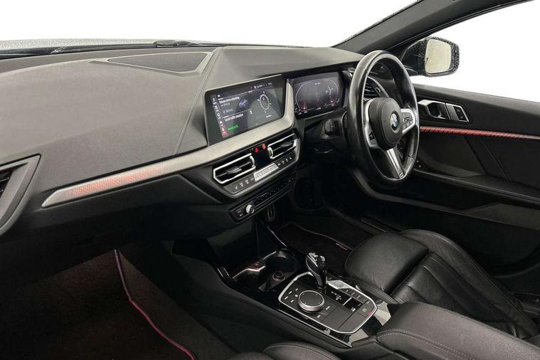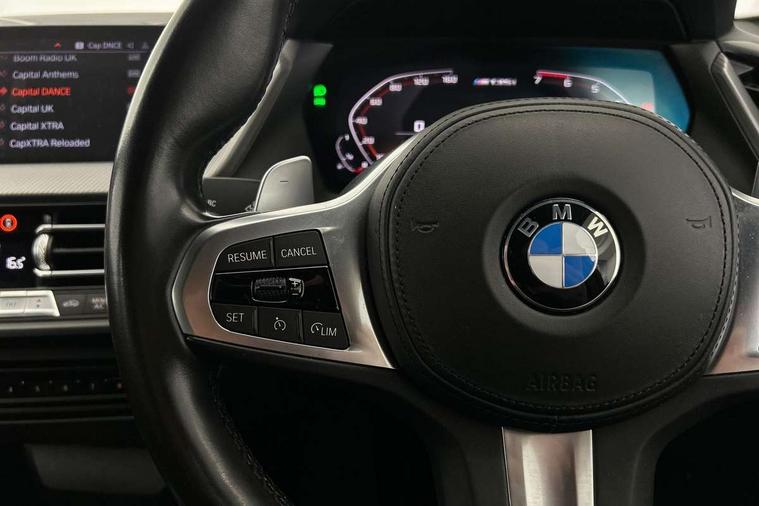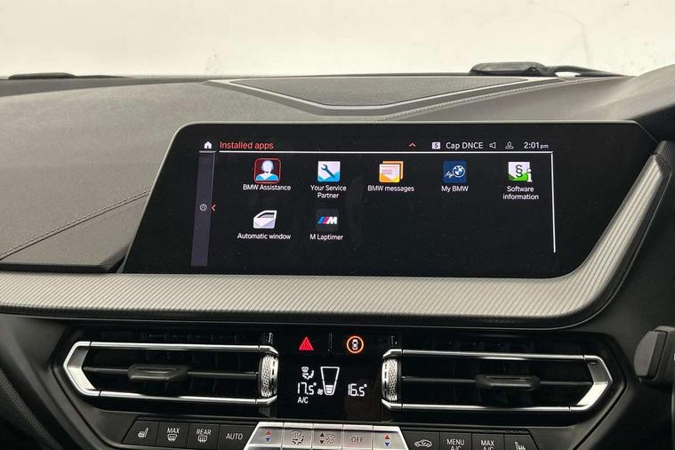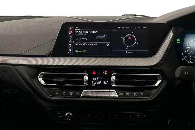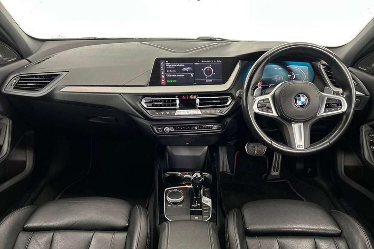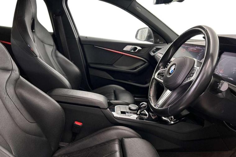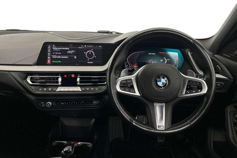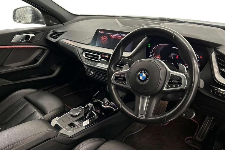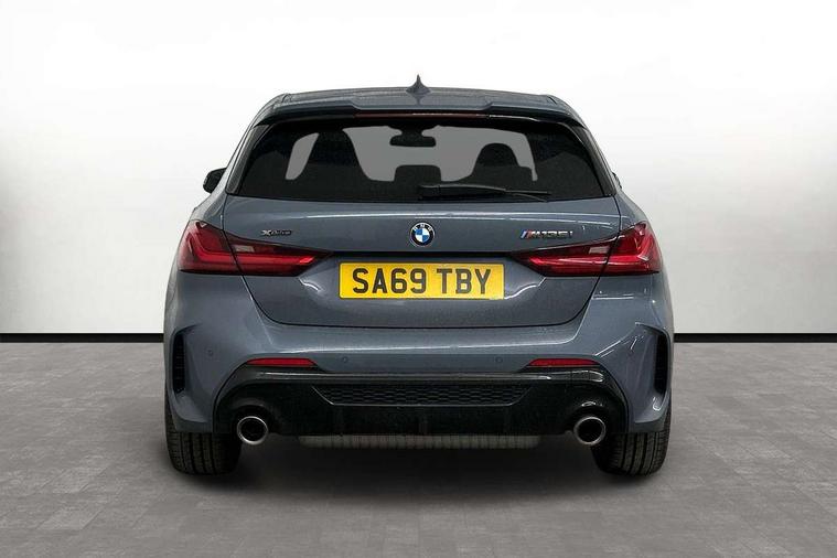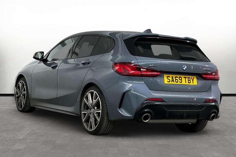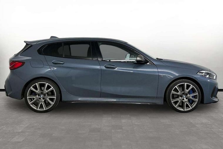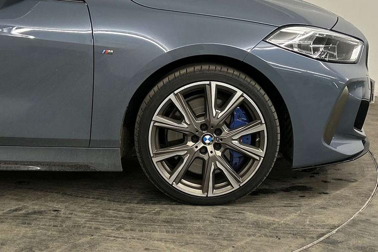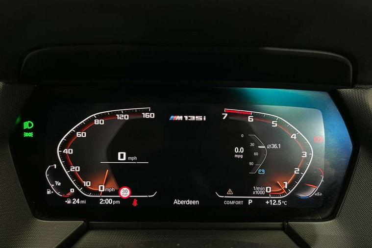 Active guard plus, Attentiveness assist, BMW Live Cockpit Professional sat nav system including 10.25" high resolution display and Intelligent Voice Assistant, BMW Online services, BMW Teleservices, Check Control warning system for monitoring of lights and door/luggage compartment open warning, Eco pro mode, Integrated owners handbook, M Sports steering, On board computer, Optimum shift indicator, Personal Profile, Pull away assistant, Speed limiter, Anti roll bar front and rear, Balancer shaft, Double VANOS, Drive Performance Control, Electronic differential lock, Engine cover with M performance designation, High precision injection, Larger fuel tank capacity (50 litres), Launch control, Petrol Particulate Filter, VALVETRONIC engine management, Bluetooth audio streaming, DAB Digital radio, Auto dimming rear view mirror, Body colour door handles, Cerium grey exterior mirror caps, Direction indicator side lights in exterior mirrors, Electric folding and anti dazzle exterior mirrors, Fading support, Follow me home headlights, Front and rear electric windows with open and close fingertip control, anti trap facility and comfort closing, Front door sill finishers with M135i designation, Green tinted heat protection glazing, Headlight beam throw control, High gloss shadow line exterior trim, High level third brake light, Kidney grille frame in Cerium Grey with Mesh design, LED daytime running lights, Lightweight engineering, M logo designation side in cerium grey, M performance exhaust system, M rear spoiler, Matt black air guide grilles, Matt black roof moulding, B pillar finisher and wheel arch trim, Matt black window frame, Model designation on right side of tailgate, Nearside reverse light in rear light cluster, Rain sensor including auto headlights activation, Rear fog lights, Rear window wiper, Round exhaust system with twin cerium grey tailpipes in left and right split, Shark fin antenna, Visible VIN plate, Welcome lighting, Windscreen wipers with integrated washing jets, 12V power socket in centre console, 2 cupholders in front centre console, 3 rear seat head restraints, 3 spoke M sports design leather steering wheel finished in nappa leather with specific M badge, Anthracite headlining, Anthracite Velour floor mats, Child seat ISOFIX attachment for two outer rear seats and front passenger seat with anchorage points, Conditioned based service, Driver and front passenger seat heating, Driver side folding compartment in instrument panel, Folding rear clothes hook, Folding rear seats, Four grab handles integrated in roof lining, Front and rear door pockets, Front and rear side armrest integrated into door trim, Front Armrest foldable with integrated storage compartment, Front M seats, Glove compartment, Height adjustable front head restraints, Manual adjust steering wheel, Multi-function controls for steering wheel, Rear seat backrest with manual 60:40 split folding with 3 top tether clips integrated on rear of seat panels, Storage compartment in centre console, Sun visors with vanity mirrors and insert tab, Two zone automatic air conditioning, Connected pack professional - 1 Series, Extended Lighting pack - 1 Series M135i, Extended storage pack - 1 Series, Interior lights pack - 1 Series, Luggage compartment pack - 1 Series, M Sport exterior styling aerodynamics pack - 1 Series 135i, 2 tone horn, 3 point seatbelts on all seats, front pyrotechnic belt tensioners, stopper and belt force limiters, rear coded belt buckles, Airbags - Front driver and passenger, front and rear head, front side, curtain head protection, Anti lock braking system (ABS) with brake assist, BMW emergency call, Brake drying, Braking readiness, Crash sensor activating central locking release, hazard warning lights, fuel cut off, interior lighting + activation of safety battery terminal clamp, Driver and front passenger seat belt security check, Dynamic stability control + (DSC+), Dynamic Traction Control - DTC, Electrically operated hand brake, Front passenger manual airbag deactivation, M Sport braking system, M sport seatbelt, Rear child proof door locks, Seatbelt warning, Side impact protection, Tyre pressure monitoring system, Warning triangle and first aid kit, Automatic drive away locking facility, Central locking switch for all doors, fuel filler cap and luggage compartment, Deadlocking function system to all doors, Locking wheel bolts, Remote control with integrated key with High-gloss Black inlay and M designation and 1 button for open/ close lock, window, open luggage compartment, Start/stop button with comfort go keyless engine start and auto start stop deactivation button, Thatcham Cat.1 alarm and immobiliser, Contrast stitching on instrument panel, 18" Burnished M double spoke Bi-colour alloy wheels finished in Cerium grey matt - style 556M, BMW mobility system, Reduced rolling resistance tyres,