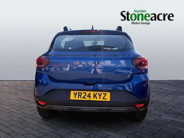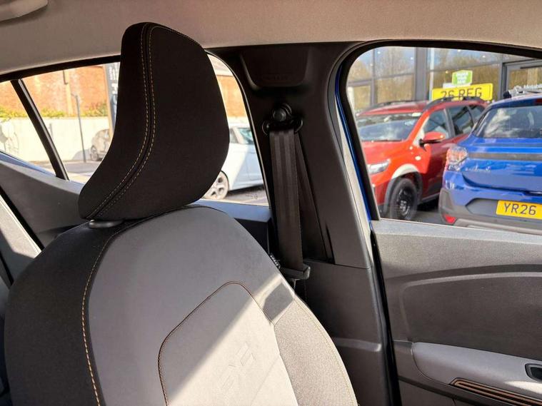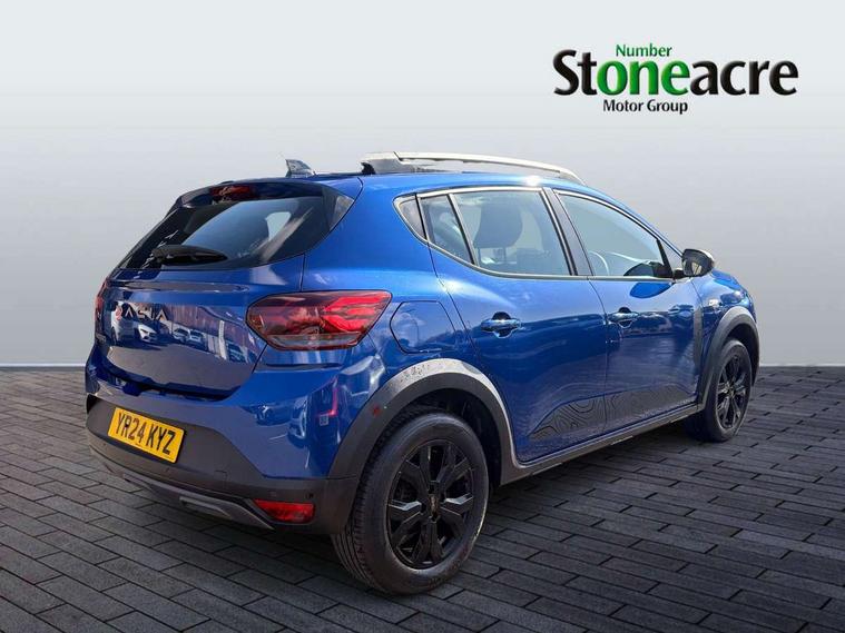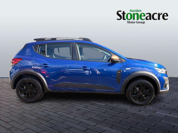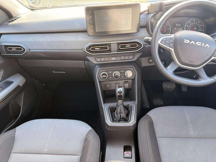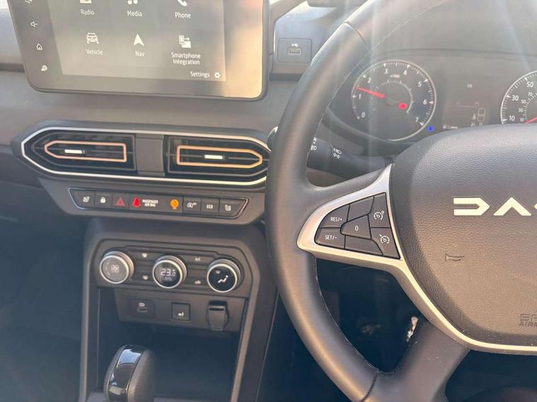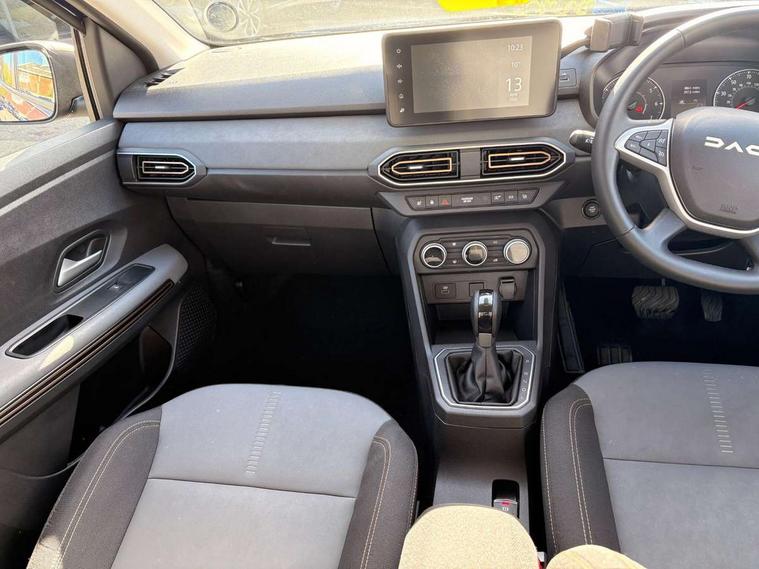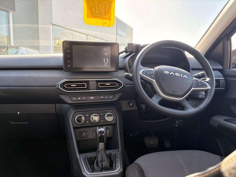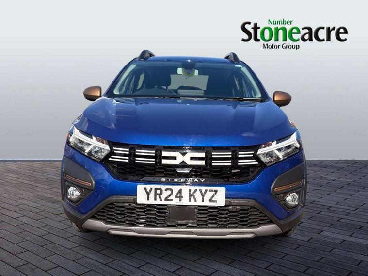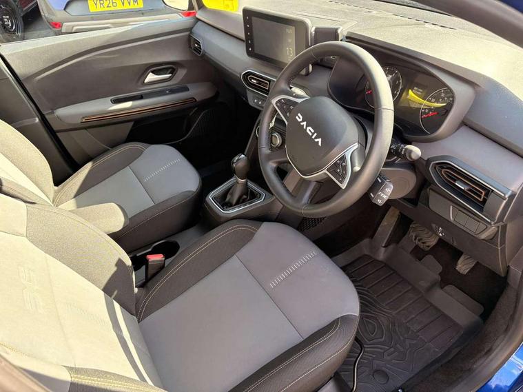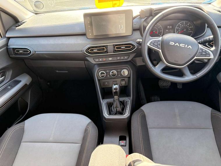 3.5" TFT instrument panel with on-board computer, Blind spot warning, Cruise control with speed limiter, eCall emergency call system, Eco mode, Electric power assisted steering, Extended grip switch, Front parking sensors, Rear parking sensors, Rev counter, Reversing camera, Stop/start system, 8" MediaNav with DAB Radio + Smartphone replication + Bluetooth + 6 Speakers with Apple Carplay and Android Auto, USB connection for data transfer and charging, USB socket, 3 speed windscreen wipers, Auto lighting, Automatic wipers, Black radiator grille with white inserts stepway inscription, Body colour door handles, Body coloured bumpers, Copper Brown Dacia inscription on tail gate, Copper brown deco part on fog lamp area, Copper brown door mirrors, Copper brown stepway inscription on roof bars, Door sills in topographic pattern, Drivers one touch electric windows, Electrically adjustable and heated door mirrors, Front electric windows, Front fog lights, Heated rear window, High level third brake light, Lateral sticker with topographic pattern, LED automatic daytime running lights, LED Y-shape Dacia signature lighting, Megatith modular roof bars, Rear electric windows, Rear side wing doors, Rear wash/wipe, Shiny black shark antenna, Snorkel sticker with topographic pattern, Tinted windows, 1/3 to 2/3 split folding rear seats, 12 volt front socket, 12 volt rear socket, 3 height adjustable rear headrests, 3 seat rear bench, Automatic air conditioning, Copper brown doors deco parts, Driver and passenger vanity mirror with cover, Fabric upholstery, Fixed smartphone holder on dashboard, Fog grey animation on air vents, Fog grey interior door handles, Front and rear rubber mats with topographic pattern, Height adjustable drivers seat with armrest, Height adjustable front headrests, Height/depth adjustable steering wheel, High central armrest with console storage, Isofix points for child seats in both outer rear seats, Micro-cloud grey fabric on dashboard, Single front passenger seat, Soft feel steering wheel, Steering wheel controls, 3x3 point rear seatbelts, ABS and Emergency brake assist, Automatic emergency braking system, Child locks on rear doors, Door open visual and audible warning, Driver airbag, EBD - Electronic brakeforce distribution, Electronic parking brake, ESC (Electronic Stability Control), ESP + Hill Start Assist, Front curtain airbags, Front seatbelt pretensioners, Front side airbags, Height adjustable front seatbelts, Passenger airbag, Seatbelt reminder for driver and front passenger, Tyre pressure monitor, Automatic central locking, Immobiliser, Keyless entry, Remote central locking, Decopart on instrument panel and door with textile, 16" Full Black Diamond-effect alloy wheel with Copper brown Dacia logo on wheel centre caps,