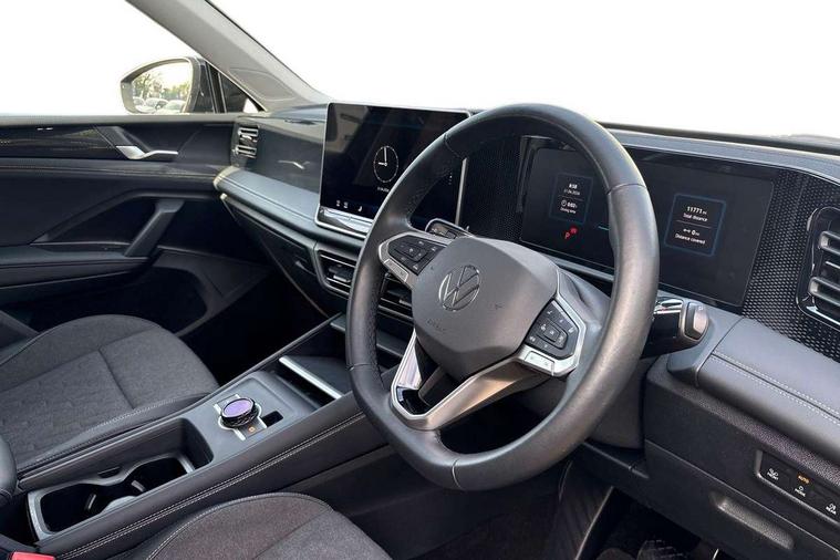 Adaptive cruise control (ACC), Advanced driver attention and drowsiness monitor, Bluetooth mobile phone interface, Car2X technology, Digital Cockpit Pro - 10.25" high resolution dash display screen with customisable menus and information, Dynamic road sign display, E-Sim card for online connectivity, eCall emergency call service, Front Assist - Autonomous emergency braking with pedestrian and cyclist monitoring, Lane change system, Side assist, Rear traffic alert and Exit warning system, Lane keeping system Lane Assist, Multifunction front facing camera, Oncoming vehicle braking when turning including swerve support, Park assistance plus with front and rear parking sensors, Power assisted steering with speed sensitive, Start/stop system with regenerative braking, Warning signal and warning light for front and rear seatbelts not fastened, Wireless App-Connect, Front wheel drive, Digital radio reception (DAB), Diversity antenna for FM reception, Ambient lighting with logo projection, Auto dimming interior rear view mirror, Automatic headlight control system, Body coloured bumpers and air intake with chrome trim, Body coloured door handles, Body-coloured exterior mirror housings, Coming/leaving home lighting function, Heat insulating glass in side and rear windows, Heat insulating windshield, Heated rear window, High level 3rd brake light, Illuminated door handle recesses, Illuminated lightline between headlamps, Rain sensor windscreen wipers, Rear fog light on one side, reversing light on both sides, Rear side wing doors, Rear wiper, 12V outlet in center console rear and in luggage compartment, 12V socket in centre console, 3 bench rear seats in 2nd row, Air care climatronic 3 zone air conditioning system with rear air conditioning control panel, Carpet mats, front and rear, Centre console with illuminated storage compartment with sliding cover and two drinks holders, Ceramique headlining, Door and side trim panel in foam film and woven fabric, Front centre armrest, ISOFIX anchors for child seats on outer rear seats and front passenger seat compatible with i-Size, Mechanical rear seat release, Power adjustable lumbar support in front, Rear bench seat, split folding, longitudinally movable and folding with load-through hatch and centre armrest, Safety optimised front head restraints, Single front passenger seat, Sun visors with illuminated vanity mirrors, Three rear head restraints, Variable luggage compartment floor, Comfort package with park assist plus and Safelock - Tiguan, Design package - Tiguan, 3 point seat belt for centre rear seats, 3 Point seat belts in front with pretensioners, 3 point seatbelts in outer rear with ECE label, Driver and front passenger airbag with front passenger airbag deactivation, Electronic parking brake with auto hold, Front and rear curtain airbags, Front and rear side airbags, Front centre airbag, Front disc brakes, Manual child proof rear door locks, Rear disc brakes, Two tone horn, Warning triangle, Anti theft wheel bolts, Soul instrument panel,