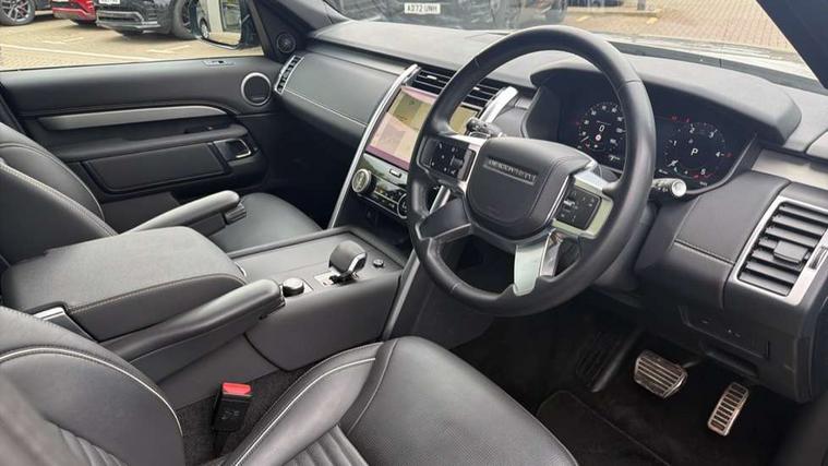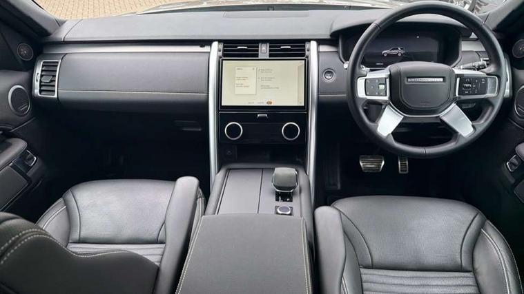 11.4" touchscreen, 3D surround camera, Adaptive cruise control, Android Auto, Apple car play, Blind spot assist, Driver condition monitor, Electric power assisted steering (EPAS), Emergency services call system, Front and rear parking aid, Lane keep assist, Power inner tailgate, Push button start, Rear collision monitor, Rear traffic monitor, Remote, Remote boot release, Service interval indicator, Speed proportional steering, Sportshift selector, Stop/start system, Traffic sign recognition with adaptive speed limiter, Trip computer, Wade Sensing, Adaptive dynamics, Dynamic stability control, Electronic air suspension, Front axle open differential, Digital Audio Broadcast radio-DAB, Dynamic volume control, Meridian surround sound system - 14 speaker + subwoofer, 18 channel amplifier, 700W, Pivi pro connected, USB/aux input socket, Acoustic laminated windscreen, Animated directional indicators, Auto dimming interior rear view mirror, Automatic headlight levelling, Automatic headlights, Body colour bumpers, Body colour door handles, Centre high mounted stop light, D300 badge, Electric heated/power fold memory door mirrors with approach lights and auto dimming driver side, Electric windows with one touch open/close and anti-trap, Heated rear window, Heated windscreen, LED darkend tail lights, Matrix LED headlights with signature DRL, Metal treadplates with R-Dynamic branding, Narvik black Discovery script, Privacy glass, Puddle lights, Rain sensing windscreen wipers, Rear fog lights, Rear side wing doors, Rear wash/wipe, Trailer stability assist, Variable intermittent wiper, 12V power sockets, 12V USB charging socket in loadspace, 2 seat bench in 3rd row, 3 seat bench in 2nd row, Central hinged twin lidded storage, Ebony morzine headlining, Electric adjustable steering column, First and second row door bins, Footwell lights, Front and rear 12V with front USB, Front passenger seat isofix location point, In-facia storage, Isofix child seat preparation for front passenger seat, Loadspace cover, Loadspace Hook, Loadspace light, Lockable glovebox, Lower centre console storage, Luggage tie downs in loadspace, Multi function steering wheel, Overhead lighting console, Premium cabin lighting, Premium carpet mats, Rear ISOFIX, Shopping bag hook, Single front passenger seat, Storage glovebox, Sunvisors with illuminated vanity mirrors, Third row storage, Twin front cupholders with cover, USB with 12V socket in centre console, Online pack with data plan - Discovery, R-Dynamic black exterior pack - Discovery, 3x3 point rear seatbelts, Anti-lock braking system (ABS), Brake pre-fill technology, Cornering brake control, Curtain airbags, Customer configurable autolock, Driver and passenger airbags, EBD - Electronic brakeforce distribution, Electronic traction control, Emergency brake assist, Emergency braking, ESP, Front side airbags, Gradient acceleration control, Hill descent control, Hill launch assist, Power operated child locks, Rear airbags, Roll stability control, Seat belt reminder, Torque vectoring brake, Tyre pressure monitoring system, Immobiliser, Intrusion sensor, Keyless entry, Locking wheel nuts, Remote central locking, All terrain tyres,