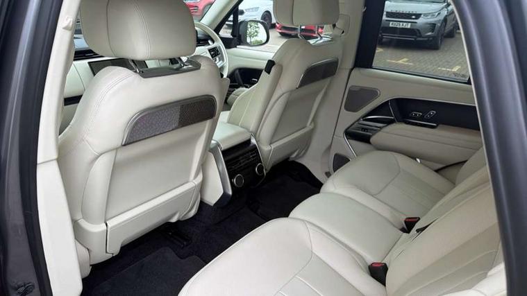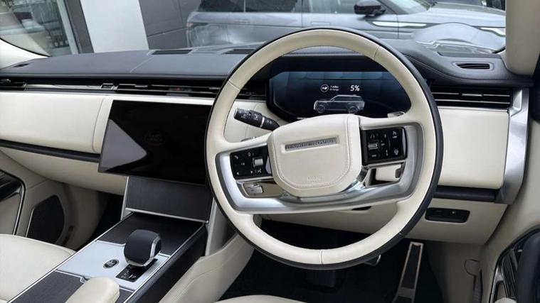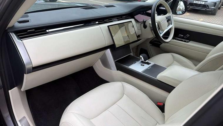 13.1" Touchscreen, 3D surround camera inc frwd traffic detection, vehicle clearance guidance, 3D view, clearsight ground view, manoevure light, 360 parking aid, wade sensing, All Terrain Info Centre, All wheel steering, Android Auto, Apple car play, Blind spot assist, Bluetooth connectivity streaming, Configurable programs, Driver condition response, Eco mode, Electric power assisted steering (EPAS), Emergency call service, Front and rear parking aid, Head up Display, Interactive driver display, Lane keep assist, Rear collision monitor, Rear traffic monitor, Remote, Traffic sign recognition with adaptive speed limiter, Wi-Fi Enabled with data plan, Wireless device charging with phone signal booster, 7 kW onboard charger, 8 speed automatic transmission, Active damper technology system, Adaptive dynamics, Adaptive off-road cruise control, All Wheel Drive (AWD), Automatic access height, Electronic active differential with torque vectoring by braking, Home charging cable 5m Mode 2 including plugs, Public charging cable 5m Mode 2 including plugs, Terrain Response 2 Auto, Twin speed transfer box, Digital Audio Broadcast radio-DAB, Pivi pro including smart settings, Connected navigation pro, nuance speech, USB socket, Acoustic laminated windscreen, Animated directional indicators, Automatic headlights, Automatic levelling headlights, Centre high mounted stop light, ClearSight interior rear view mirror, Electric windows with one touch open/close and anti trap, Engine cover, Flush deployable exterior door handles, Front and rear recovery eyes, Front fog lights, Headlamp power wash, Heated rear window, Heated washer jets, Illuminated metal treadplates with Autobiography script, Laminated front and rear side glass, LED tail lights, Power fold, auto-dimming, heated door mirrors with approach lights, Rain sensing windscreen wipers, Rear boot, Rear fog lights, Rear side wing doors, Side repeater indicators in mirror, Solar attenuating windscreen, Trailer stability assist, Winter wiper park position, 12V power sockets, 3 seat bench in 2nd row, Air quality sensor, Auto folding loadspace cover, Bright metal pedals, Cabin air purification pro, Cabin lighting, Customer configurable single point entry, Driver and passenger front seat armrests, Easy boot loading, Ebony Carpet, Electric rear side window sunblinds, Front and rear cupholders, Front and rear grab handles, Front head restraints, Gearshift paddles, Heated steering wheel, Hook in load space, Loadspace light, Luggage tie down in loadspace, Multifunction steering wheel, Rear centre armrest, Rear head restraints, Rear ISOFIX, Single front passenger seat, SV bespoke carpet mats, Twin blade sunvisors with Illuminated vanity mirrors, Upper and lower glovebox, Versatile loadspace floor in tailgate, Online pack with data plan - Range Rover, 3x3 point rear seat belts, Anti-lock braking system (ABS), Black brake calipers, Brake hold function, Cornering brake control (CBC), Customer configurable autolock, DSC - Dynamic Stability Control, Electronic brake force distribution, Electronic parking brake, Electronic traction control, Emergency brake assist, Emergency braking, Front airbags with passenger seat occupant detector, Front side airbags, Hill descent control, Hill launch assist, Illuminated seat belt buckles, Low traction launch, Occupant protection assist, Power operated child locks, Roll stability control, Tyre pressure monitoring system (TPMS), Immobiliser, Intrusion sensor and alarm, Keyless entry, Locking wheel nuts, Remote central locking, Noble chrome controls,