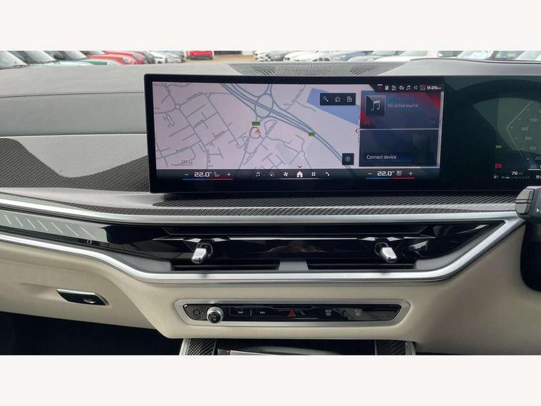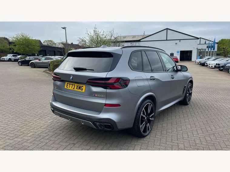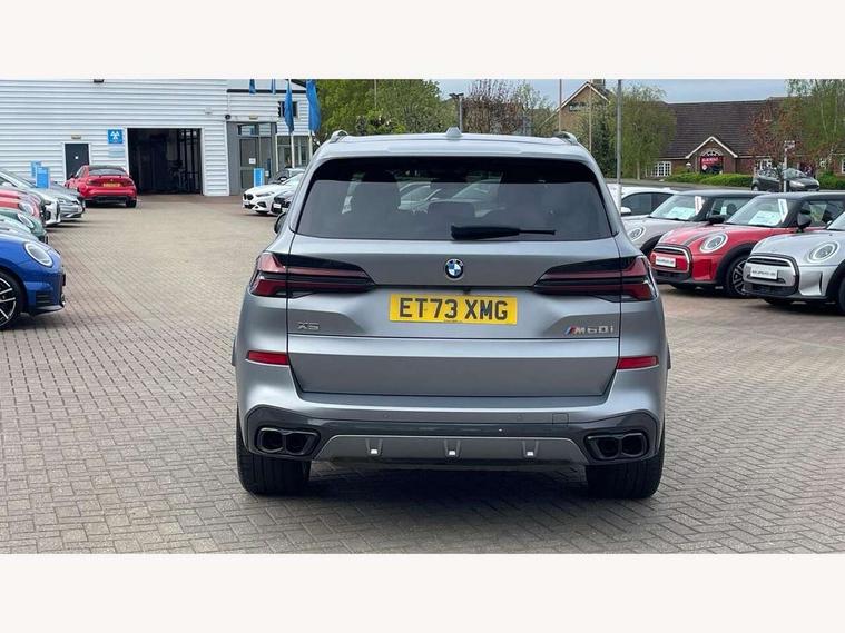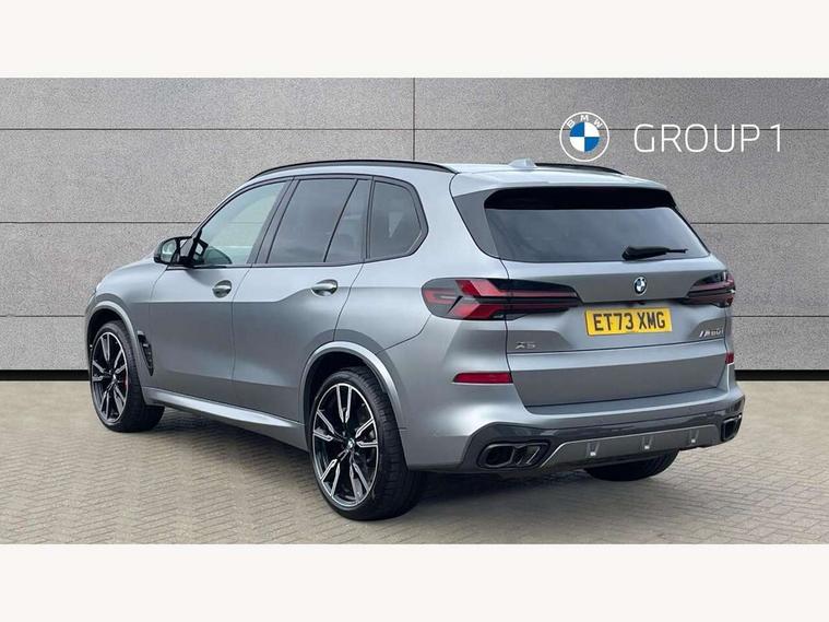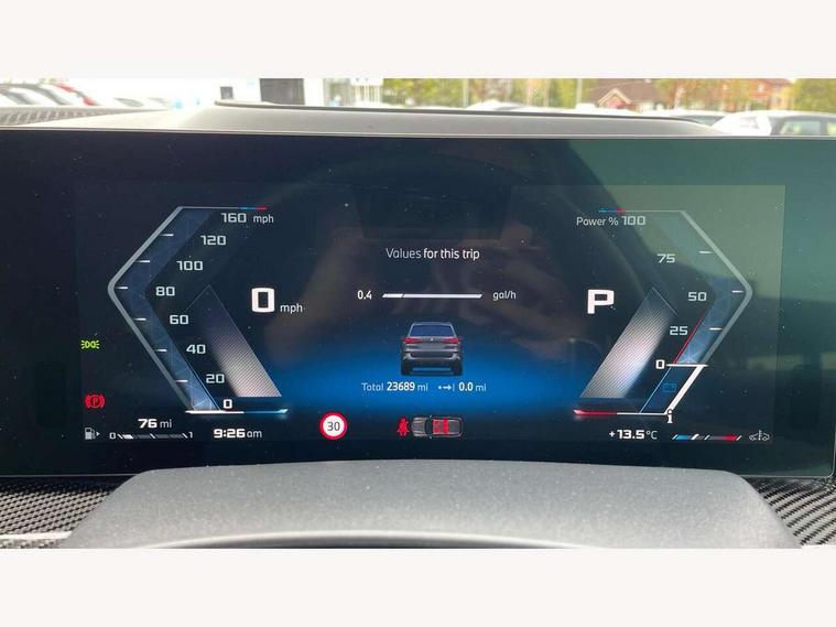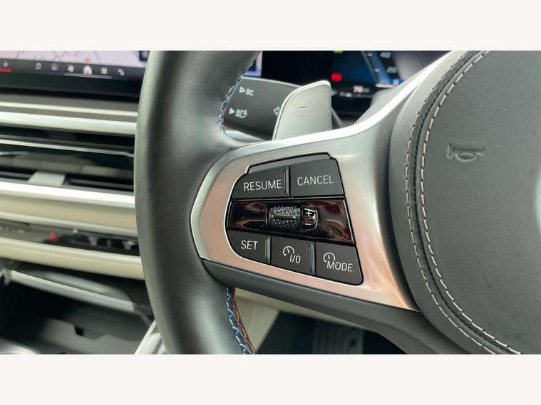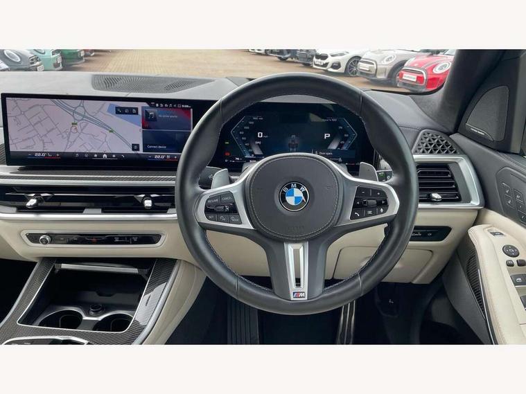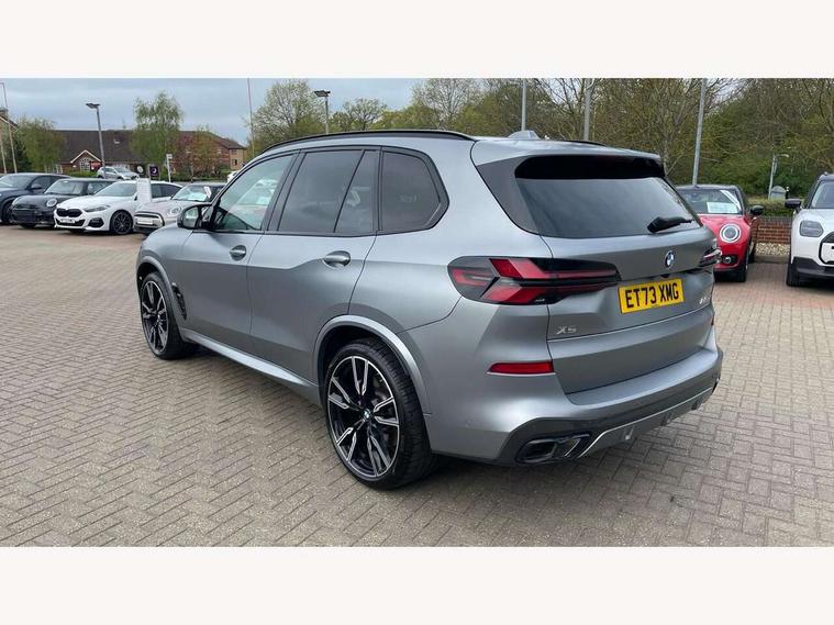 Attentiveness assist, Automatic tailgate operation, BMW ConnectedDrive online services, BMW live cockpit + with curved 12.3 instrument cluster/14.9 central display, nav/Tuner with diversity reception, RDS/4GLTE/remote software upgrade, BMW Recovery system, BMW Teleservices, Condition based service, Cruise control with brake assist, eCall emergency call system, Enhanced bluetooth with wireless charging, Integral active steering, Integrated owner's handbook, Speed limiter, Wi-Fi hotspot, Drive performance control with ECO PRO comfort + sport mode, Eight speed steptronic sport automatic transmission and gearshift paddles on the steering wheel, M Sport differential, Personal eSim, Adaptive LED Headlights, BMW Individual high gloss shadow line with extended contents, BMW individual lights shadow line, Front and rear electric windows, High beam assistant, High gloss black shadow line roof rails, LED daytime running lights, M Sport exhaust system, Rain sensor, Rear side wing doors, Sun protection glass, Third brake light in rear spoiler, Variable intermittent rear wash/wipe, 12V - Power sockets with 2x centre console and 1x luggage compartment, 3 seat bench in 2nd row, Foldable rear centre armrest with 2 cupholders and storage compartment, Front and rear side armrest integrated into door trim, Headrests for all seats, Luggage compartment separating net, Single front passenger seat, Three spoke sport M leather steering wheel, Velour floormats, Ambient light interior pack - X5, Driving assistant pack with radar based driver assistance system - X5, Expanded exterior mirror pack - X5/X5 M, M aerodynamics pack - X5, 3 rear seatbelts, Active protection, Airbags - driver/front passenger, rear and side, first and second row seats head airbags, front passenger seat airbag deactivation + knee airbag, Anti-lock braking system (ABS), Automatic Stability Control (ASC), Brake energy regeneration, Cornering brake control (CBC), Crash sensor activating central locking release, hazard warning lights, fuel cut off, interior lighting + activation of safety battery terminal clamp, DSC - Dynamic Stability Control, Dynamic Traction Control - DTC, Electromechanical parking brake with automatic drive away release and auto hold function, Electronic brake force distribution, Hill start assistant, M sport seatbelt, Mechanical child proof lock on rear doors, Tyre pressure monitoring system, Tyre pressure sensors, Ventilated front and rear disc brakes, Warning triangle and first aid kit, Alarm system, Closing system with central locking, Comfort access system, Locking wheel bolts, Run flat tyres,
