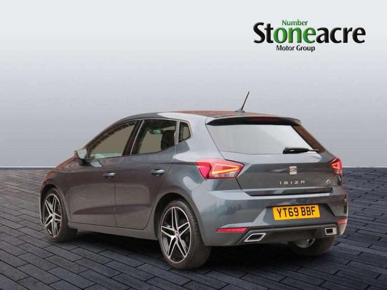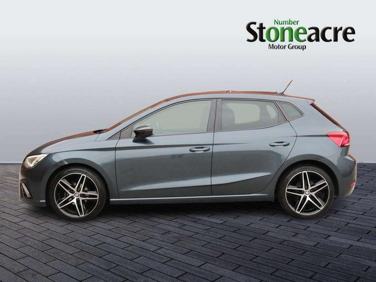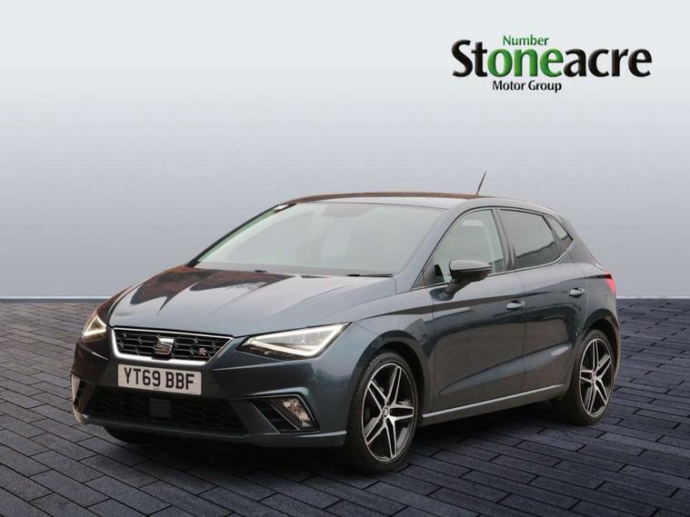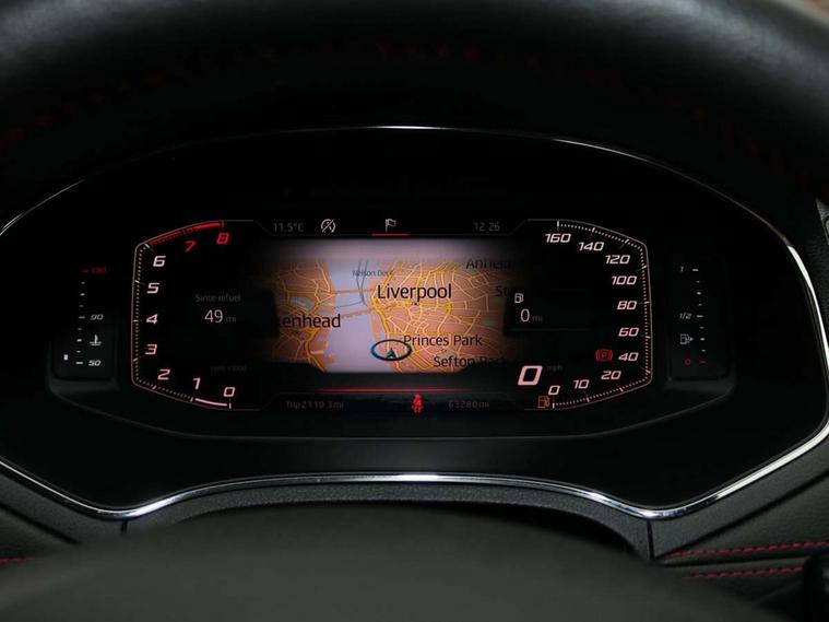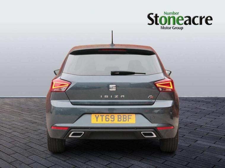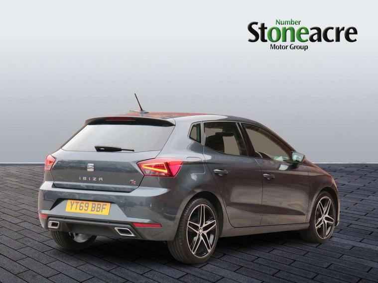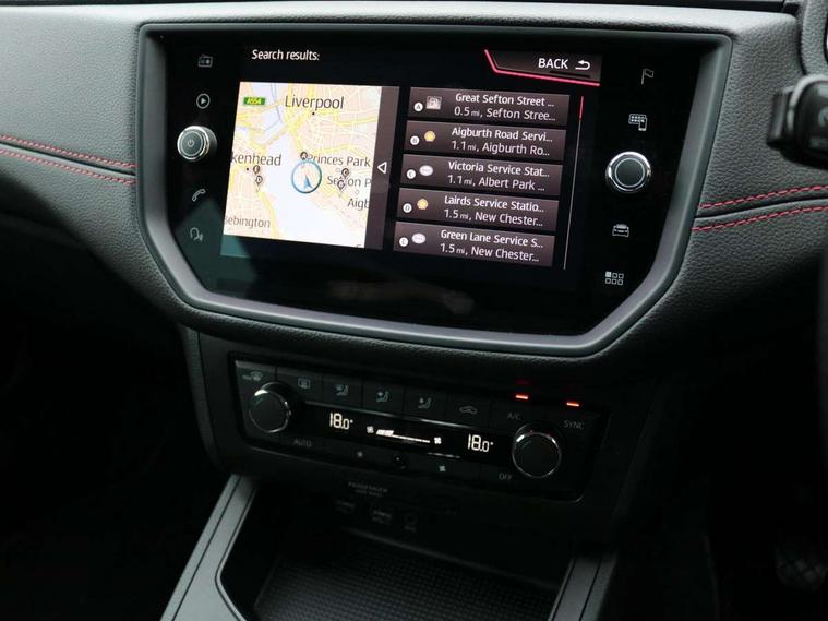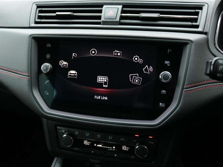 'Lights On' Reminder warning buzzer, Bluetooth Handsfree Phone Connection, Cruise control, Digital clock, Digital cockpit, Full Link Smartphone Integration with Mirror Link, Apple Car Play, Google Android Auto, Low fuel warning light, Outside temperature gauge, Power Steering, Satellite navigation system with 3D mapping, 8" touch screen, voice control and additional USB port, SEAT Drive profile, SEAT logo boot release, Trip computer, Sports suspension, 6 speakers, Auxiliary input socket, CD player, Digital Audio Broadcast (DAB) Tuner, Radio/MP3 player, SD card slot, SEAT USB media cable, Steering wheel mounted controls, USB port, Anti theft roof antenna, Auto dimming rear view mirror, Automatic headlights, Automatic rain sensing wipers, Body colour bumpers, Body colour door handles, Brilliant black door mirrors, Chrome front grille frame, Chrome grille, Coming/leaving home lighting function, Cornering front fog lights, Dark tinted rear windows, Electric folding door mirrors, Electric front windows, Electric headlight adjustment, Electrically adjustable and heated door mirrors, Exclusive FR rear bumper, Full LED headlights, LED daytime running lights, LED tail lights, Rear fog lights, Twin exhaust pipes, 3 rear headrests, 60/40 split folding rear seat, Door and steering wheel ice metal decorative inserts, Driver's sunvisor with ticket holder/vanity mirror, Dual zone climate control, Dust/pollen filter, Flat bottomed perforated leather steering wheel with red stitching and FR logo, Front courtesy lights, Front cupholders x 2, Front reading lights, Gear shift indicator, Glovebox, Height adjustable driver's seat, Height adjustable front/rear head restraints, Height adjustable passenger seat, Height/reach adjust steering wheel, Illuminated boot, Instrument lighting with brightness control, Leather dashboard, Leather handbrake, Microsuede cloth upholstery, Multi-colour ambient interior lighting, Passenger sunvisor, Rear top tether child seat ISOFIX attachment, Sports seats, Full LED headlight pack - Ibiza, 3 point seatbelts on all 3 rear seats, ABS, Active front headrests, Child locks on rear doors, Curtain airbags, Driver/Front Passenger airbags, ESP+EBA, Front assist (AEB), Front passenger airbag deactivation, Front side airbags, Hill hold control, Multi-Collision braking, Seatbelt warning, Tiredness recognition system, Tyre pressure monitoring system, Electronic engine immobiliser, Locking wheel bolts, Remote central locking + deadlocks, Volumetric alarm with back up horn, 18" Performance machined bi-colour alloy wheels,