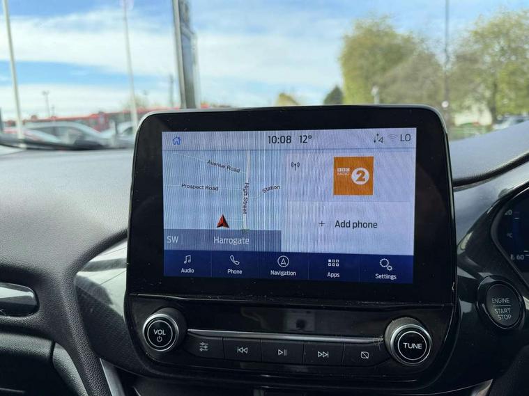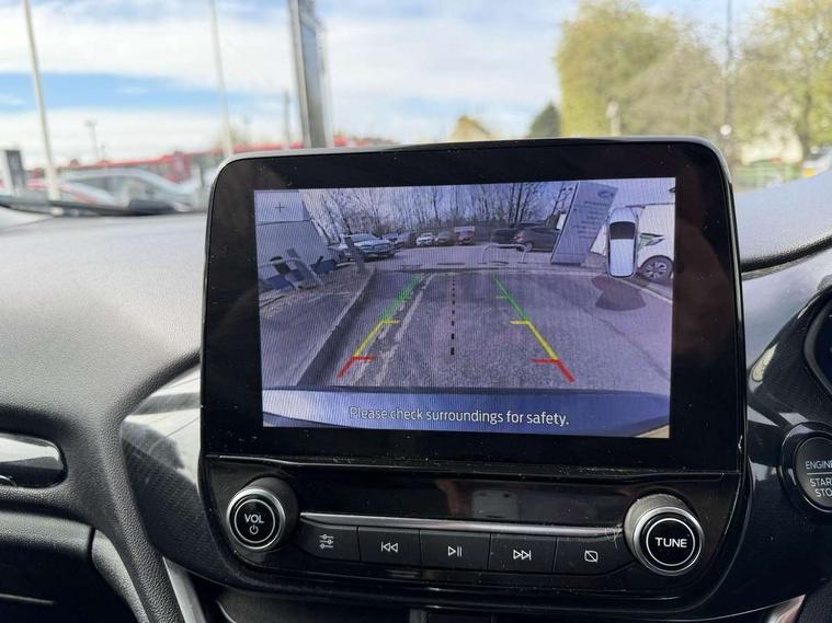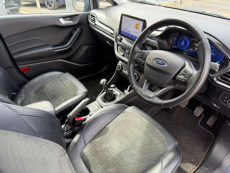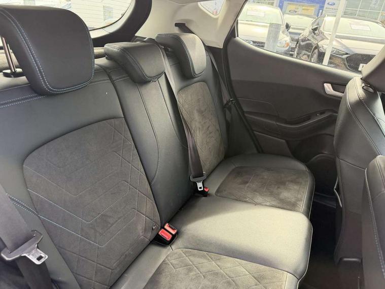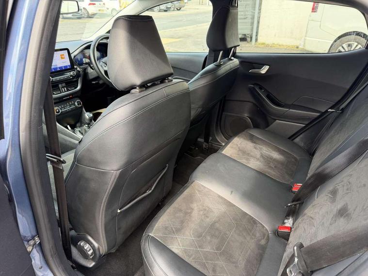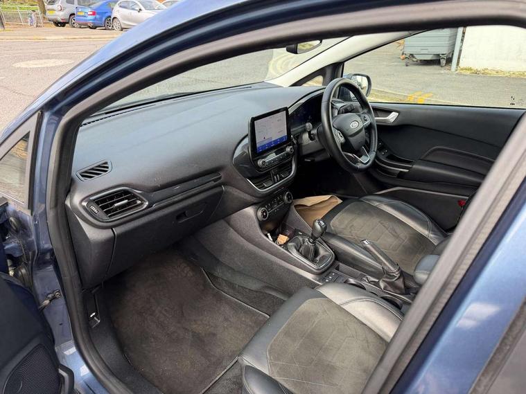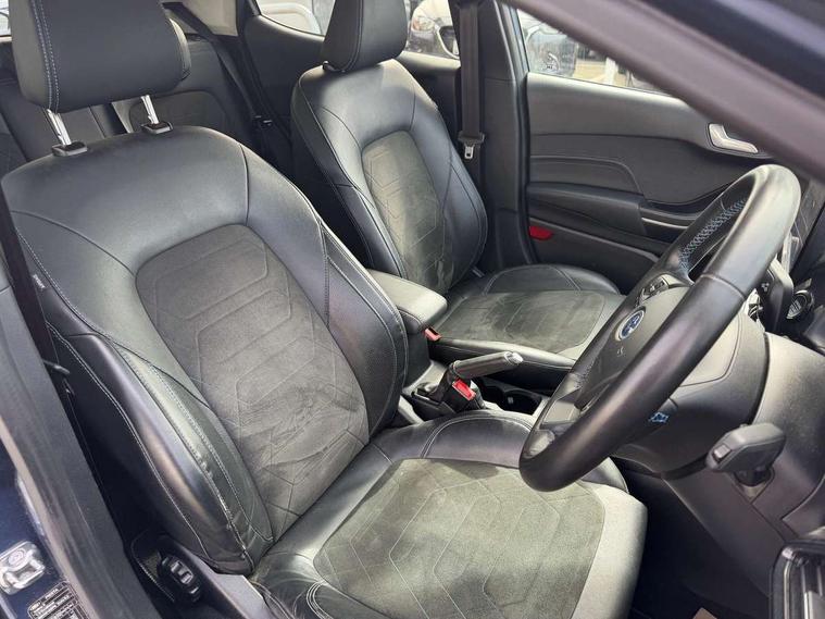 4.2" TFT instrument cluster screen, Bluetooth system, Electric power steering, Extra selectable drive modes ( Trail, Slippery), Ford easy fuel, Rear parking distance sensors, Selectable drive modes (Normal, Sport, Track), Traffic sign recognition, Trip computer, Rough road suspension with increased ride height adjust, 2 USB ports, Auxiliary input socket, B&O Premium audio system with 8" touchscreen, 10 speakers, 360 degree sound system, Ford SYNC 3 navigation system and Ford pass connect, DAB Digital radio, Steering wheel mounted controls, Auto high beam, Body colour bumpers, Body colour door handles, Body colour rear spoiler, Chrome beltline trim, Cornering front fog lights, Electric front windows/one touch facility, Electric rear windows, LED Night signature to rear lights, Mesh design front grille with chrome surround, Power foldable door mirrors with puddle lights, Quickclear heated windscreen, Rain sensing wipers and auto dimming rear view mirror, Rear privacy glass, Rear wiper, Rugged body styling kit with active front wing badges, 3 spoke leather trimmed steering wheel with audio control, 60/40 split folding rear seat, Adjustable head restraints, Boot carpet, Centre console with opening armrest, 2x cupholders, 12v and USB, Chrome inner door handles, Drivers and Passenger lumbar support, EATC - Electronic Auto Temperature control, Footwell illumination, Front floor mats in velour, Front map reading lights, Front seat and rear pockets, Height adjustable passenger seat, Illuminated glovebox, Leather gaiter, LED ambient lighting, Load area light, Manual 4-way driver seat adjust, Overhead console with sunglasses holder, Pollen filter, Rake/reach adjustable steering wheel, Sensico partial premium upholstery, Sensico wrapped steering wheel, NCAP Pack - Fiesta, 3 point seatbelts on all rear seats, ABS+EBA, Curtain airbags, Driver and passenger airbags, Drivers knee airbag, Electronic stability control with hill start assist, Front passenger airbag deactivation, Front side airbags, Seatbelt warning, Two tone horn, Tyre pressure monitoring system, Ford keyfree system with Keyless entry and keyless start, MyKey system, Remote central locking & engine immobiliser, Thatcham Cat.1 alarm, 18" 5 spoke alloy wheels with shadow black machined finish,