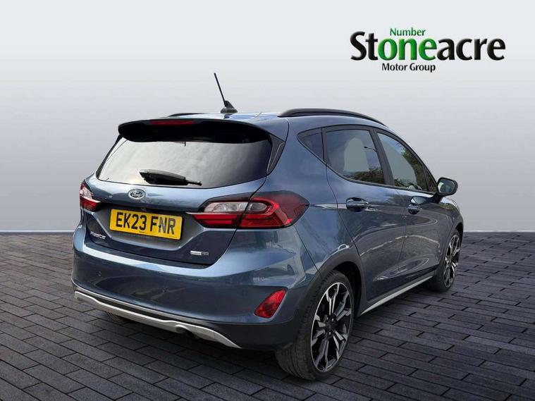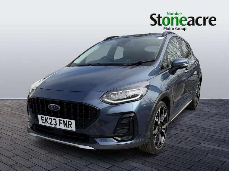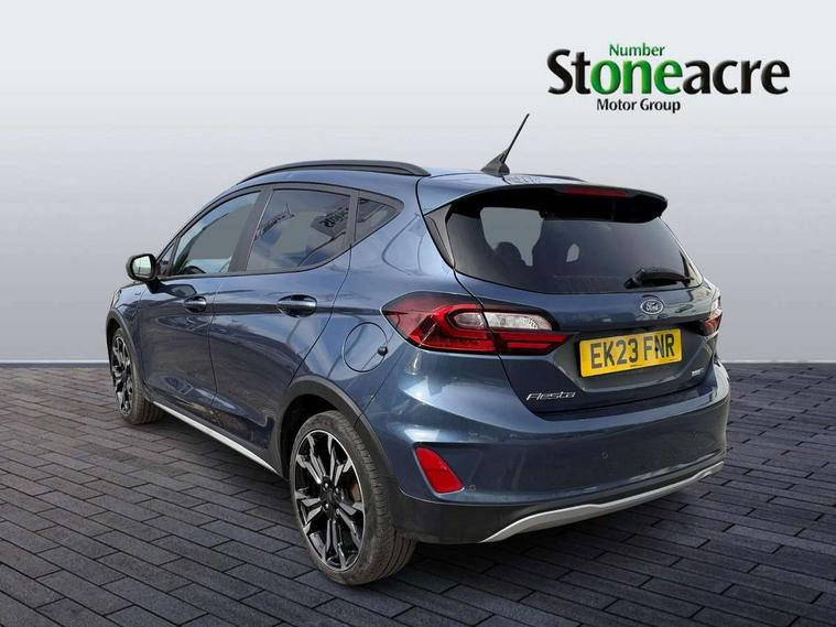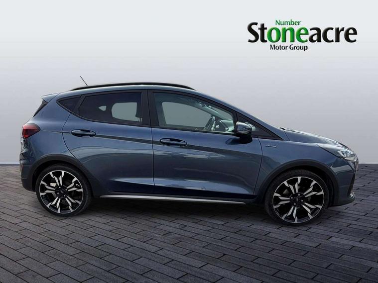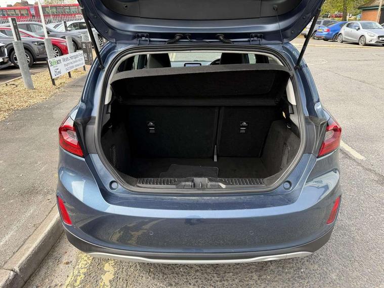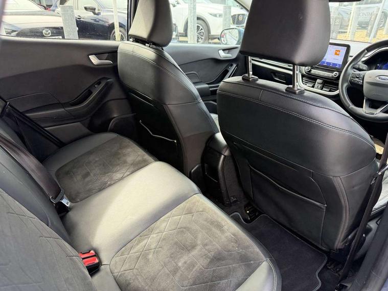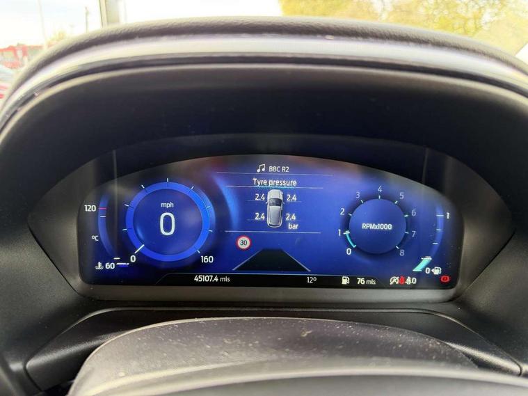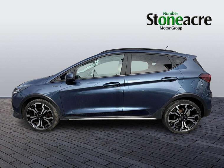 4.2" TFT instrument cluster screen, Bluetooth system, Electric power steering, Extra selectable drive modes ( Trail, Slippery), Ford easy fuel, Rear parking distance sensors, Selectable drive modes (Normal, Sport, Track), Traffic sign recognition, Trip computer, Rough road suspension with increased ride height adjust, 2 USB ports, Auxiliary input socket, B&O Premium audio system with 8" touchscreen, 10 speakers, 360 degree sound system, Ford SYNC 3 navigation system and Ford pass connect, DAB Digital radio, Steering wheel mounted controls, Auto high beam, Body colour bumpers, Body colour door handles, Body colour rear spoiler, Chrome beltline trim, Cornering front fog lights, Electric front windows/one touch facility, Electric rear windows, LED Night signature to rear lights, Mesh design front grille with chrome surround, Power foldable door mirrors with puddle lights, Quickclear heated windscreen, Rain sensing wipers and auto dimming rear view mirror, Rear privacy glass, Rear wiper, Rugged body styling kit with active front wing badges, 3 spoke leather trimmed steering wheel with audio control, 60/40 split folding rear seat, Adjustable head restraints, Boot carpet, Centre console with opening armrest, 2x cupholders, 12v and USB, Chrome inner door handles, Drivers and Passenger lumbar support, EATC - Electronic Auto Temperature control, Footwell illumination, Front floor mats in velour, Front map reading lights, Front seat and rear pockets, Height adjustable passenger seat, Illuminated glovebox, Leather gaiter, LED ambient lighting, Load area light, Manual 4-way driver seat adjust, Overhead console with sunglasses holder, Pollen filter, Rake/reach adjustable steering wheel, Sensico partial premium upholstery, Sensico wrapped steering wheel, NCAP Pack - Fiesta, 3 point seatbelts on all rear seats, ABS+EBA, Curtain airbags, Driver and passenger airbags, Drivers knee airbag, Electronic stability control with hill start assist, Front passenger airbag deactivation, Front side airbags, Seatbelt warning, Two tone horn, Tyre pressure monitoring system, Ford keyfree system with Keyless entry and keyless start, MyKey system, Remote central locking & engine immobiliser, Thatcham Cat.1 alarm, 18" 5 spoke alloy wheels with shadow black machined finish,