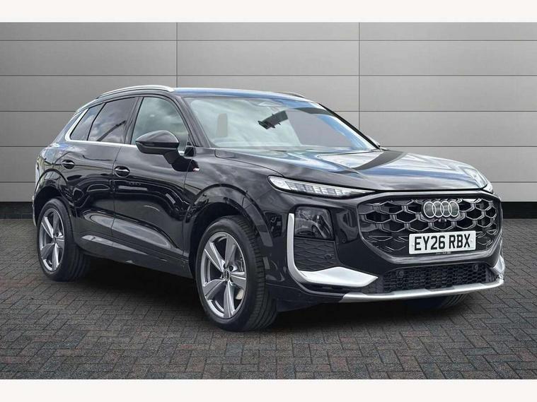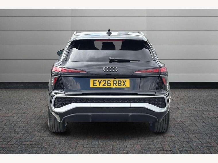 Adaptive cruise control, Audi connect emergency call and service, Audi connect remote and controls, Audi drive select (Balanced/Individual, effeciency, comfort and dynamic), Audi virtual cockpit plus - 11.9" display, Bluetooth interface, Camera based traffic sign recognition, Driver attention and fatigue monitor with driver monitoring, Front cross traffic assist, Lane departure warning with emergency assist, Panoramic curved display with 12.8" MMI navigation plus and MMI touch, Park assist plus with parking system and 360 display, Phonebox light with wireless charging, Reversing camera, Smartphone interface includes wireless Apple carplay/Android Auto, Start/stop system, Swerve assist and turn assist, Traffic sign based speed limiter, Voice control system with natural language interaction, Comfort suspension, Petrol Particulate Filter, 2 USB-C ports with charge and data functions, Audi sound system with 10 loudspeakers, subwoofer, 8 channel amplifier with 260 watts, DAB digital radio module, Acoustic glass for front door windows, Acoustic windscreen, Aluminium roof rails, Aluminium window trim, Audi Q3 lettering on the B-pillars, Auto dimming door mirrors, Auto dimming rear view mirror, Body colour door mirrors, Contrasting finish in volcano grey, Electrically folding, adjustable and heated door mirrors with integrated LED side indicators and kerb view function for passenger side, Full paint finish, Illuminated door sills with aluminium inserts at the front with S logo, LED daytime running lights, LED headlights plus with LED rear lights pro with continous light strip, illuminated Audi rings, rear, LED third brake light, Loading sill protector in stainless steel, Main beam assist, Privacy glass - dark tinted rear window, rear door and side windows, Projection light in the exterior mirrors - Projects a graphic element onto the ground, Q3 badging on the rear, Rain and light sensors, Rear side wing doors, Rear window, rear door windows and rear side windows in clear glass, Rear wiper, Sports bumpers, 3 seat bench in 2nd row, 3 spoke flat top and bottomed leather multi function sport steering wheel with gear shift paddles and "S" badging, 3-zone deluxe automatic air conditioning, 4 way lumbar support for the front seats - electric with horizontal and vertical adjustment in four directions, Black cloth headlining, Front and rear floor mats, Front and rear headrests, Front centre armrest, Heated front seats, Height and reach adjustable steering wheel, Interior storage compartment, Leather/artificial leather upholstery combination with S emblem + front sports seats, Luggage compartment lid, electrically opening and closing, Manual front seats with height adjustment, Rear seat bench plus with split folded 40:20:40, Single front passenger seat, Stainless steel pedals, Steering wheel operating unit, gloss black, Storage compartment in front centre console, Ambient lighting package pro - Q3, S line exterior styling pack - Q3, 3x3 point rear seatbelts, Convenience key with safelock, Driver and front passenger airbag with passenger airbag deactivation, Electromechanical parking brake, Electronic stabilisation control including ABS, ASR and EDL, First aid kit with warning triangle and high visibility vests, Front emergency brake assist, Hill hold assist, i - Size child seat mounting on the front passenger side and i - Size and top tether on the outer rear seats, Power operated child locks, Seatbelt monitoring, Three point automatic belts with belt tensioner and height adjustment, Tyre pressure loss indicator, Anti theft wheel bolts, Remote central locking, Thatcham approved category 1 anti theft alarm, Dark aluminium divergence inlay, Interior elements in dinamica microfibre, Interior trims in aluminium look, Tool kit and Jack,