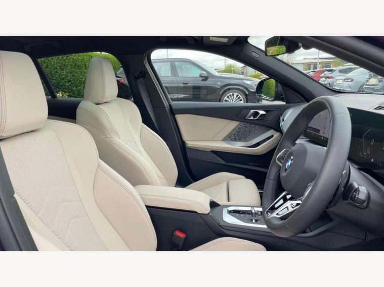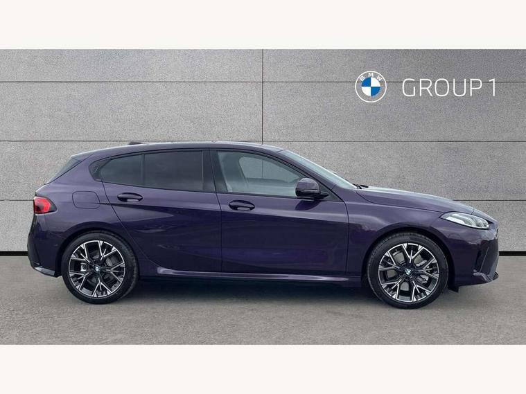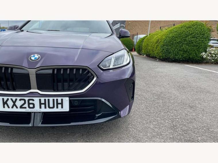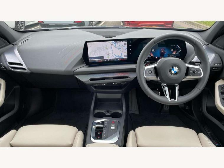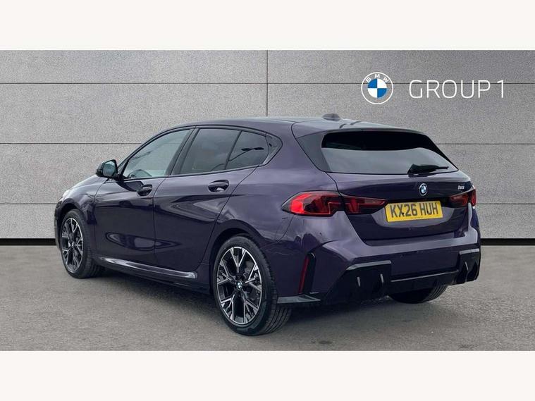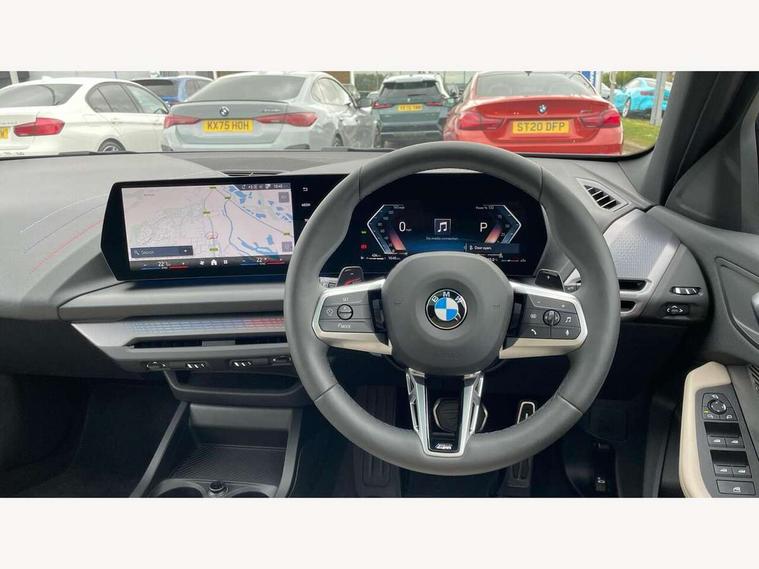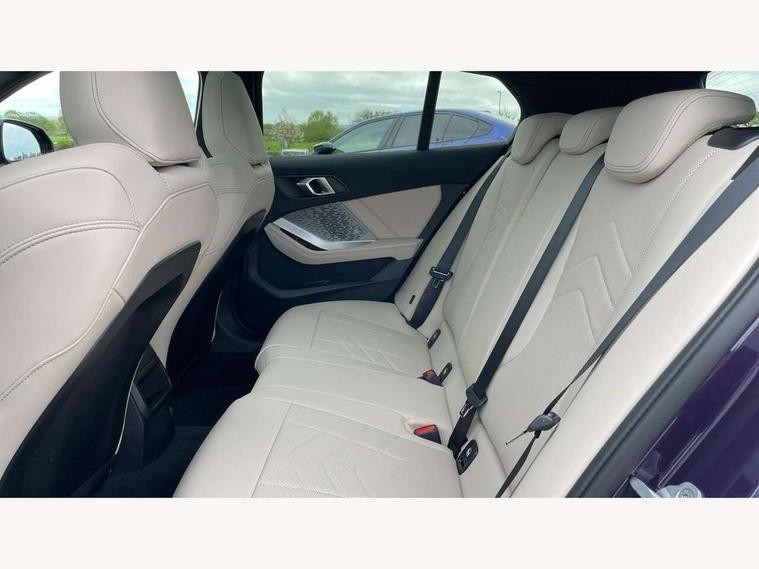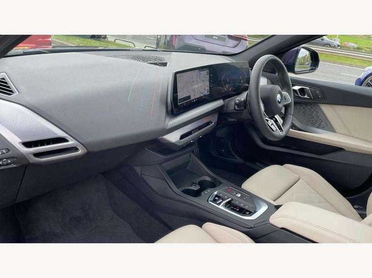 Active guard plus, Attentiveness assist, Bluetooth / WiFi interface for wireless connection of mobile terminal devices and audio streaming, BMW ConnectedDrive online services, BMW Live cockpit plus, BMW Teleservices, Check Control warning system for monitoring of lights and door/luggage compartment open warning, Eco pro mode, Electric power steering with Servotronic steering optimised at all speed ranges, Evasion assistant, Flat airvents in instrument panel with adjustable slats, Front and rear parking sensors, Front axle single joint with specific axle kinematics to minimise drive influences on steering + provide increased rigidity agile driving behaviour, Gearshift time display in manual mode, Integrated owners handbook, Left turn warning with brake function, My modes (Personal / Efficient / Sport), Oil sensor for level and grade, On board computer, Optimum shift indicator, Park assist including reversing assistant, lateral parking aid and reversing assist camera, Personal e-SIM, Personal Profile, Pull away assistant, Rigidly mounted rear subframe - Multi link construction with separate spring / damper configuration and excellent driving characteristics, Speed limit Info including no-overtaking indicator, Speed limiter, 49 litre fuel tank, Aluminium lightweight construction, Anti roll bar front and rear, Balancer shaft, Double VANOS twin scroll turbocharging system, Drive Performance Control, Electronic differential lock, Electronic selector lever, High precision injection, M Adaptive suspension, Petrol Particulate Filter, Steptronic transmission with double clutch, Twin tube gas filled shock absorbers with degressive characteristic curve, VALVETRONIC engine management, DAB Digital radio, Auto dimming rear view mirror, Automatic windscreen wipers and automatic headlight, Body colour door handles, Body colour roof trims, Chrome 'M' logo side designation, Chrome exhaust twin tailpipes round 90mm in left, Chrome kidney grille frame with Satin Aluminium struts, Direction indicator side lights in exterior mirrors, Electrically adjustable exterior mirror with mirror adjustment switch on drivers armrest and aspheric on driver side, convex on passenger side, Exterior M sport design elements, Fading support, Folding side mirrors with auto dimming/folding wing mirrors with auto dimming, Follow me home headlights, Front and rear bumper system with replaceable deformation elements, Front and rear electric windows with open and close fingertip control, anti trap facility and comfort closing, Front bumper panel with M specific design in vehicle colour with inserts in black high gloss, Front door sill finishers in black plastic with M designation in metallic look, Green tinted heat protection glazing, Heated rear window, High gloss black exterior mirrors, High gloss shadowline window frame, Recess cover mirror frames and B/C pillar embelisher trim, High level third brake light, Integrated front windscreen with washer jets, LED daytime running lights, LED eyebrow turn indicators, LED front fog lights, LED Headlights, Lightweight engineering, Matt black air guide grilles, Matt black wheel arch trim, Model badge on tailgate right, Nearside reverse light in rear light cluster, Preparation for high beam assistant, Rain sensor, Rear bumper panel with M-specific design in vehicle colour with inserts in black high gloss, Rear fog lights, Rear side wing doors, Rear window wiper, Shark fin antenna, Side sill covers with M specific design in body colour, Trailer stabilisation logic, Visible VIN plate, Welcome lighting, 12V power socket in front centre console with blanking plug, 3 rear seat head restraints, 3 seat bench in 2nd row, 3 spoke sports leather steering wheel with black leather and stitching, pearl chrome decorative finish, specific M Badge, Anthracite front and rear floor mats, Anthracite headlining, Black boot net with lashing eyes, Cargo function on 2nd seat row, Child seat ISOFIX attachment for two outer rear seats and front passenger seat with anchorage points, Conditioned based service, Driver and front passenger backrest net on rear, Driver and front passenger seat heating, Driver side folding compartment in instrument panel, Dual zone automatic air conditioning with extended contents, Folding rear clothes hook, Footrest and pedals in black plastic, Four grab handles integrated in roof lining, Front and rear door pockets with bottle holders, Front and rear side armrest integrated into door trim, Front armrest with storage compartment, Gearshift paddles on steering wheel, Glove compartment, Height adjustable front head restraints, Luggage compartment for bag hooks on left and right, foldable luggage compartment liner and four lashing eyelets, Manual adjust steering wheel, Multi-function controls for steering wheel, Rear seat backrest with manual 60:40 split folding with 3 top tether clips integrated on rear of seat panels, Single front passenger seat, Storage compartment in centre console, Storage compartment in luggage compartment, Stowage of the parcel shelf in luggage compartment trim, Sun visors with vanity mirrors and insert tab, Two front centre console cupholders, Type C two USB ports in rear centre console, Upper retaining strap integrated into backrest rear panels, Connected pack professional - 1 Series, Interior lights pack - 1 Series, M Sport exterior styling aerodynamics pack - 1 Series, 2 tone horn, 3 point seatbelts on all seats, front pyrotechnic belt tensioners, stopper and belt force limiters, rear coded belt buckles, Airbags - Front driver/passenger, front and rear curtain head protection, front side, manual deactivation of front passenger airbag, Anti lock braking system (ABS) with brake assist, BMW emergency call, Brake drying, Braking readiness, Child proof locking system in rear door, Comfort modes, Cornering brake control, Crash sensor activating of airbags, Unlocking doors, hazard warning lights, interior light, safety battery terminal, Driver and front passenger seat bel