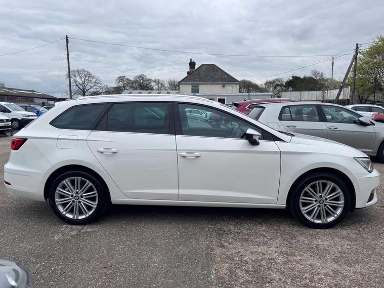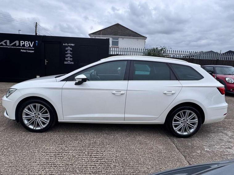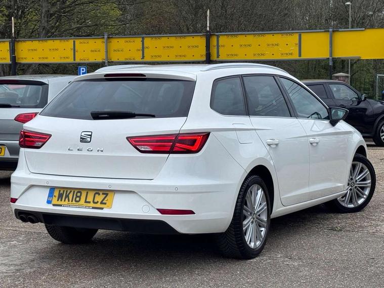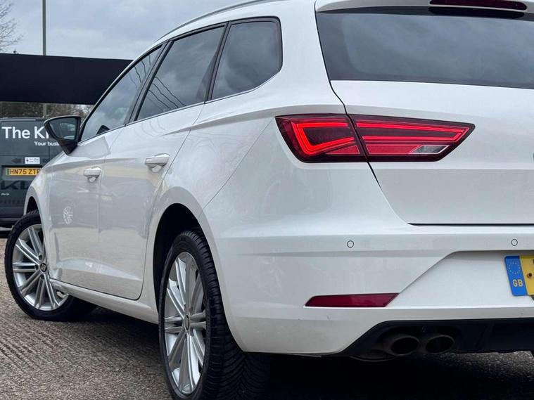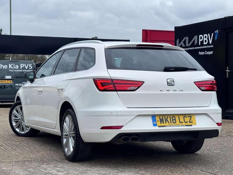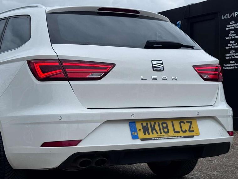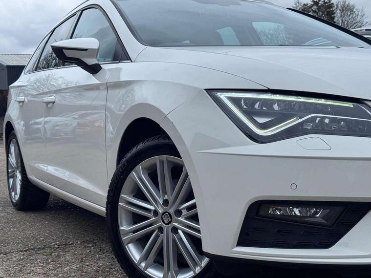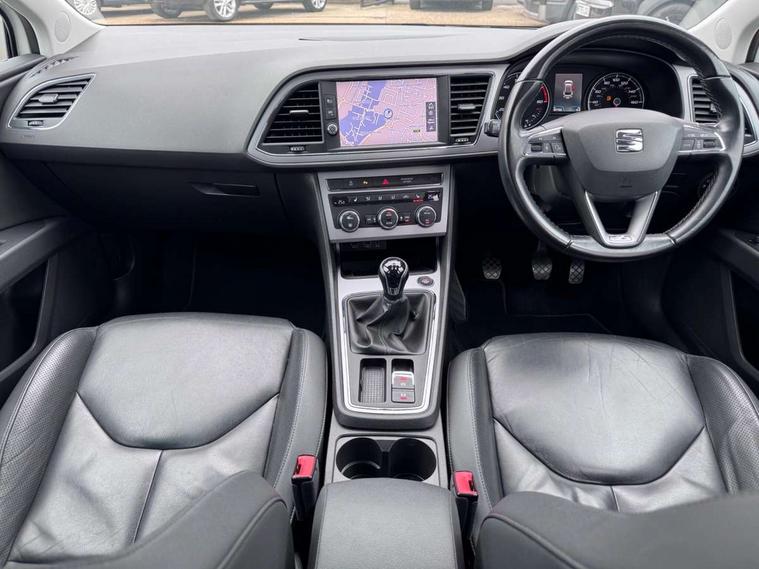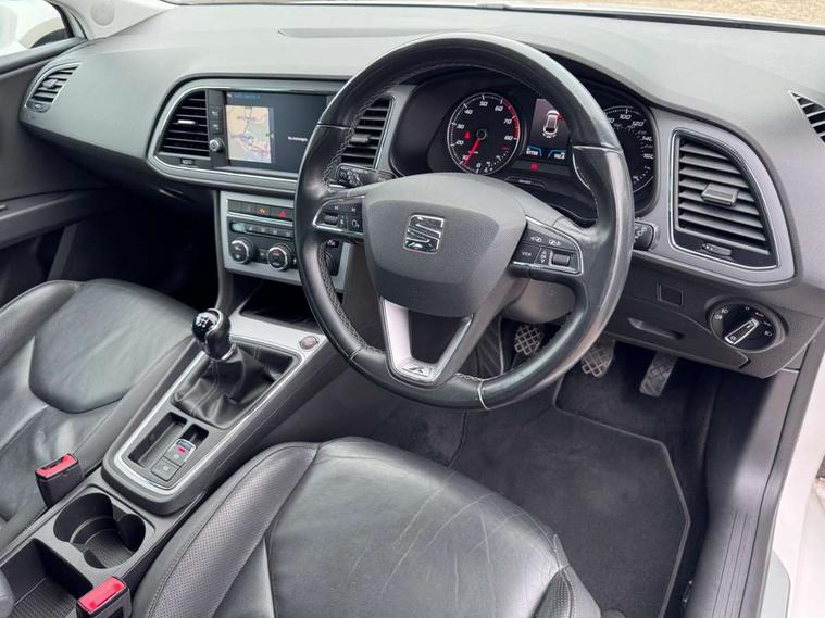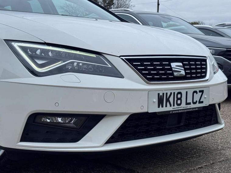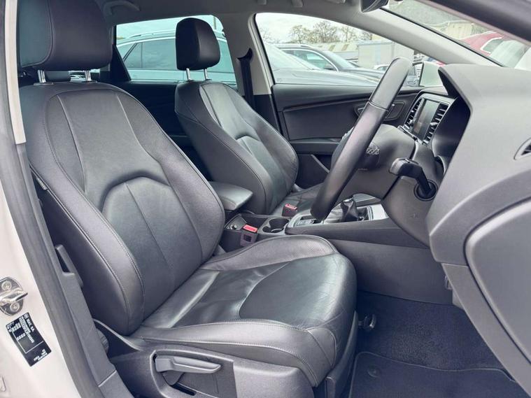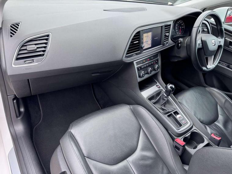 'Lights On' Reminder warning buzzer, 8" touch screen, Bluetooth Handsfree Phone Connection, Front parking sensors, Low fuel warning light, Outside temperature gauge, Rear parking sensors, Remote fuel flap release, SEAT logo boot release, Service interval indicator, Touch screen display, Trip computer, Voice control system, XDS electronic differential lock, 2 USB ports, 2x SD card slot, Auxiliary input socket, Bluetooth audio streaming, Connecting box, DAB Digital radio, Radio/CD + MP3, Steering wheel mounted audio/phone controls, Aluminium front door sills, Body colour door handles, Body coloured bumpers, Body coloured door mirrors, Chrome window surround, Chromed centre radiator grille surround, Dark tinted rear windows, Electric adjustable/heated/folding door mirrors, Electric front/rear windows with one touch/auto up/down, Electric headlamp adjustment, High gloss black finish B and C pillars, LED indicators in door mirrors, Rear wash/wipe, Reverse activated kerb-view adjustment on passenger's door mirror, Twin exhaust pipes, 12v power point in centre console, 3 height adjustable rear headrests, 60/40 split folding rear seat, Active head restraints, Additional heating and ventilation outlet in rear of centre console, Ambient lighting, Boot net, Chrome loading sill, Driver seat lumbar adjustment, Driver/passenger sunvisors with illuminated vanity mirrors, Dual zone climate control, Dust/pollen filter, Front adjustable head restraints, Front armrest with storage box, Front cupholders x 2, Front seat and rear pockets, Front sports seats, Front/rear floor mats, Height/reach adjust steering wheel, Illuminated boot, Illuminated glovebox, Illuminated rear centre console, Instrument lighting with brightness control, Leather handbrake, Leather steering wheel and gear knob, LED reading lights, Luggage compartment cover, Luggage tie-down hooks, Passenger seat height adjuster, Passenger seat lumbar adjust, Rear top tether child seat ISOFIX attachment, Full LED headlight pack - Leon, 3 point seatbelts on all rear seats, ABS + traction control, Child proof door locks, Collision mitigation braking system, Curtain airbags, Driver/Front Passenger airbags, Drivers knee airbag, Electronic parking brake with auto hold, ESP+EBA, Front seatbelt pretensioners, Front Seatbelt warning, Front side airbags, Hill hold control, Manual passenger airbag deactivation function, Tyre pressure monitoring system, 2 folding remote keys with window open/close function, Engine immobiliser, Keyless entry, Remote central locking + deadlocks, Volumetric alarm with back up horn, Chrome interior trim,