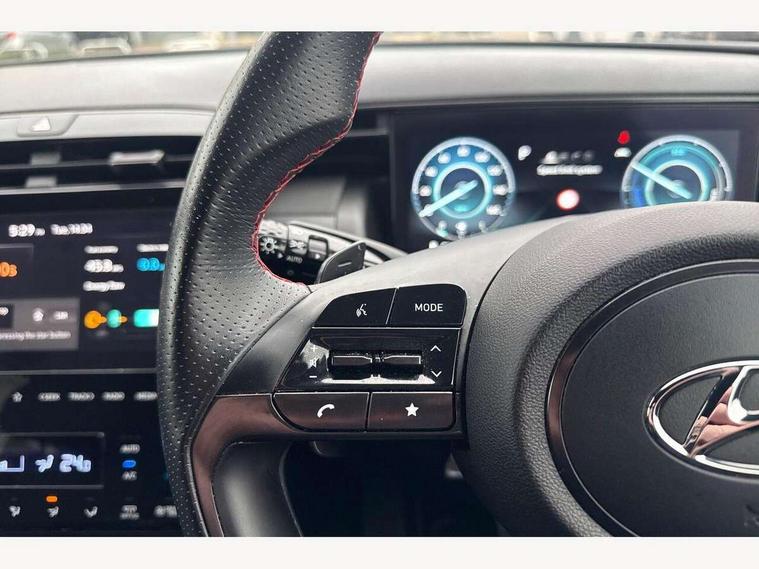 10.25" super vision instrument cluster, 10.25" touchscreen satellite navigation with mapcare and live services, Apple car play/Android Auto, Bluetooth system, Digital clock, Drive mode selector, Driver attention warning, E-call, Emergency stop signalling system, Forward Collision Avoidance Assist (FCA) - Car, Pedestrian and Cycle, Front and rear parking sensors, Intelligent speed limit assist, Lane follow assist, Lane keep assist, PAS, Rev counter, Reversing camera, Roll over sensor, Tailgate open warning light, Trip computer, Trip odometer, Voice recognition, Water temperature gauge, Windscreen washer fluid sensor and warning indicator, Wireless phone charging pad, 2 front and 2 rear speakers with 2 tweeters, DAB Digital radio, Steering wheel mounted audio/phone controls, USB connections in front and rear, Adjustable intermittent front windscreen wipers with aero wiper blade, Auto dimming rear view mirror, Automatic defog system, Automatic headlights with dusk sensor, Automatic windscreen wipers with rain sensor, Black headlamp bezels, Body colour bumpers, Body colour door mirrors with integrated indicators, Body colour exterior door handles, Body coloured wheel arches, Dark chrome effect radiator grille, Electrically adjustable, heated and power folding door mirrors, Follow me home headlights, Front and rear electric windows with anti-trap mechanism and one touch control, Front fog lights, Gloss black door frame moulding, High beam assist, High level third brake light, LED daytime running lights, LED rear lights, MFR - LED headlight with static bending light, N Line body coloured side mouldings, N Line design front grille, N Line Exclusive front and rear bumpers, N Line rear spoiler with fins, Positioning Lights - LED, Privacy glass - Rear windows and tailgate, Rear side wing doors, Rear wash/wipe with intermittent wipe setting, Roof rails, Silver front and rear skid plate, Sports twin tip exhaust and diffuser, Tinted glass with windscreen shade band, Trailer stability assist, 12V power outlets in front console and luggage compartment, 3 seat bench in 2nd row, 40/20/40 split folding rear seat, Adjustable head restraints (Up and down), Alloy pedals, Ambient lighting, Black headliner, Cupholders in rear armrest, Door courtesy lights, Driver and passenger sunvisors with illuminated LED vanity mirrors, Driver's seat electric lumbar support, Driver's seat manual height adjust, Dual zone climate control, Front and rear door pockets, Front armrest with storage box, Front door pocket bottle holders, Front passenger seat lumbar adjustment, Heated front seats, Height/reach adjustable steering column, Illuminated/air conditioned glove compartment, ISOFIX child seat anchorage points attached on outer rear seats, Leather wrapped steering wheel, Leather/suede upholstery, Luggage area underfloor compartment, Luggage compartment lighting, Luggage cover, Luggage hooks, Manual height adjustable front passenger seat, Map and reading lights, N Line logo on steering wheel, Retractable load cover, Single front passenger seat, Sunglasses holder, 3x3 point rear seatbelts, Active bonnet, Airbag - Front, front side, curtain and centre front airbags, Anti-lock brake system (ABS), Brake assist function, Childproof rear door locks, Downhill brake control, Electric parking brake with auto hold function, Electronic stability control, Front and rear seatbelt reminder, Front passenger airbag deactivation switch, Front seatbelt pretensioners, Hill start assist control (HAC), Multi-Collision braking, Outer rear seatbelt height adjustment, Seatbelt height adjustment for front seats, Traction control, Tyre pressure monitoring system with individual tyre pressure display - TPMS, Alarm, Deadlocks, Immobiliser, Locking wheel nuts, Remote control central locking, Smart key with keyless entry and engine start/stop button, Speed sensitive auto door locking, 19" Alloy wheels, Tyre repair kit,