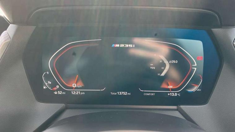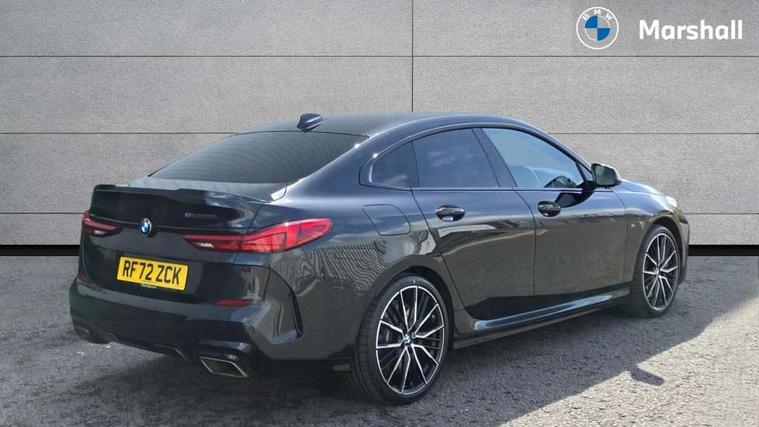 Active guard plus, Attentiveness assist, Auto start-stop, BMW ConnectedDrive online services, BMW Intelligent Personal Assistant, BMW Live Cockpit Professional with 10.25" high resolution instrument and control display, BMW Online services, BMW operating system with 7.0 mid interface, BMW Teleservices, Check Control warning system for monitoring of lights and door/luggage compartment open warning, Cruise control with braking function, Electro hydraulically controlled multi plate clutch in rear axle, Energy efficient operating strategy, iDrive controller with 7 short cut favourite buttons on centre console, Integrated navigation data with map data via USB +features such as 3D landmarks and micro city models, Integrated owners handbook, Intelligent voice assistant, Lane departure warning system, M Sport steering with M235i xDrive M performance specific settings, On board computer - average speed+fuel consumption, service interval, clock/date, odometer/trip meter, outside temperature display and ice warning, Optimum shift indicator, Personal Profile, Pull away assistant, Speed limiting function, 2 balance shafts, 8 speed sport automatic transmission with electronic selector lever, auto P function, coasting idle, race track, sport, gearchange display manual mode, Aluminium lightweight construction, BMW TwinPower twin-scroll Turbo four-cylinder petrol engine, Double VANOS, Drive performance control with ECO PRO comfort + sport mode, Electronic differential lock, Engine cover with M performance designation, High precision injection, Larger fuel tank capacity (50 litres), Launch control, M235i specific heavily de-throttled engine intake air guide, M235i specific high-performance cooling package, M235i specific larger turbocharger with integrated divert-air valve, Performance Control, Petrol Particulate Filter, Power transmission of front wheel drive on the rear axle via angle transmission on the front axle differential and two part cardan shaft, VALVETRONIC engine management, Variable, stepless and infinitely adjustable distribution of drive torque between the front and rear axles, xDrive intelligent all wheel drive with M235i specific reinforced components, 2x USB Type C ports (for charging and data transfer), 4G LTE Connectivity with hard wied 4G network sim card, DAB digital radio, MP3 players and RDS double tuner, Auto wipers, Automatically dimming rear view mirror, Body colour door handles, Direction indicator side lights integrated exterior mirrors, Electric windows - front and rear, with open/close fingertip control and trap release, Exterior mirrors - electrically folding with anti-dazzle, Fading support, Follow me home headlights, Front and rear bumper system with replaceable deformation elements, Front door sill finishers in black plastic with M235i designation, Heated, electrically adjustable exterior mirror aspheric on driver side, convex on passenger side, High gloss black B pillar finish, High gloss shadow line exterior trim, High level third brake light, LED daytime running lights, Lightweight engineering, M Performance exhaust system with valve control and minimised exhaust back pressure, M rear spoiler, Model designation on right side of tailgate includes xDrive designation onleft handside for M235i xDrive, Preparation for high beam assistant, Rain sensor with automatic headlight activation, Rear boot, Rear fog lights, Rear side wing doors, Reinforced crank drive, new pistons and adapted con rods, Reversing light in rear light cluster, Welcome lighting, 12V power socket in centre console, 2 cupholders in front centre console, 3 rear seat head restraints, 3 rear seats, 3 spoke M sports design leather steering wheel finished in nappa leather with specific M badge, Additional under floor storage in luggage compartment, Anthracite finished floor mats with contrasting surround, Anthracite headlining, Automatic two zone climate control air conditioning, Child seat ISOFIX attachment for two outer rear seats and front passenger seat with anchorage points, Conditioned based service, Driver and front passenger seat heating, Front and rear door pockets including bottle trays, Front and rear side armrests integrated into door trim, Front armrest foldable with integrated storage compartment, Front centre interior light over interior mirror and rear centre automatic interior light when door is opened/ignition switched off or via remote key, Front head restraints, Front M Sport seats, Front passenger seat, Glove compartment, Glovebox with light, Luggage compartment lighting, Manually adjustment steering wheel column, Multi-function controls for steering wheel, Shift-by-wire selector shift, Steering wheel paddles, Sun visors with vanity mirrors and insert tab, Through loading system with 40/20/40 split folding rear seat, Two lashing eyes, Additional interior lighting pack - 2 Series Gran Coupe, Connected pack professional - 2 Series Gran Coupe, Extended storage pack - 2 Series Gran Coupe, M Sport exterior styling aerodynamics pack - 2 Series Gran Coupe 235i, 2 tone horn, Airbag - Front driver and passenger, front and rear head, front side, curtain head protection, manual deactivation of front passenger airbag possible, Anti lock braking system (ABS) with cornering brake control, BMW emergency call, Brake drying, Braking readiness, City braking function, Crash sensor activating of airbags, Unlocking doors, hazard warning lights, interior light, safety battery terminal, Dynamic stability control + (DSC+), Dynamic Traction Control - DTC, Electrically operated hand brake, Integrated torsen mechanical limited slip differential on front axle, M Sport braking system in blue high gloss + blue painted brake calipers with M designation, M sport seatbelt, Rear brake discs, Rear child proof door locks, Seat belt security check for driver and front passenger, Seatbelt warning, Side impact protection, Three point seat belts on all seats including front belt stopper, pyrotechnic belt tensioners and belt forc