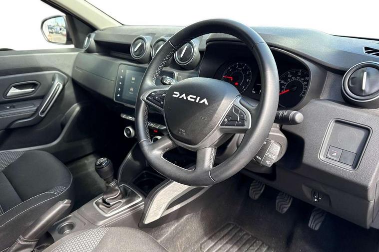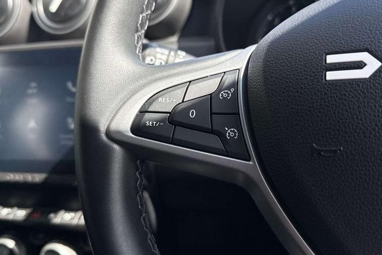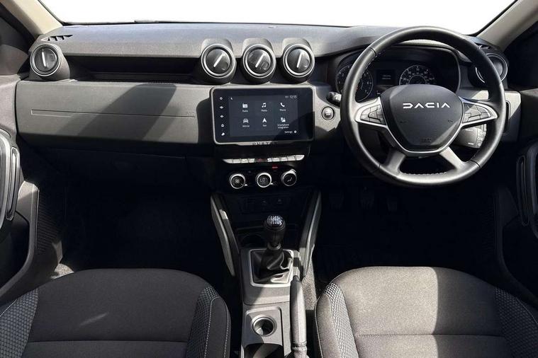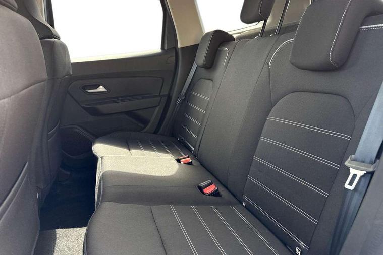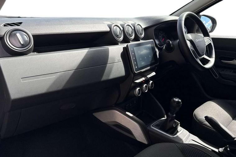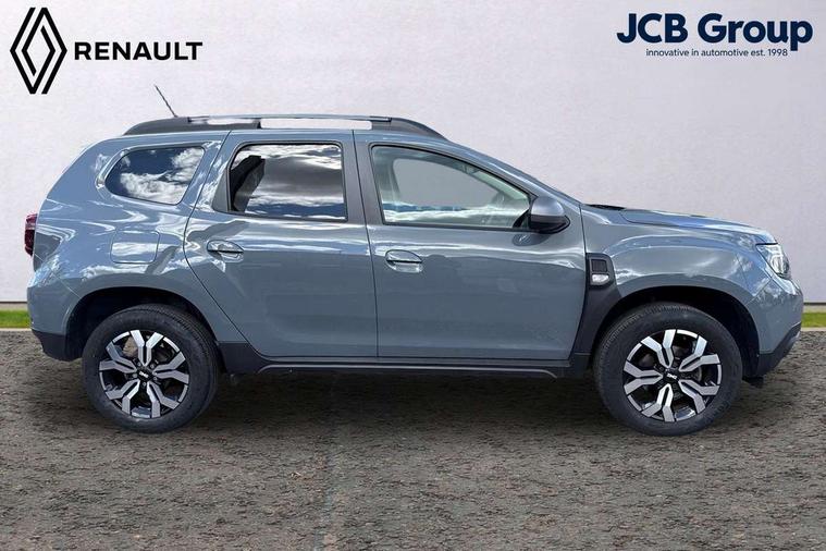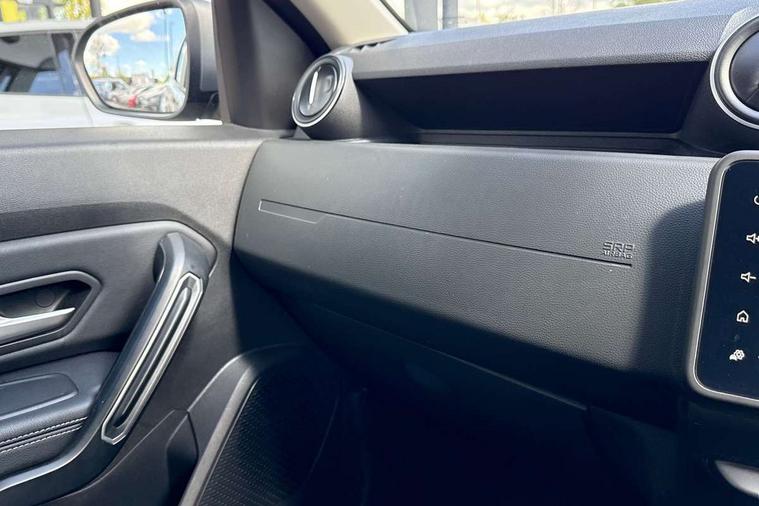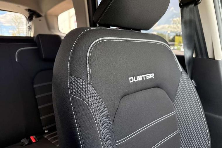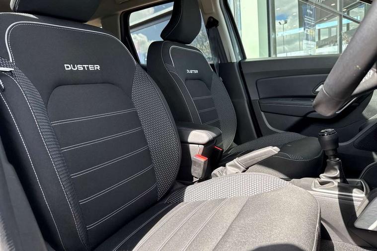 Blind spot warning, Cruise control and speed limiter, eCall emergency system, Eco mode, Electric power assisted steering, Multi view camera, On board computer, odometer, trip computer, average fuel consumption, average speed, service indicator, outside temperature gauge, Rear parking sensors, Rev counter, Reversing camera, Stop/start system, 8" Media Navigation with wireless smartphone replication, Dacia plug and radio/MP3/USB/bluetooth/DAB/steering wheel control, 3 speed windscreen wipers, Acoustic windshield, Automatic front wipers, Black side sills, Black/satin chrome tailgate trim with Duster inscription in black background and lettering, Body coloured door handles, Chrome front grille with hot stamping, Chrome logo surround on steering wheel, Dark glass on lateral rear windows, Daytime running lights, Drivers window one touch up/down, Dusk sensor, Electric adjustable/heated door mirrors, Electric folding door mirrors, Electric front windows, Electric rear windows, Front and rear body coloured bumpers, Front door sill protection strip, Front fog lights, Grey quartz longitudinal roof bars with Duster inscription, Heated rear window, High level third rear brake light, Modular roof bars, Rain sensor, Rear side wing doors, Rear spoiler, Rear wash/wipe, Satin chrome door mirrors, Underbody protection skid plates, Y shaped LED headlights with rear LED lights, 3 rear height adjustable headrests, 3 seat bench in 2nd row, 60/40 split folding rear seat, Automatic air conditioning, Backlighted steering wheel buttons, Boot light, Driver seat lumbar adjustment, Fabric decorative insert on door panels, Fabric upholstery, Front head restraints, Front passenger reading light, Gear shift indicator, Glovebox light, Heated seats, Height adjustable driver seat, Height adjustable front and rear headrests, Height and depth adjustable steering wheel, High centre console with driver armrest, Isofix points for child seats in both outer rear seats, Map pocket on front seat backs, Passenger sunvisor with vanity mirror, Rear passenger reading light, Satin chrome gear lever cap insert, Satin chrome interior door handles, Satin chrome lower steering wheel insert, Single front passenger seat, Soft feel leather steering wheel, 3x3 point rear seatbelts, ABS and Emergency brake assist, ASR traction control with Electronic stability control, Child locks on rear doors, Door open visual and audible warning, Driver airbag, Driver and passenger seatbelt not fastened - visual and audible warning, EBD - Electronic brakeforce distribution, Front passenger airbag, Front passenger airbag deactivation, Front seatbelt pretensioners, Front side airbags, Height adjustable front seatbelts, Hill start assist, Tyre pressure monitor, Keyless entry, Remote central locking, Thatcham approved engine immobiliser, Charcoal grey central console surround, Matt black central console fascia, Matt black decorative insert on rear door panels, Piano black decorative insert on front door panels, Satin chrome air vent surround, Satin chrome instrument dial surrounds, 17" Alloy wheels,