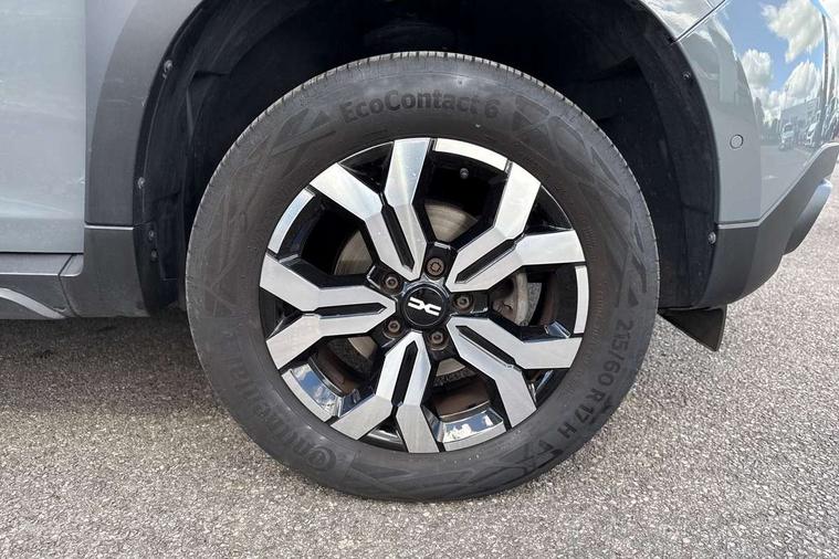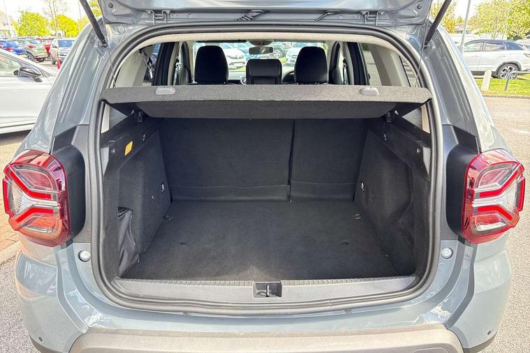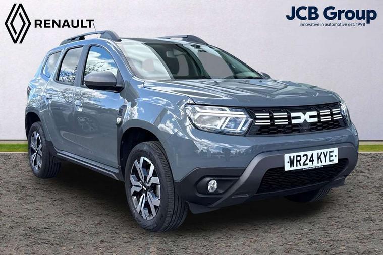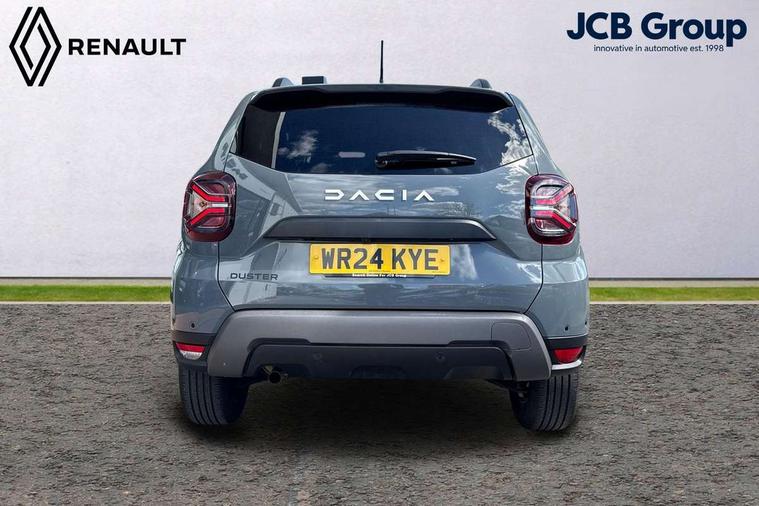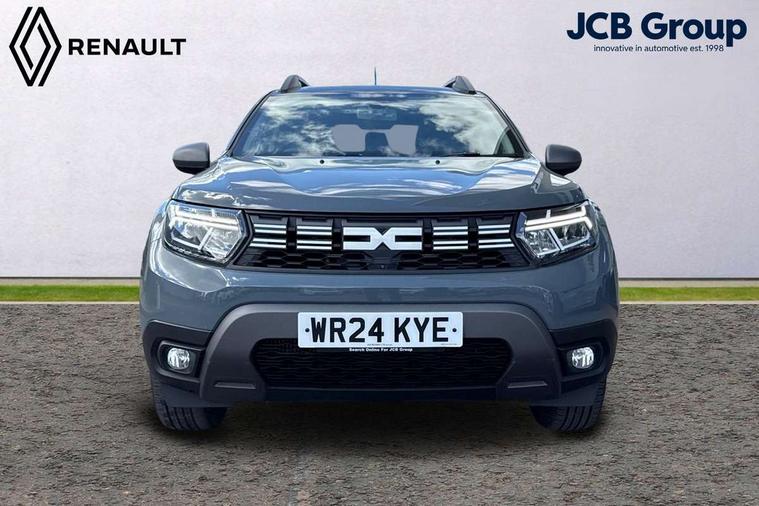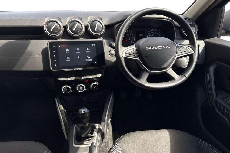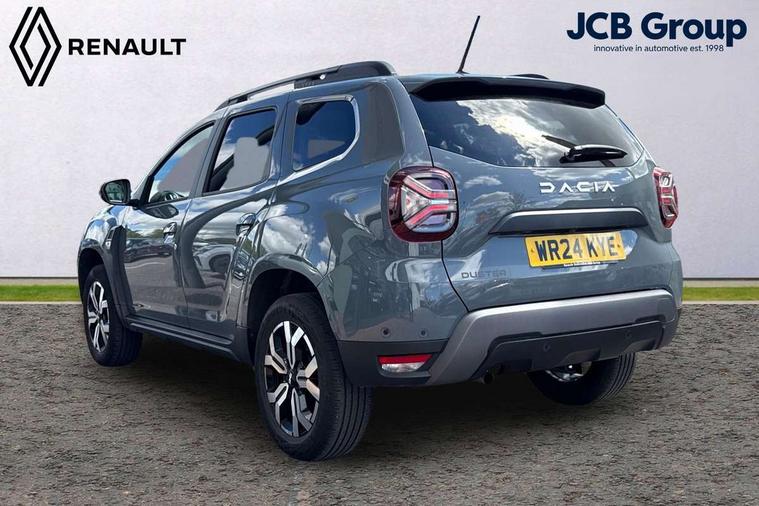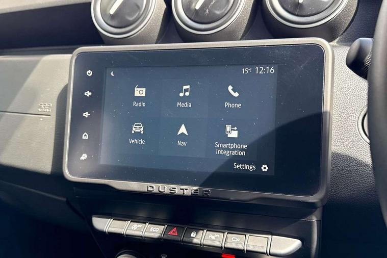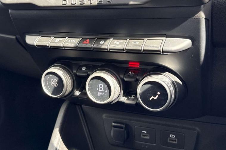 Blind spot warning, Cruise control and speed limiter, eCall emergency system, Eco mode, Electric power assisted steering, Multi view camera, On board computer, odometer, trip computer, average fuel consumption, average speed, service indicator, outside temperature gauge, Rear parking sensors, Rev counter, Reversing camera, Stop/start system, 8" Media Navigation with wireless smartphone replication, Dacia plug and radio/MP3/USB/bluetooth/DAB/steering wheel control, 3 speed windscreen wipers, Acoustic windshield, Automatic front wipers, Black side sills, Black/satin chrome tailgate trim with Duster inscription in black background and lettering, Body coloured door handles, Chrome front grille with hot stamping, Chrome logo surround on steering wheel, Dark glass on lateral rear windows, Daytime running lights, Drivers window one touch up/down, Dusk sensor, Electric adjustable/heated door mirrors, Electric folding door mirrors, Electric front windows, Electric rear windows, Front and rear body coloured bumpers, Front door sill protection strip, Front fog lights, Grey quartz longitudinal roof bars with Duster inscription, Heated rear window, High level third rear brake light, Modular roof bars, Rain sensor, Rear side wing doors, Rear spoiler, Rear wash/wipe, Satin chrome door mirrors, Underbody protection skid plates, Y shaped LED headlights with rear LED lights, 3 rear height adjustable headrests, 3 seat bench in 2nd row, 60/40 split folding rear seat, Automatic air conditioning, Backlighted steering wheel buttons, Boot light, Driver seat lumbar adjustment, Fabric decorative insert on door panels, Fabric upholstery, Front head restraints, Front passenger reading light, Gear shift indicator, Glovebox light, Heated seats, Height adjustable driver seat, Height adjustable front and rear headrests, Height and depth adjustable steering wheel, High centre console with driver armrest, Isofix points for child seats in both outer rear seats, Map pocket on front seat backs, Passenger sunvisor with vanity mirror, Rear passenger reading light, Satin chrome gear lever cap insert, Satin chrome interior door handles, Satin chrome lower steering wheel insert, Single front passenger seat, Soft feel leather steering wheel, 3x3 point rear seatbelts, ABS and Emergency brake assist, ASR traction control with Electronic stability control, Child locks on rear doors, Door open visual and audible warning, Driver airbag, Driver and passenger seatbelt not fastened - visual and audible warning, EBD - Electronic brakeforce distribution, Front passenger airbag, Front passenger airbag deactivation, Front seatbelt pretensioners, Front side airbags, Height adjustable front seatbelts, Hill start assist, Tyre pressure monitor, Keyless entry, Remote central locking, Thatcham approved engine immobiliser, Charcoal grey central console surround, Matt black central console fascia, Matt black decorative insert on rear door panels, Piano black decorative insert on front door panels, Satin chrome air vent surround, Satin chrome instrument dial surrounds, 17" Alloy wheels,