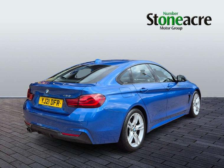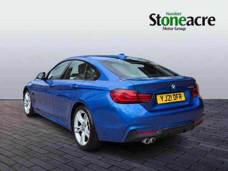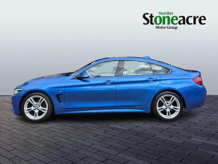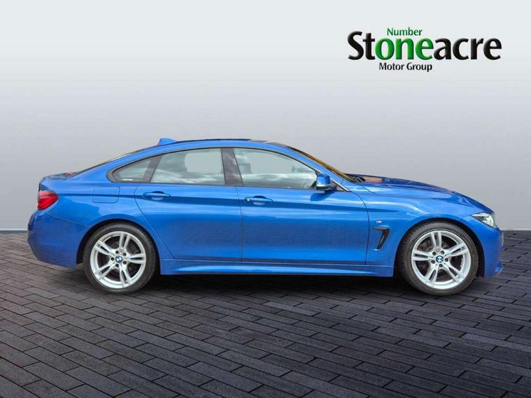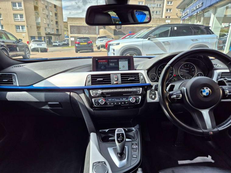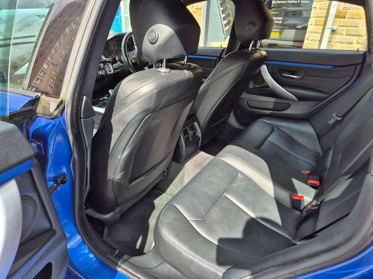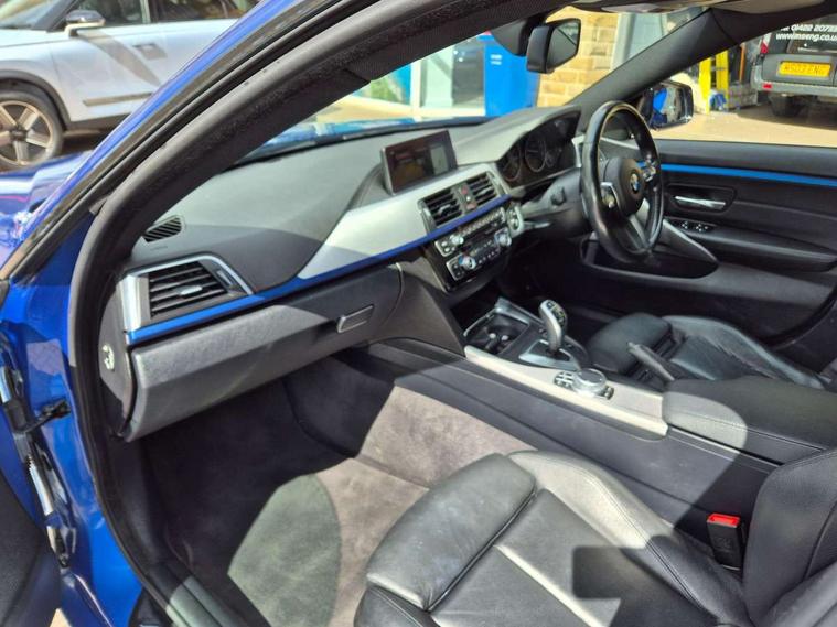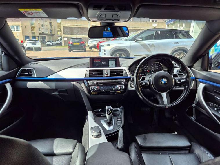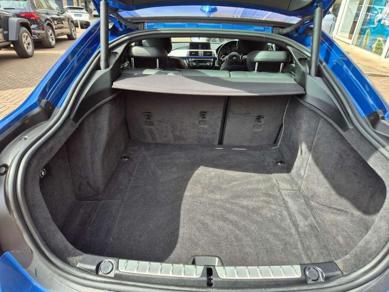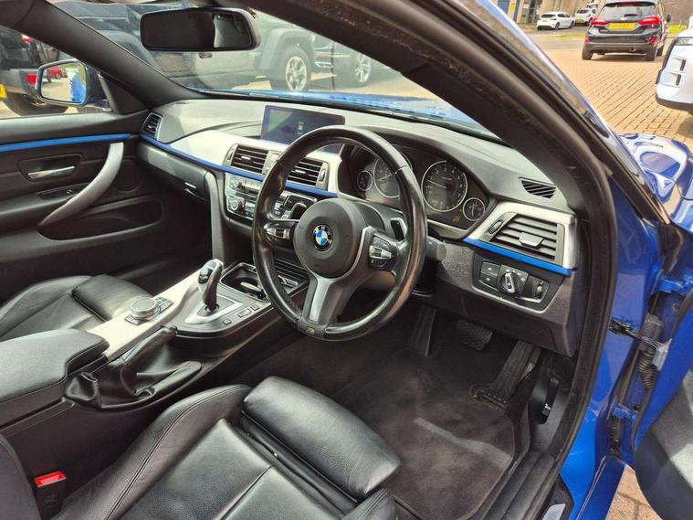 Auto start-stop, Automatic tailgate operation, BMW Online services, BMW remote services, BMW Teleservices, Brake pad wear indicator in front and rear, Check Control warning system for monitoring of lights and door/luggage compartment open warning, Condition based service, Control display - 6.5" colour display screen, Front/rear park distance control (PDC), iDrive Controller with 8 favourite buttons, Instrument cluster with speedometer with mph readout, tachometer, fuel gauge and oil temperature gauge, Lights on warning by audio warning signal when ignition is switched off, M Sport instrument cluster, Oil sensor for level and grade, warning by check control system, On board computer - average speed, fuel consumption, outside temp display with acoustic warning, clock/date, service interval, odometer/trip meter, Optimum shift indicator, Personal Profile - automatic lock when driving away selectable, Professional multimedia navigation system, Run flat indicator, Aluminium front suspension, Drive performance control with ECO PRO comfort + sport mode, Electronic differential lock, Five link rear suspension, Sport automatic transmission with steering-wheel mounted gearshift paddles and launch control, VALVETRONIC engine management, DAB tuner, Auto dimming rear view mirror, Body colour door handles, Body colour front bumper, Body colour mirror caps, Body colour rear bumper, Body colour roof mouldings, Chrome kidney grille with extra wide black, high gloss black vertical slats, Direction indicator, side repeaters, integrated in exterior mirrors, Door sill finishers with M designation, Dual exhaust tailpipes in left with chrome finisher, Dynamic brake lights, Electric front windows with fingertip open/close + anti-trap facility, Follow me home headlights, Front air inlet with high gloss black finish, Front and rear bumper system, Green tinted heat protection glazing, Heated windscreen washer jets, Heated, electrically adjustable exterior mirror aspheric on driver side, convex on passenger side, High gloss black air breather, High gloss black rear bumper insert, High gloss shadow line exterior trim, High level third brake light, LED daytime running lights, LED direction indicator lenses, LED eyebrow light, LED front fog lights, LED tail lights with 3D L-shaped LED light design, Lightweight engineering, M aerodynamic bodystyling, Model designation, Rain sensor including auto headlights activation, Shark fin antenna, Two speed adjustable intervals windscreen wipers, Visible VIN plate, Welcome lighting, Windscreen with grey shadeband, 12V sockets in front centre console and passenger footwell, 2 Rear seat headrests, 3 spoke leather M sport multifunction sports steering wheel, 4 grab handles, Air conditioning and radio control panel in high gloss black, Ambient lighting - switchable BMW classic orange/ cold white LED, Anthracite headlining, Automatic air conditioning with two zone control, Bottle holders integrated into front door trim storage compartments, Chrome centre console panel highlight, Driver and front passenger seat heating, Front and rear side armrests integrated into door trim, Front folding sliding armrest with storage compartment, Front head restraints, Front sports seats, Full black panel display, Glove compartment, Interior lighting, front centre over interior mirror and rear centre automatic interior light activation when door is opened, Leather gearknob and handbrake lever, Load lashing eyes in luggage compartment, Reach + rake manual adjustable steering column, Rear child seat isofix attachment with passenger airbag deactivation, Rear coded belt buckles, Storage compartment in rear centre console, Sunvisors with vanity mirrors and ticket pocket, Toolkit located in luggage compartment, Two front cup holders with a sliding lid, Velour floor mats, Extended lighting package - 4 Series Gran coupe, Non Smokers pack, 3 point seatbelts on all seats, Airbag - Front driver and passenger, front and rear head, front side, curtain head protection, manual deactivation of front passenger airbag possible, Anti lock braking system (ABS) with brake assist, Automatic Stability Control (ASC), Battery safety cut-off, BMW emergency call, Brake drying, Brake energy regeneration, Brake pretensioning, Cornering brake control (CBC), Crash sensor activating central locking release, hazard warning lights, Dynamic brake control, Dynamic stability control + (DSC+), Dynamic Traction Control - DTC, Front and rear ventilated brake disc, Front seatbelt force limiters, Hill start assistant, Pyrotechnically pre-tensioned front seatbelts, Seat belt security check for driver, Side impact protection, Twin horns, Tyre pressure monitoring with three level warning strategy, Variable torque distribution, Warning triangle and first aid kit, Alarm system (Thatcham 1) with electronic engine immobiliser, Central locking switch for all doors, fuel filler cap and luggage compartment, Remote control integrated key with blue inset, Start/stop button with Comfort Go keyless engine start and auto Start/stop deactivation button, Reduced rolling resistance tyres, Run flat tyres,