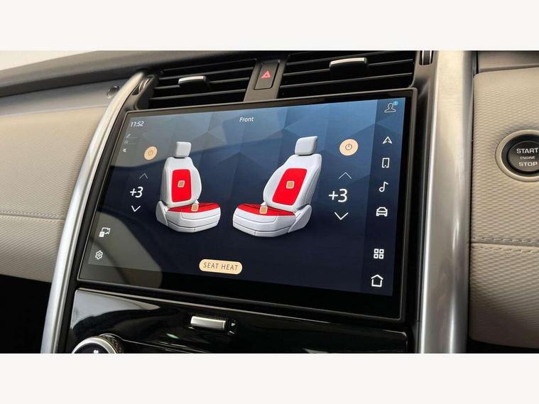 11.4" touchscreen, 3D surround camera, Adaptive cruise control, Android Auto, Apple car play, Blind spot assist, Driver condition monitor, Electric power assisted steering (EPAS), Emergency services call system, Front and rear parking aid, Interactive driver display, Lane keep assist, Power inner tailgate, Power tailgate/boot lid, Push button start, Rear collision monitor, Rear traffic monitor, Remote, Remote boot release, Service interval indicator, Speed proportional steering, Sportshift selector, Stop/start system, Traffic sign recognition with adaptive speed limiter, Trip computer, Wade Sensing, Wireless device charging, Adaptive dynamics, Dynamic stability control, Electronic air suspension, Front axle open differential, Digital Audio Broadcast radio-DAB, Dynamic volume control, Pivi pro connected, Acoustic laminated windscreen, Animated directional indicators, Auto dimming interior rear view mirror, Automatic headlight levelling, Automatic headlights, Black roof rails, Body colour bumpers, Body colour door handles, Centre high mounted stop light, Electric heated/power fold memory door mirrors with approach lights and auto dimming driver side, Electric windows with one touch open/close and anti-trap, Heated rear window, Heated windscreen, LED darkend tail lights, Matrix LED headlights with signature DRL, Privacy glass, Puddle lights, Rain sensing windscreen wipers, Rear fog lights, Rear side wing doors, Rear wash/wipe, Trailer stability assist, Variable intermittent wiper, 1 x 12V power socket in Row 1, Row 2, and loadspace, 1 x USB-C (power only), 1 x USB-A & 1 x USB-C (power & data) in Row 1, 2 seat bench in 3rd row, 2 x USB-C in Row 2 (power only), 2 x USB-C in Row 3 (power only), 3 seat bench in 2nd row, 60/40 electric heated folding rear seats with manual slide and powered recline, centre headrest and armrest, Central hinged twin lidded storage, Configurable cabin lighting, Electric adjustable steering column, First and second row door bins, Footwell lights, Front passenger seat ISOFIX, In-facia storage, Isofix child seat preparation for front passenger seat, Leather steering wheel, Loadspace cover, Loadspace Hook, Loadspace light, Lockable glovebox, Lower centre console storage, Luggage tie downs in loadspace, Multi function steering wheel, Overhead lighting console, Premium carpet mats, Rear ISOFIX, Shopping bag hook, Single front passenger seat, Storage glovebox, Sunvisors with illuminated vanity mirrors, Third row storage, Treadplates with metal inserts, Twin front cupholders with cover, USB with 12V socket in centre console, Online pack with data plan - Discovery, 3x3 point rear seatbelts, Anti-lock braking system (ABS), Brake pre-fill technology, Cornering brake control, Curtain airbags, Customer configurable autolock, Driver and passenger airbags, EBD - Electronic brakeforce distribution, Electronic traction control, Emergency brake assist, Emergency braking, ESP, Front side airbags, Gradient acceleration control, Hill descent control, Hill launch assist, Power operated child locks, Rear airbags, Roll stability control, Seat belt reminder, Torque vectoring brake, Tyre pressure monitoring system, Immobiliser, Intrusion sensor, Keyless entry, Locking wheel nuts, Remote central locking, All terrain tyres,