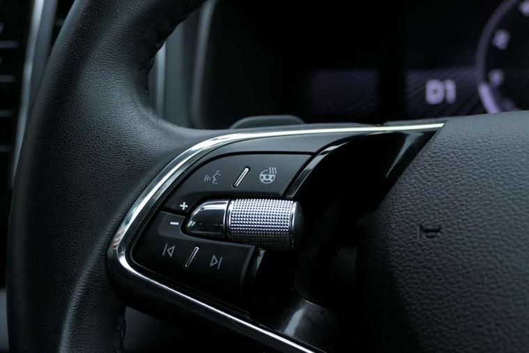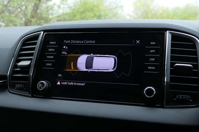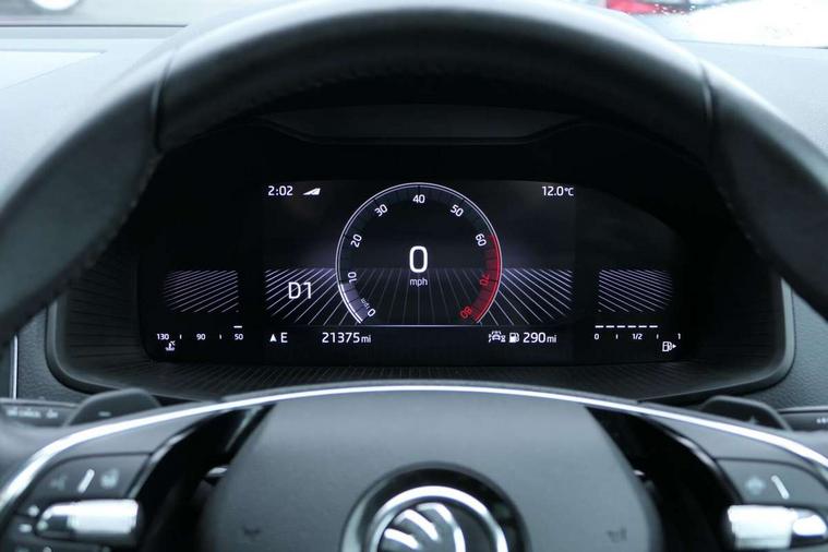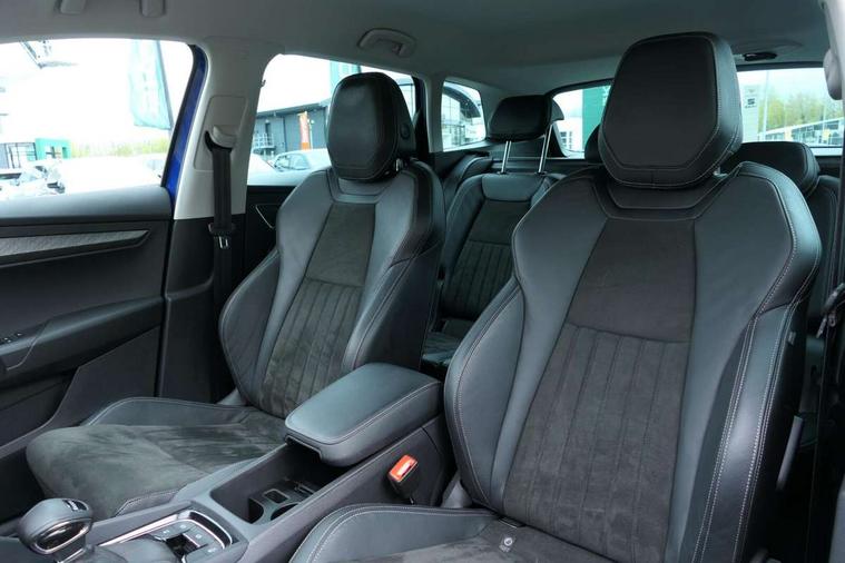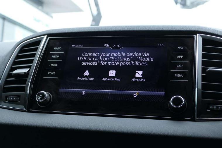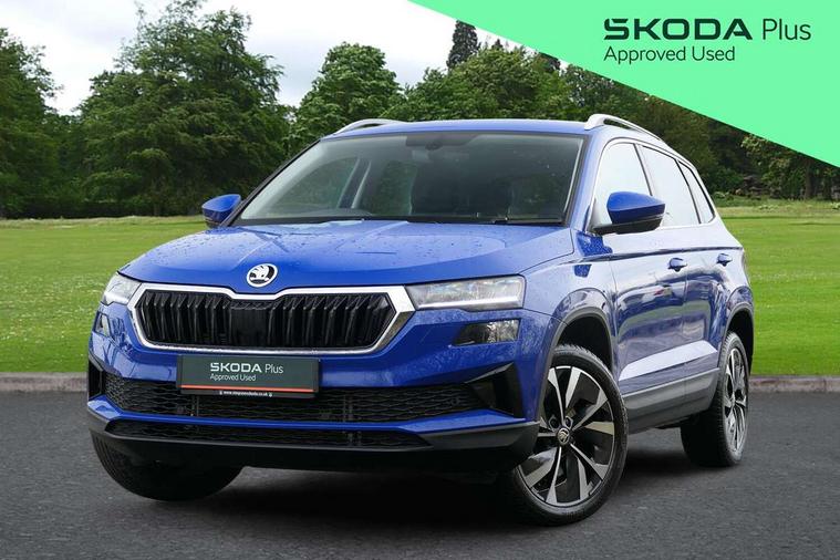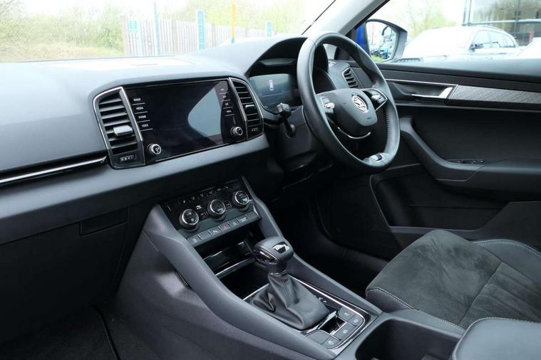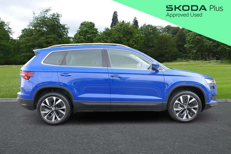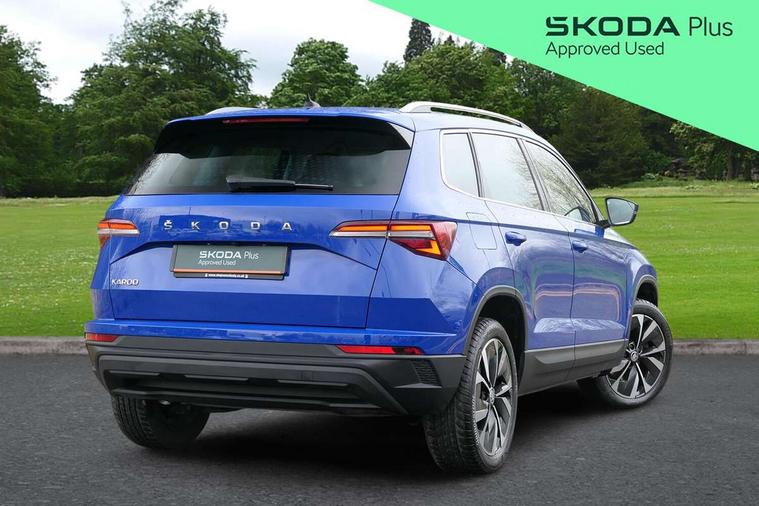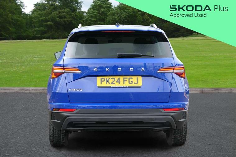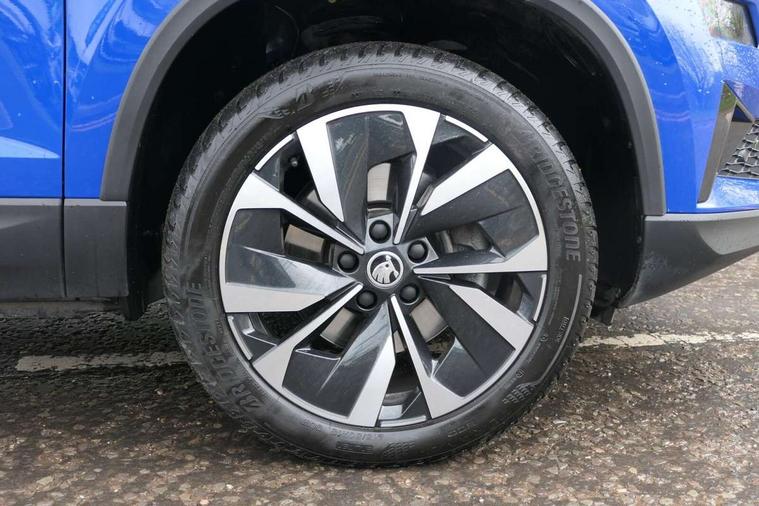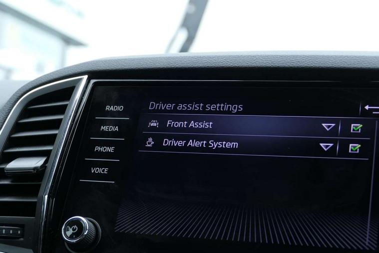 8" Digital display, Advanced driver attention and drowsiness monitor, Emergency services call system, Outside temperature gauge, Sensor for driver assistance systems, Service interval indicator, SmartLink wireless for Apple and wired for Android, Start/stop system with regenerative braking, USB C Port x 2 in front centre console, Virtual Cockpit - 10.25" digital display, Wireless smartphone charging, DAB radio with Bluetooth, USB connection, Acoustic glass, Aero front windscreen wipers with intermittent function, Auto dimming rear view mirror with light and rain sensors, Black electric window control buttons, Body colour door mirrors and handles, Electric front and rear windows with child proof lock, Heated rear windscreen, LED 3rd brake light, LED daytime running lights, LED rear lights with high functionality welcome effect and dynamic indicators, Light assistant (coming/leaving home/tunnel light), Plastic scuff plates in door apertures, Privacy glass, Rear side wing doors, Rear spoiler, Rear window wiper with washer system and intermittent control, Safety reflectors on front doors, 1.5 litre bottle holders in driver and front passenger door panels, 12V socket in boot, 12v socket in front centre armrest with storage compartment and rear air vents, 2 spoke leather heated multifunction steering wheel with DSG paddles, 2 x Tablet holder, 3 rear height adjustable headrests, 3 seat bench in 2nd row, 4 foldable roof handles with rear coat hooks, Black floor carpet, Chrome inner door handles, Double sided boot floor, Foldable hooks in the boot, Front head restraints, Height adjustable front three point seats belts with tensioners, Height/reach adjust steering wheel, Ice scraper, Illuminated glovebox, Illuminated luggage compartment, Interior noise suppression, Isofix child seat preparation for front passenger seat, Isofix child seat preparation outer rear, Manual lumbar support for front seats, Pearl grey interior ceiling, Pen holder, Pollen filter, Rear boot cover, Rear reading lights, Rubbish bin door, Safety vest holder, Single front passenger seat, Storage box in upper central dashboard closed, Sunvisors with illuminated vanity mirrors, Textile floor mats, Ticket holder, Design Pack - Karoq, Non Smokers pack, Parking pack - Karoq, Automatic door unlocking in case of crash, Automatic fuel cut off in case of crash, Driver airbag, Electronic parking brake with auto hold function, Emergency rear braking signal, ESC including ABS, MSR, ASR, EDS, HBA, DSR, RBS, MKB and traction control, Front side airbags, Head airbags, Hill hold control, Knee airbags, Passenger airbag with switch-off function, Pedestrian monitor, Seatbelt reminder signalisation and pretensioner for all seats, Three point seatbelts rear, Two tone horn, Tyre pressure monitor, Alarm with interior monitoring, back up horn and tilt sensor with safe function, Electronic engine immobiliser, Keyless entry and start/stop, Remote central locking with 2 remote folding keys, Black centre console, Chrome framed air vents, Satin black dashboard, 18" Procyon silver alloy wheels with anthracite aero inserts, Anti-theft wheel bolts protection, Breakdown and tool kit,