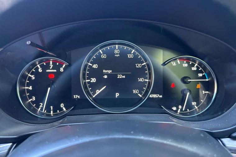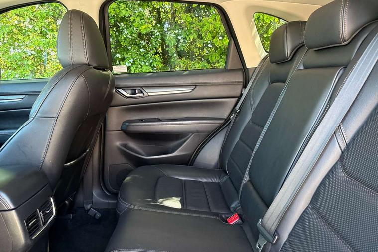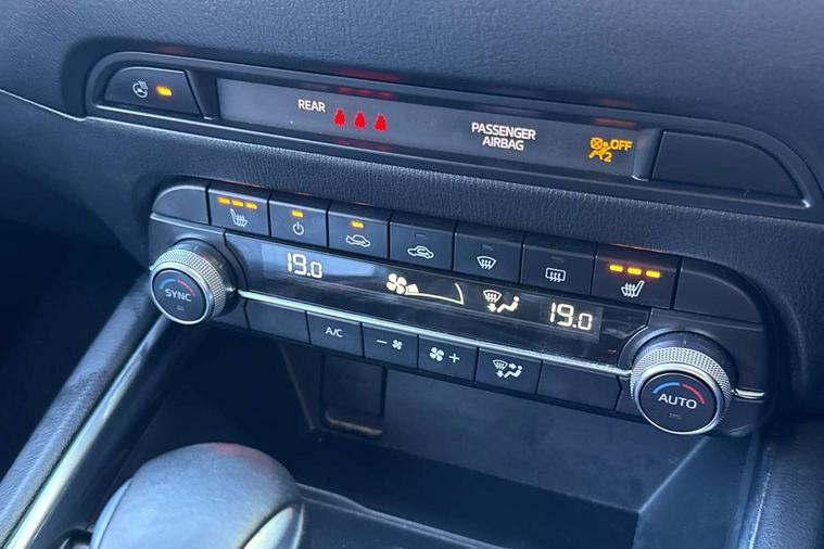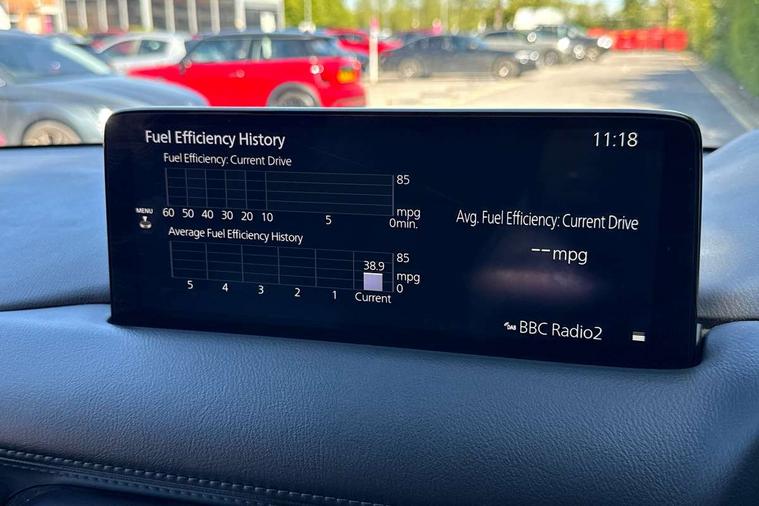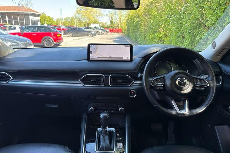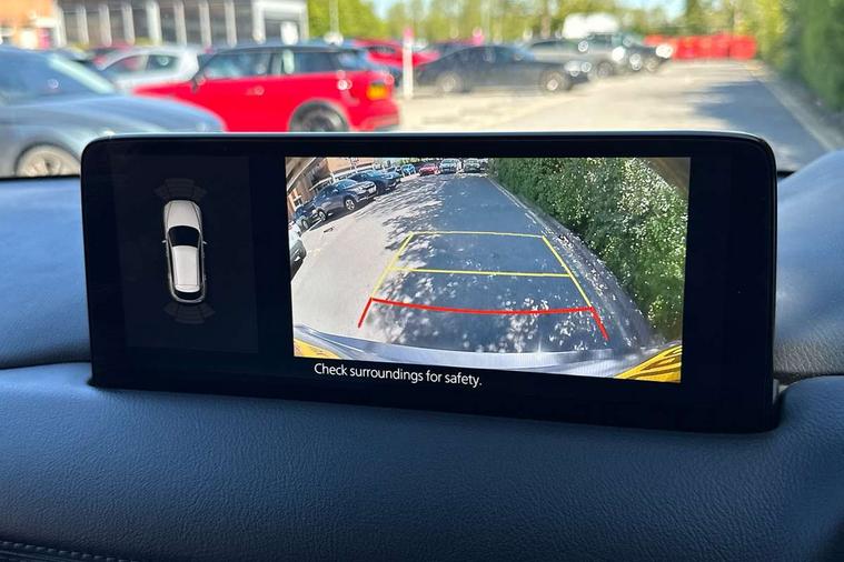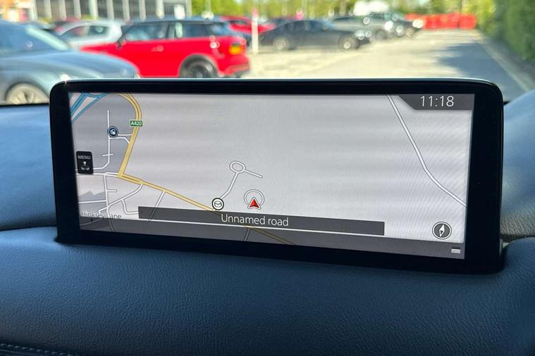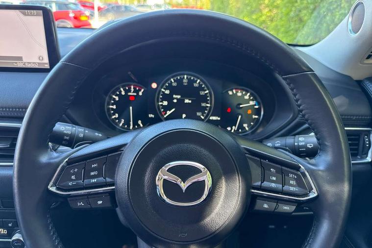 10.25" display with Mazda Connect infotainment, 7" colour TFT display, Advanced blind spot monitoring, Bluetooth connectivity with voice control, Collision prevention assist, Connected services, Cruising Traffic Support, Drive mode selector, Electric power steering, Emergency stop signalling system, Engine start/stop button, Forward collision warning, Front and rear parking sensors, Integrated navigation system, Intelligent speed assist, Lane departure warning system, Lane keep assist, Power liftgate, Qi wireless phone charging, Radar cruise control with Stop and Go, Rear cross traffic alert, Reversing camera, Service indicator, Traffic sign recognition (TSR), Trip computer, Windscreen projected colour active driving display (HUD) with memory, Wireless apple car play/android Auto, Cylinder Deactivation, i-stop, AM/FM radio, Bluetooth audio streaming, Bose premium sound system with 10 speakers, DAB Digital radio, Multimedia Commander including separate volume dial, Steering wheel mounted audio controls, Adaptive front lighting system, Auto dimming rear view mirror, Automatic headlights, Black inlay dashboard panel, Body colour door mirrors, Body colour roof spoiler, Body coloured front and rear black lower bumper mouldings, Coming/leaving home lighting function, Door mirror integrated indicators, Dual chrome tailpipes, Dusk sensitive headlamps, Electric front/rear windows with one touch auto up/down, Front grille in gloss black finish, Front grille in gloss black finish with chrome signature wing, Gloss black B and C pillars garnish, High beam assist, Intermittent rear wash/wipe, LED auto levelling, LED daytime running lights, LED front fog lights, LED Headlights, LED third brake light, Power folding and heated door mirrors, Power tilt/slide sunroof, Privacy glass (rear side windows only), Rain sensing front wipers, Rear side wing doors, Satin black side mouldings, Scuff plates, Shark fin antenna, Signature LED rear combination lights, Variable intermittent front wash/wipe, Vinyl with wood grain metal inlay door trim panel, Windscreen wiper de-icer, 12v electrical power outlet, 3 seat bench in 2nd row, 3 stage heated front seats, 40:20:40 Karakuri fold-flat seat system, 6 way electric adjustable passenger seat, 8 way electric driver seat with lumbar support + memory, Cargo room flat floor board with waterproof undertray, Driver seat power slide, recline and height adjustment, Driver, Front passenger and two rear grab handles with coat hooks, Driver/passenger front seatback pockets, Driver/passenger sunvisors + illuminated vanity mirrors (drivers with ticket holder), Dual zone climate control, Folding centre armrest with 2 cup holders, Front and rear door pockets, Front centre storage with two cupholders, Front passenger seat power slide, recline and height adjustment, Heated steering wheel, Humidity sensor, Illuminated glovebox, Interior dome light with integral spotlight, ISOFIX child seat anchorage points attached on outer rear seats, Karakuri tonneau cover, Leather upholstery, Leather wrapped steering wheel and gear knob, Light roof lining, Luggage compartment LED lighting, Luggage compartment power outlet, Paddle shifts, Rear air vents, Rear headrests, Rear seat recline, Roof mounted sunglasses holder, Single front passenger seat, Three height adjustable head restraints, Tilt/height adjustable steering wheel, USB Connectivity (2x front Type-C, 2x rear Type-B), White interior LED illumination lighting, 3 point front seatbelts with pre-tensioners, 3 rear 3 point seatbelts, ABS, Advanced Smart City Brake Support - SCBS, Child locks on rear doors, Driver and front passenger side airbags, DSTC-Dynamic Stability and Traction Control, Dual front airbags, Electronic brake force distribution, Electronic parking brake with auto hold, ESP, Front and rear curtain airbags, Front passenger airbag deactivation, G-Vectoring control, Hill hold assist, Seatbelt reminder front and rear, Single stage passenger airbags, Smart brake support with forward obstruction warning, Tyre pressure monitoring system, Automatic door locking when moving off, Deadlock, Immobiliser, Power door locks, Remote central locking, Smart keyless entry, Thatcham Cat.1 alarm, 19" diamond cut black alloy wheels, Tyre repair kit,