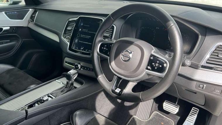 12.3" Active TFT crystal driver's instrument display, Adaptive cruise control with pilot assist, Bluetooth hands free telephone connection, Drive mode settings, adjustable steering wheel force + hill descent control, Forward collision warning, Handsfree power boot opening and closing, Lane departure warning with driver alert control, Oncoming Lane Mitigation, Power tailgate, Service interval indicator, Speed dependant power steering system, Speed limiter, Touch screen centre multi info display, Trip computer, Voice control system, Volvo on call, Wireless internet connection, Touring chassis, DAB Digital radio, Adaptive brake lights, Auto dimming door mirrors, Auto dimming rear view mirror, Body colour bumpers, Cornering light, Dark tinted rear windows, Day time running light, Dual integrated exhaust pipes with high gloss black surround, Electric adjustable/heated/folding door mirrors, Front and rear electric windows, Headlamp levelling, High beam assist, High gloss black lower front bumper, High gloss black mesh grille, Home safe and approach lighting, Illuminated side steps, LED front fog lights, LED Headlights, Matt silver finish door mirrors, Puddle lights, Rain sensor windscreen wipers, Rear wash/wipe with intermittent wipe setting, Roof antenna, Roof spoiler, Silk metal grille surround, Silk metal window trim, Silver roof rails, Visible VIN plate, 12V Accessory socket in centre console, 12V power point in luggage area, 12V socket in rear tunnel console, 2 individual folding 3rd row seats, 3 individual folding 2nd row seats, A-pillar parking ticket holder, Ambient lighting in door panels, B Pillar ventilation, Bright metal luggage threshold, Centre console storage box, Driver/passenger lumbar adjustment, Driver/passenger sunvisors and illuminated vanity mirrors, Electric front cushion extensions, Electric memory driver's seat + door mirror memory, Electrically adjustable passenger seat with memory, Front and rear centre armrests with cupholders, Front footwell illumination, Front headrests, Front/rear reading lights, Gearshift paddles, Grocery bag holder, Heated front seats, Height/reach adjustable steering column, Illuminated front and rear tread plates, Illuminated front cupholder, Illuminated front/rear door pockets, Illuminated glovebox with lock, Illuminated luggage compartment, Illuminated tailgate, Instrument panel illumination control, Isofix rear child seat preparation in 2nd row, Load cover, Multicolour theatre lights, Outboard armrest with cupholder and storage for 3rd row, Passenger seat electric height adjuster, Perforated leather gearknob, Perforated Leather Key Integrated Remote, Perforated leather steering wheel, Pollen filter, Rear footwell illumination, Rear headrests, Sports floor mats, Sports pedals, Steering wheel audio controls, Sun curtain - rear side doors, Underfloor stowage compartment, 7 three point seatbelts, ABS/EBD, City safety braking system, Drivers knee airbag, Dual stage driver/passenger airbags, EBA, Electronic parking brake with auto hold, Front and rear curtain airbags, Front seat side impact airbags, Hill start assist, Inflatable curtain, Passenger airbag cut-off device, Pedestrian and Cyclist Detection, Road sign information display, Run off Road Protection, Seatbelt pre-tensioners, Seatbelt warning, SIPS (Side Impact Protection System), STC - Stability and traction control, Tyre pressure monitoring system, Warning triangle and first aid kit, WHIPS whiplash protection system - front, Anti-theft alarm including immobiliser/volume sensor + level sensor, Deadlocking system, Keyless drive, Locking wheel nuts, Private locking, Remote central locking - doors and fuel cap, Tempa spare wheel,