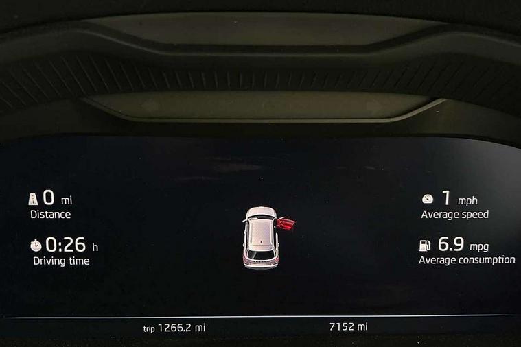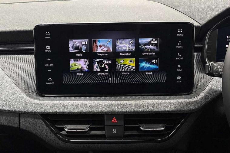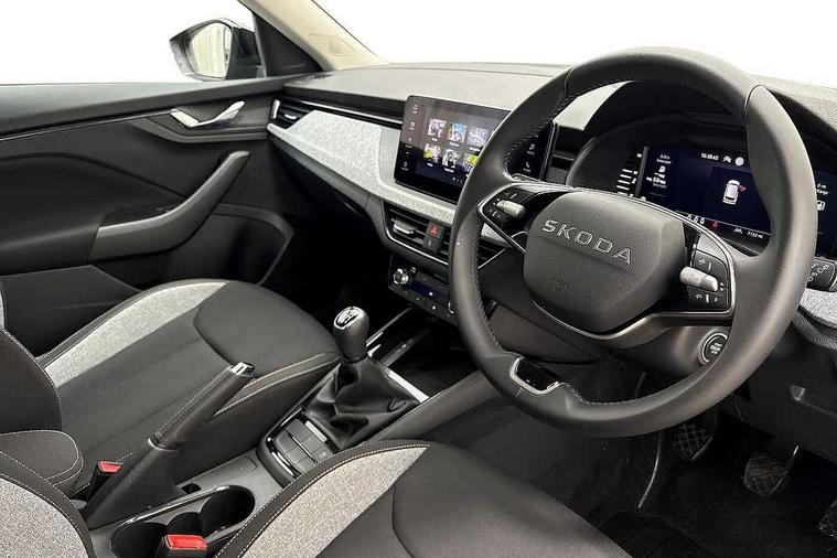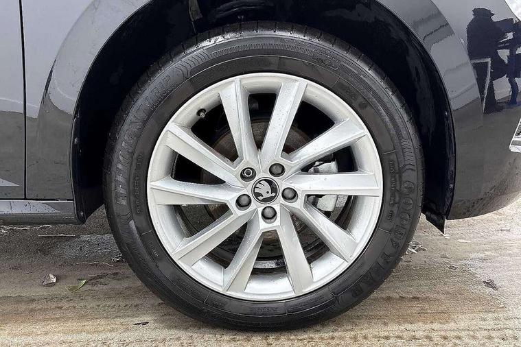 Advanced driver attention and drowsiness monitor, Bluetooth system, E-call, Front assist system, PAS, Rear parking sensors, Rear view camera, Service indicator, Speed limiter, Traffic sign recognition, Virtual cockpit with 10.25" display, Voice control system, Wireless smartlink, 4 USB C ports, 8 Speakers, 9.2" Skoda navigation display, DAB Digital radio, Auto dimming rear view mirror, Automatic headlight control with coming home and leaving home feature, Black roof rails, Body colour bumpers, Body colour door mirrors and handles, Chrome grille surround, Front and rear electric windows, Full LED headlights, Heated rear window, LED brake lights, LED daytime running lights, LED front turning lights, LED high beam, LED low beam, LED third brake light, Rear LED fog light, Rear side wing doors, Rear wiper, Ticket holder inside windscreen, 12V socket in luggage compartment, 3 seat bench in 2nd row, Black hotstamping, Cargo elements, Chrome inner door handles, Driver and passenger sun visors with vanity mirror, Dual zone climate control, Front and rear roof lights, Front centre armrest, Front head restraints, Glove compartment with illumination, Height adjustable driver seat, Height adjustable front passenger seat, Ice scraper, Inner circulation control with pollen filter, ISOFIX on front passenger seat, Isofix preparation for back seats, Krepp recycled decor inserts, Leather gearknob and handbrake lever, Loft cloth upholstery, Manual lumbar support for front seats, Net package and top tether hooks in boot space, Net under rear shelf, Overhead glasses storage compartment, Pocket on the back of both front seats include mobile phone pockets, Rake/reach adjustable steering wheel, Reading lights, Satin black door inserts, Single front passenger seat, Textile floor mats, Third rear headrest, Top tether for front passenger seat, Umbrella in driver's door, 3x3 point rear seatbelts, Airbags - driver and front passenger, Disc brakes, ESP, Extended and predictive pedestrian/cyclist protection, Front passenger airbag deactivation switch, Front side airbags with curtain airbags, Hill hold control, Manual leather parking brake, Manual rear child locks, One tone horn, Seatbelt reminder for driver an co-driver, Traction control, Tyre pressure monitor, Anti-theft alarm system with interior monitoring, backup horn, towing protection and remote central locking with SAFE system, Anti-theft wheel bolts, Electronic engine immobilizer,