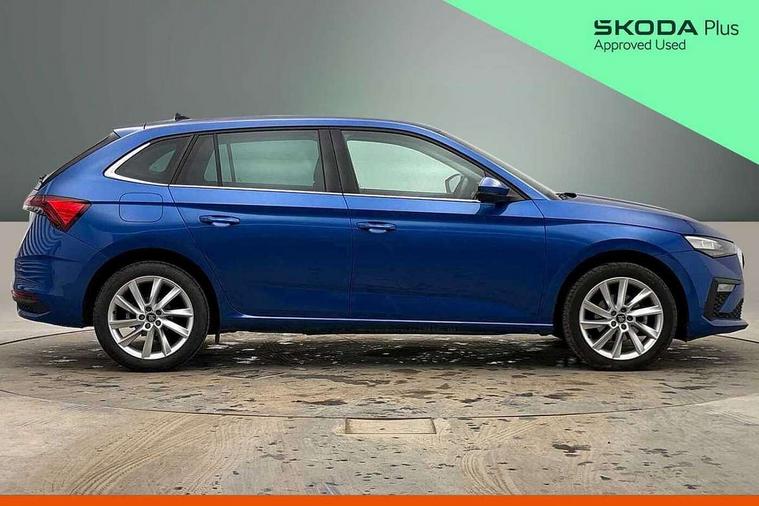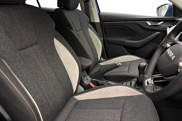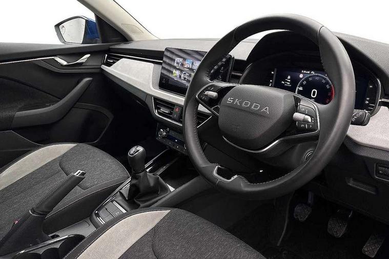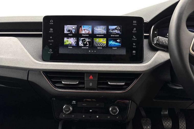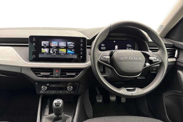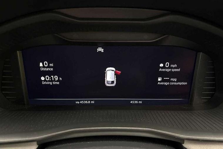Advanced driver attention and drowsiness monitor, Bluetooth, e-Call (emergency call), Front assist system, PAS, Rear parking sensors, Rear view camera, Speed limiter, Tailgate, Traffic sign recognition, Virtual Cockpit - 10.25" digital display, Voice control system, Wireless smartlink, 4 USB C ports, 8 Speakers, 9.2" Skoda navigation display, DAB radio, Auto dimming rear view mirror, Automatic headlamp activation with Coming home and Leaving home feature, Automatic high/low beam, Automatic intermittent wipers, Body colour bumpers, Body colour door mirrors and handles, Chrome moulding around grille, Chrome window frames, Front and rear electric windows, Heated rear window, LED 3rd brake light, LED brake lights, LED daytime running lights, LED front turning lights, LED high beam, LED low beam, Light sensors, Privacy glass, Rear LED fog light, Rear side wing doors, Rear wiper, Tinted windows, Unique dark chrome design logo on alloy wheels, 12V socket in luggage compartment, 3 seat bench in 2nd row, Ambient lighting in white/red, Black / Copper armrest stitching, Cargo elements, Chrome inner door handles, Copper hotstamping, Door inserts in accent black, Driver and passenger sun visors with vanity mirror, Dual zone climate control, Front and rear roof lights, Front centre armrest, Front head restraints, Glasses storage in roof liner, Height adjustable driver seat, Height adjustable passenger seat, Ice scraper, Illuminated glove compartment, Inner circulation control with pollen filter, ISOFIX for front passenger seat, Isofix preparation for back seats, Leather gearknob and handbrake lever, Lodge cloth upholstery, Luggage net under rear parcel shelf, Manual lumbar support for front seats, Net package and top tether hooks in boot space, Pearl grey ceiling, Pocket on the back of both front seats, incl. mobile phone pockets, Rear centre armrest, Single front passenger seat, Skoda lettering on steering wheel, Textile floor mats, Third rear headrest, Ticket holder, Top tether for front passenger seat, Umbrella in driver's door, Convenience pack without rear camera - Scala, 3x3 point rear seatbelts, ABS, Child locks, Curtain airbags and front side airbags, Disc brakes, Driver and front passenger airbags, ESP, Hill hold control, Manual leather parking brake, One tone horn, Passenger airbag switch off function, Seatbelt reminder for driver and front passenger, Tyre pressure monitoring system, Anti theft alarm system with interior monitoring, backup horn and towing protection, Anti-theft wheel bolts, Remote central locking with 2 remote folding keys, SAFE function for remote central locking, Decorative inserts,