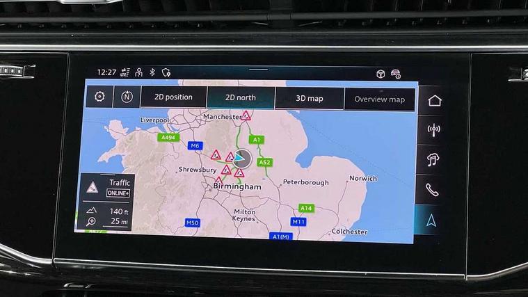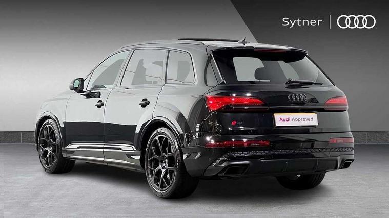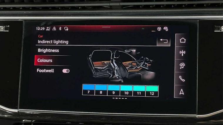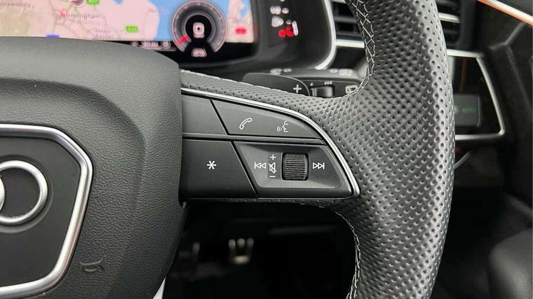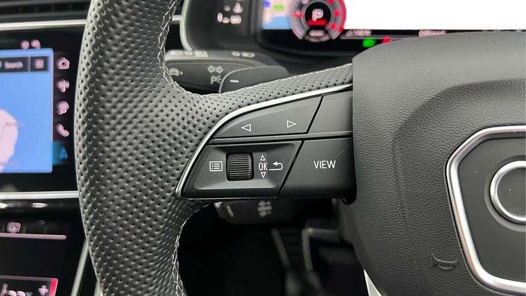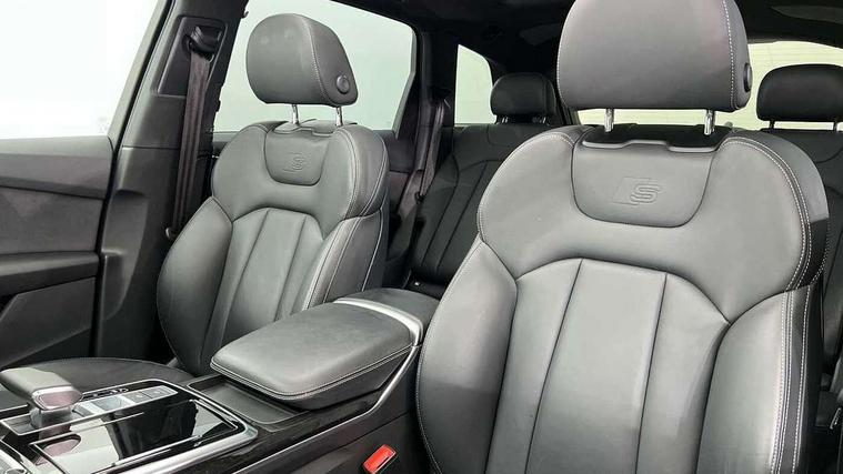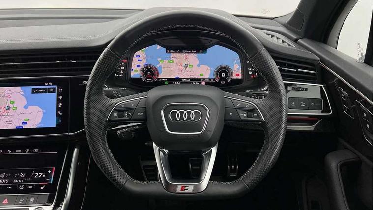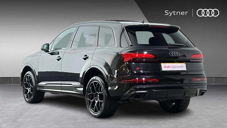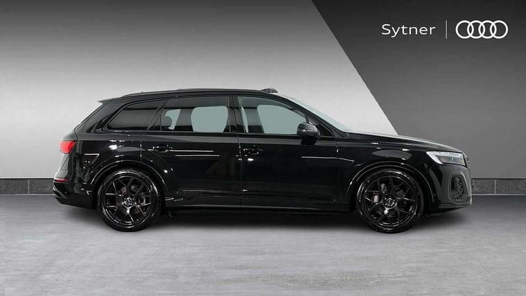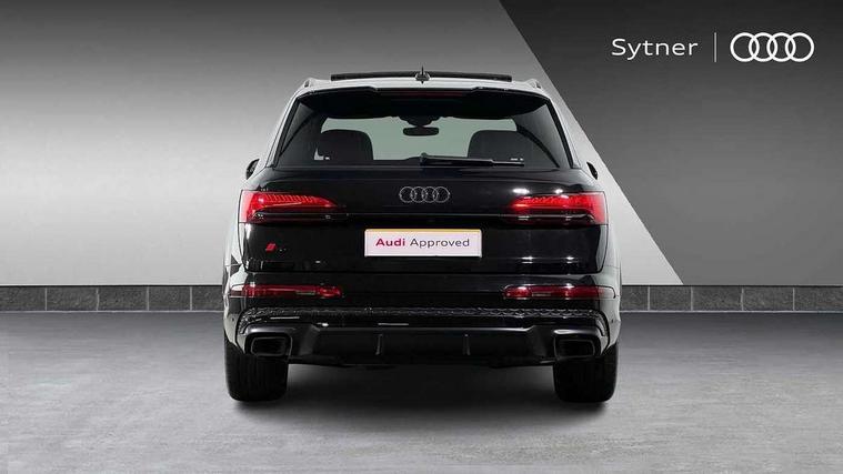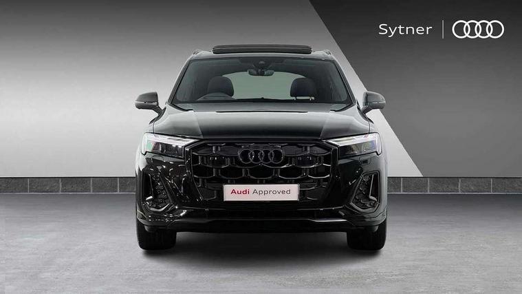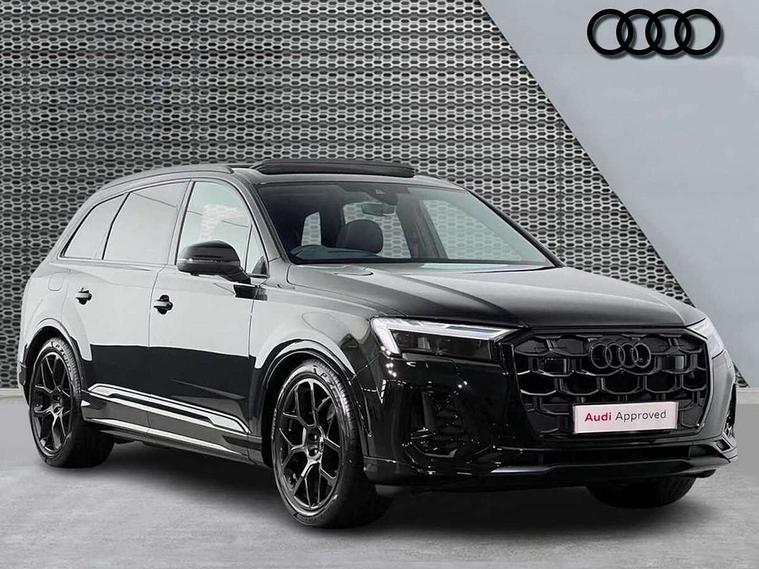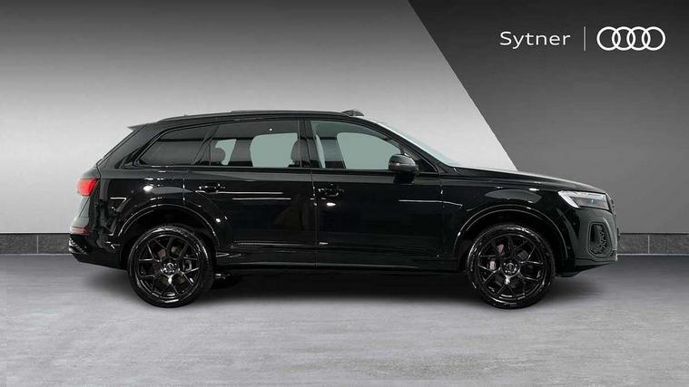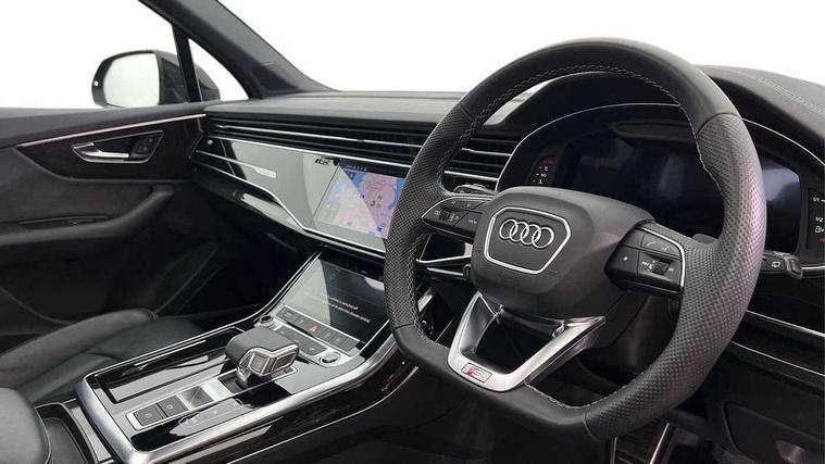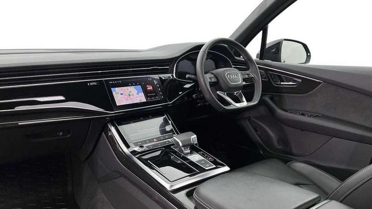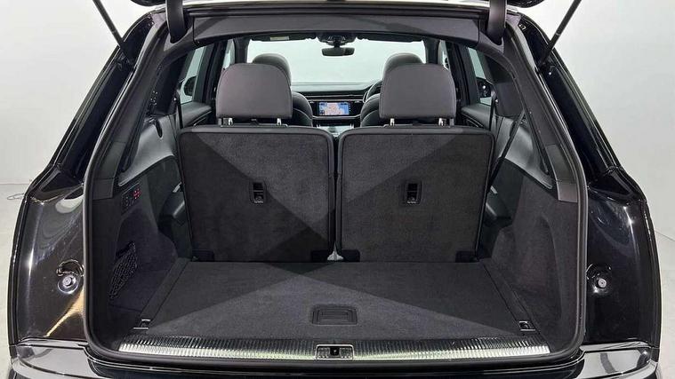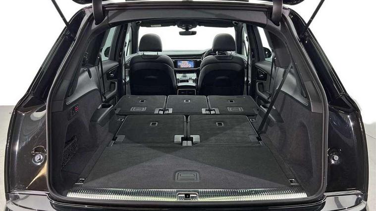 Audi connect safety and service (e-call), Audi connect with Amazon Alexa Integration, Audi drive select (Auto, Comfort, Dynamic, Efficiency, Individual, Off-road and All road), Audi phone box light with wireless charging, Audi virtual cockpit - 12.3" high-resolution LCD display with fully customisable instrument cluster, Bluetooth interface, Camera based traffic sign recognition, Electromechanical power steering, MMI navigation plus with MMI touch screens includes 10.1" and 8.6" screens with haptic feedback, Natural voice recognition, Operating buttons in Matte black, Parking system plus with 360 degree display (front, rear and side sensors) - acoustic and visual park assist system, Power operated tailgate, Rear view camera, Smartphone interface includes wireless Apple carplay/Android Auto, Start/stop system, 48V Mild hybrid technology, Adaptive air sports suspension, Quattro all wheel drive with self locking centre differential, Audi music interface - front 2 USB-C ports with charger and data functions, Audi sound system with 6 channel amplifier, 180 watt amplifying capacity and 10 loudspeakers including subwoofer, DAB digital radio module, Audi Beam uses LEDs to project S emblem with red rhombus onto the ground when opening the side doors (front/rear), Auto dimming frameless rear view mirror, Black exhausts, Black roof rails, Electrically adj heated/folding + automatically dimming exterior mirrors with memory + automatic kerb side function for passenger side exterior mirror, Heat insulating glass in windshield, Integrated LED indications in door mirrors, LED 3rd brake light, LED daytime running lights, LED rear tail lights, Loading edge protection in stainless steel, Matrix LED headlights with dynamic front and rear indicators, Privacy glass - dark tinted rear and rear side windows from B-pillar backwards, Rear side wing doors, Rear wiper, 2 seat bench in 3rd row, 2 zone automatic climate control, 3 seat bench in 2nd row, 7 seat layout with ISOFIX points for the front passenger seat and rear passenger seat, Black cloth headlining, Comfort front centre armrest, Electric adjustable front seat with 4 way lumbar support, driver memory functionality, Folding rear seats, Front head restraints, Front/rear floor mats, Heated front seats, Illuminated door sill trims with S logo, ISOFIX child seat mounting for front passenger seat and 2 outer rear seats with top tether child seat mounting for all 3 rear seats, LED interior ambient lighting, Luggage compartment cover, Luggage compartment sill protection in stainless steel, Rear head restraints, Single front passenger seat, Stainless steel pedals, Sunvisors with illuminated vanity mirrors, Black styling pack plus - Q7, 3 point seatbelts on all rear seats, Audi pre sense front, Child locks on rear doors, Convenience key with safelock and gesture tailgate, Driver and front passenger, front side and curtain airbags, Electromechanical parking brake, Electronic Stabilisation Control (ESC) including ABS, ASR and EDL, Extended pedestrian protection measures, Hill hold assist, Seatbelt reminder, Tyre pressure loss indicator, Warning triangle and first aid kit, Anti theft alarm with tow away protection, Anti-theft wheel bolts and wheel loosening detection, Keyless Go, Remote central locking, Polished oak trim with grey finish inlay, Tool kit, Tyre repair kit,